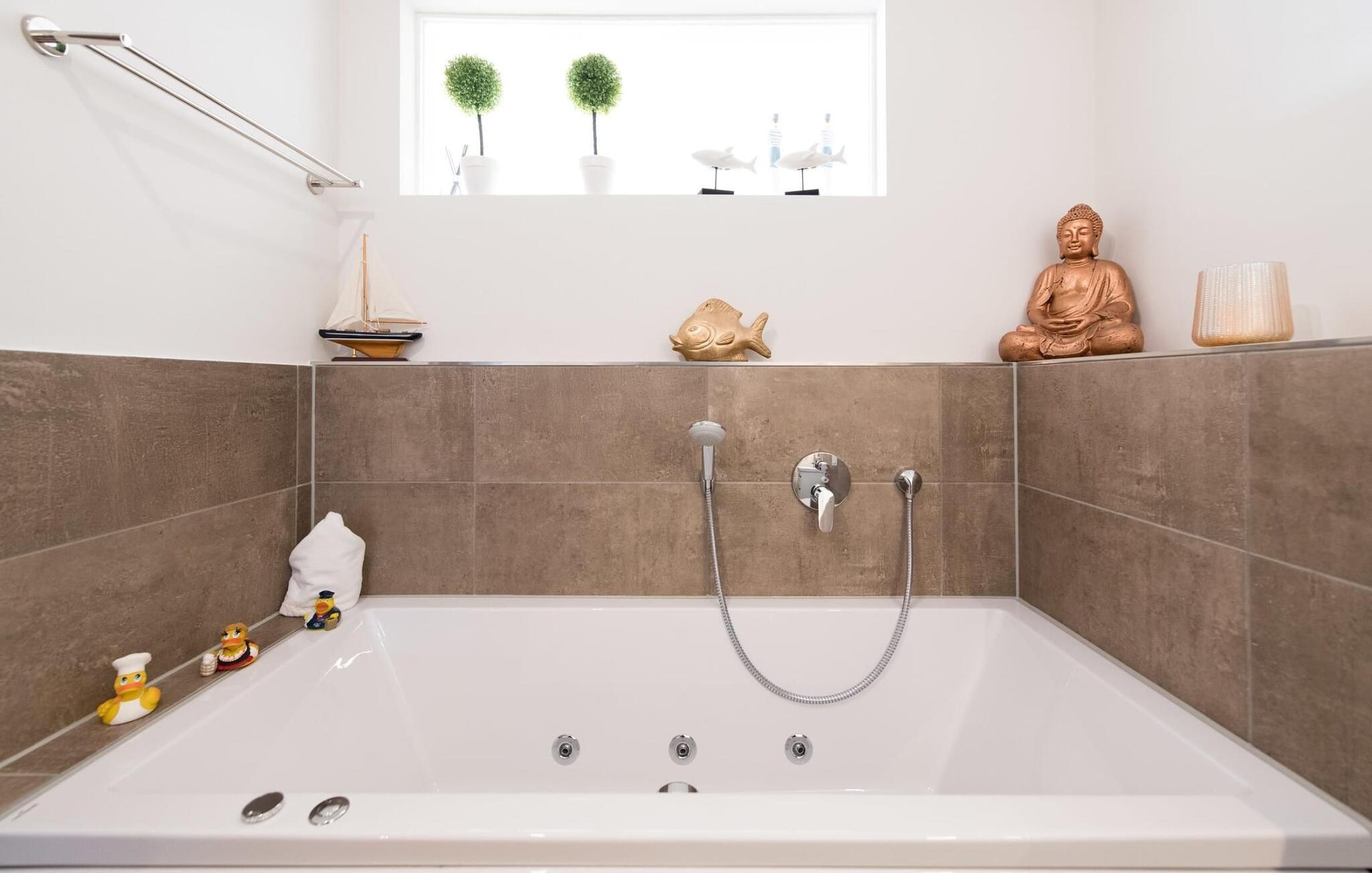 Für Entspannung sorgt das große Badezimmer mit privatem Wellness-Programm. Hier lässt es sich in der Sauna Infrarot Wärmekabine für zwei Personen mit Hifi-Sound-System und LED-Farblichttherapieoder in der Relax-Whirlwanne entspannen. Ebenerdig gestaltet sorgt eine Dusche für zusätzlichen Komfort.