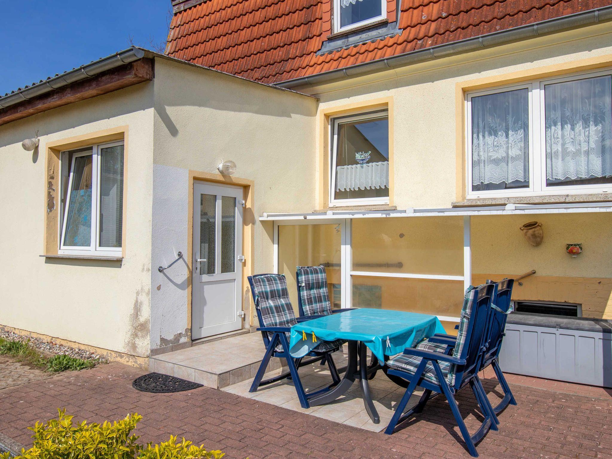 Zur Ferienwohnung gehört eine Terrasse mit Sitzgelegenheit.