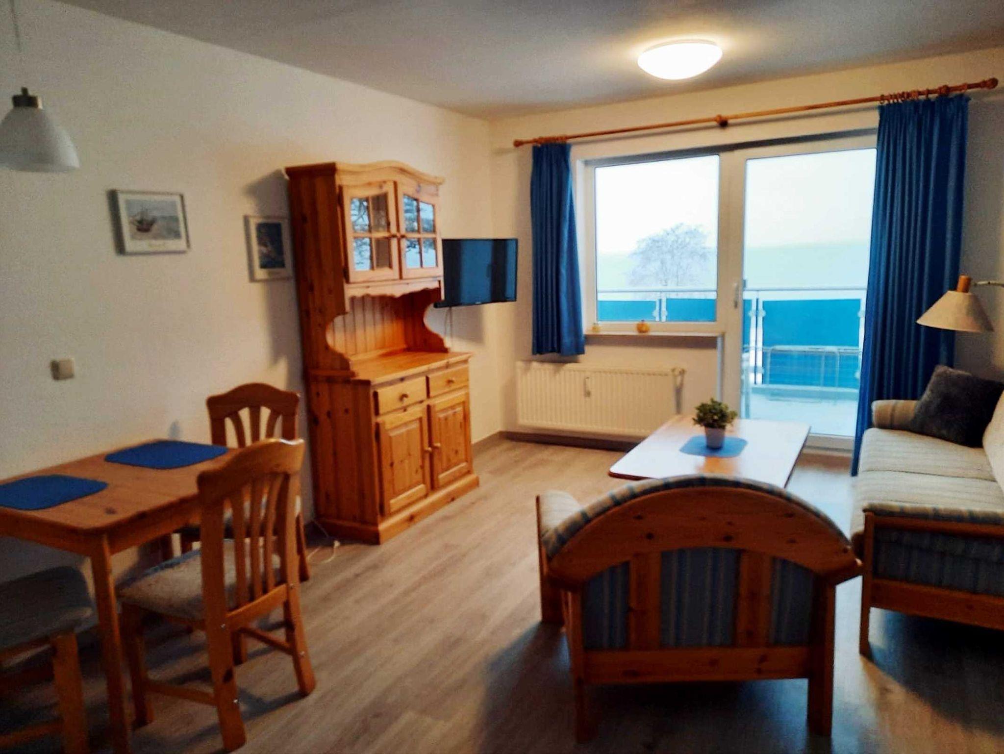 Die Ferienwohnung 10 befindet sich in der Ferienanlage Blaumuschel im 1. Obergeschoss und verfügt über direkten Meerblick. Sie ist geschmackvoll und modern eingerichtet und bietet außerdem einen Balkon.