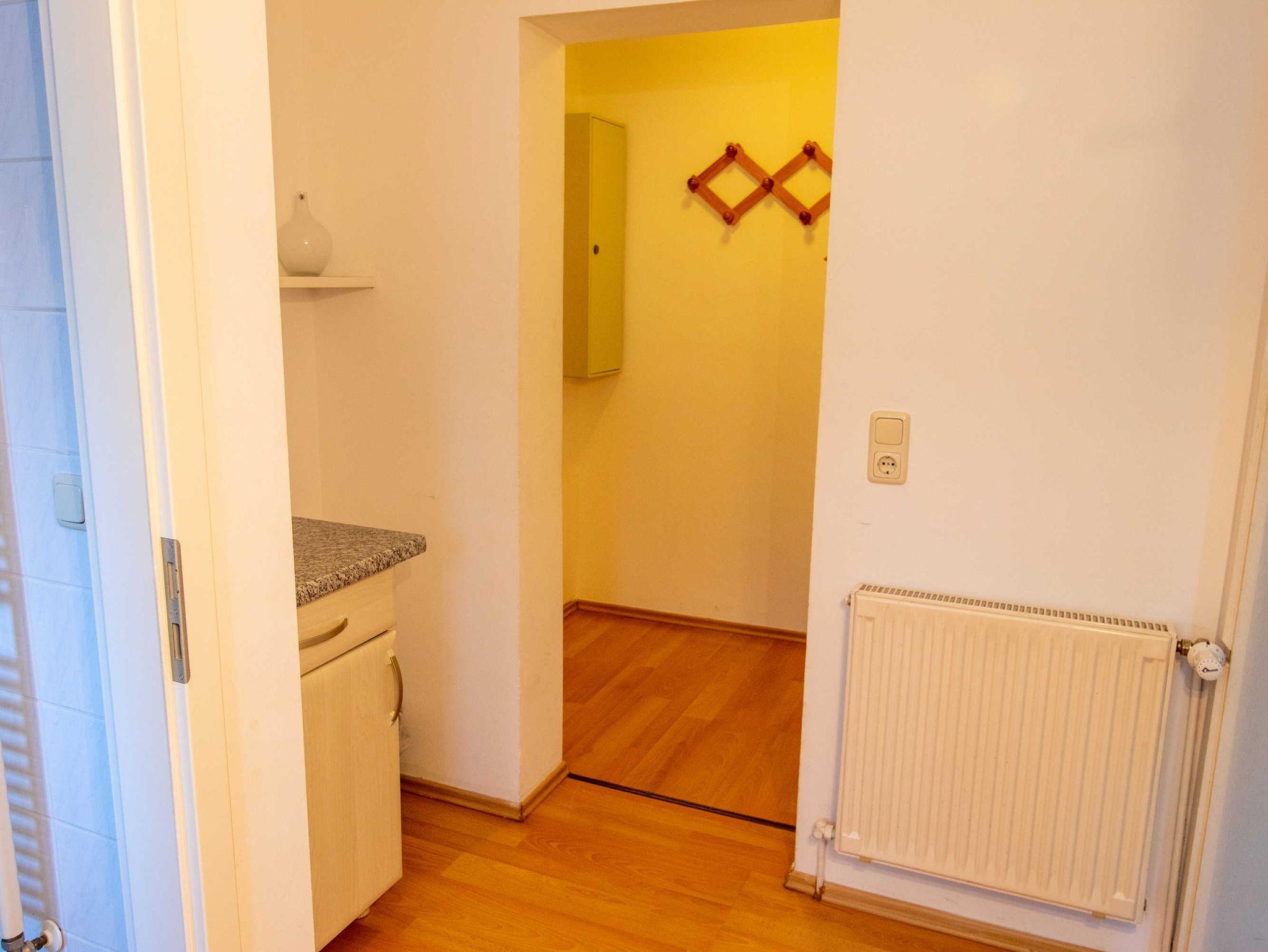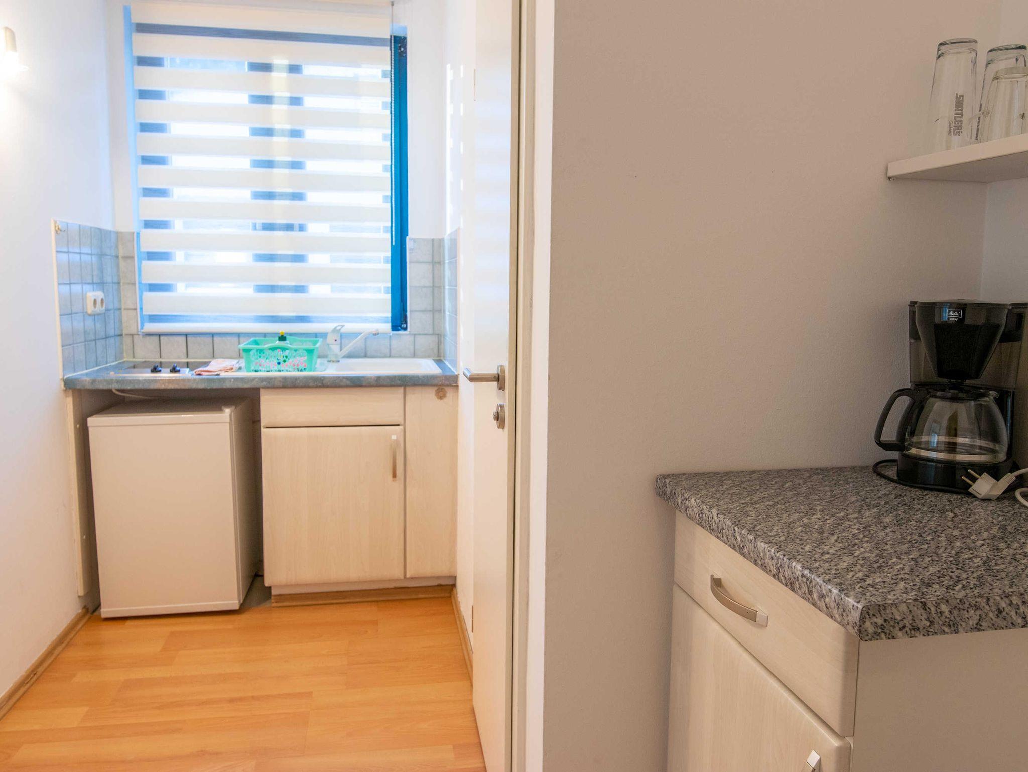 Das ca. 26 m² große Doppelzimmer mit Blick zum Wald befindet sich in einem Gästehaus mit 5 Wohneinheiten. Es verfügt über einen kombinierten Wohn- und Schlafraum mit Doppelbett, eine separate Pantryküche mit Kühlschrank sowie ein Bad mit Dusche und WC. Ebenso kann eine möblierte Gemeinschaftsterrasse genutzt werden. Das Zimmer eignet sich für bis zu 2 Personen. Zusätzlich kann ein Kinderbett für ein Kleinkind (bis 3 Jahre) aufgestellt werden. Kinderbett, Hochstuhl, Wäschepaket sowie ein Parkplatz sind inklusive.