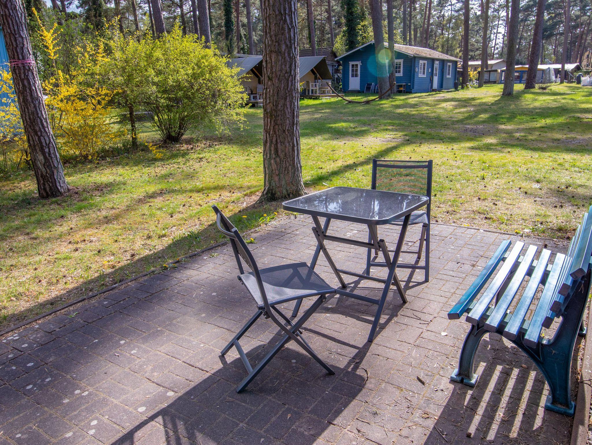 Das einzeln stehende Ferienhäuschen mit Terrasse und Blick zum Wald verfügt über ein Wohnzimmer mit Miniküche, ein separates Schlafzimmer, Flur und Bad.