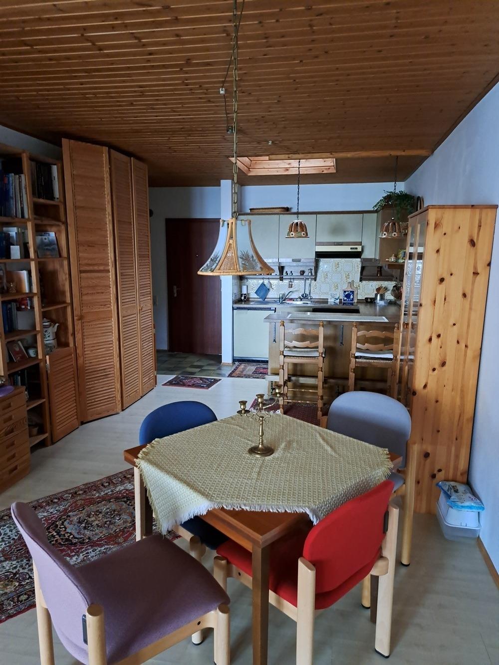 Neu renovierte und geschmackvoll zum Wohlfühlen eingerichtete Zwei-Zimmer-Ferienwohnung mit Küchenzeile, Essbereich Wohnzimmer, Schlafzimmer im Hochpaterre mit großer Terrasse , sehr ruhig gelegen im Orteilsteil Schöntal direkt am Wald und 150 Meter vom Badeweiher Schöntal entfernt. Schöntal hat keinen Durchgangsverkehr, generell nur 30 kmStd. Erlaubt.