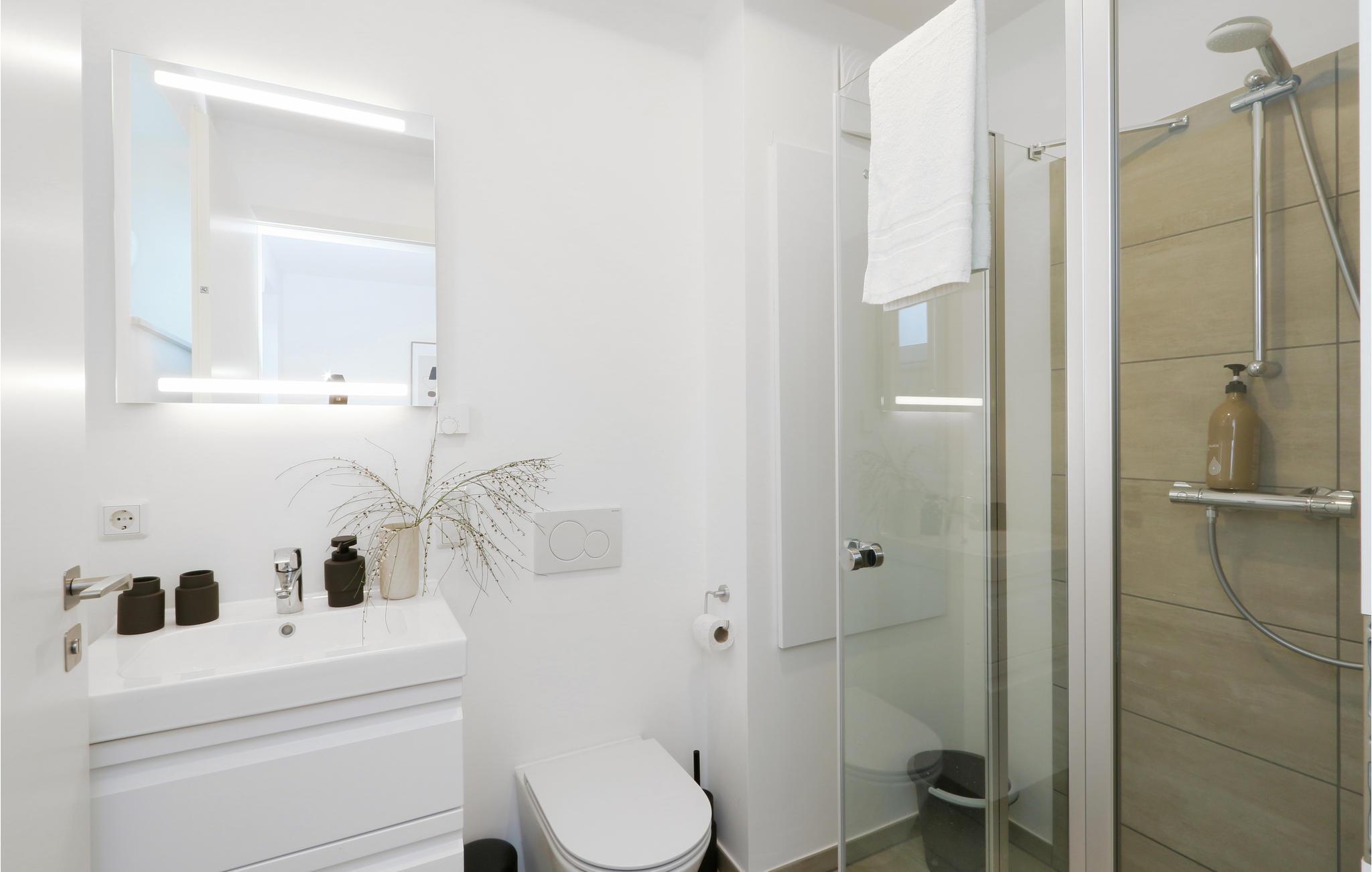 Badezimmer (nr. 1) - WC. Warmes und kaltes Wasser. Dusche