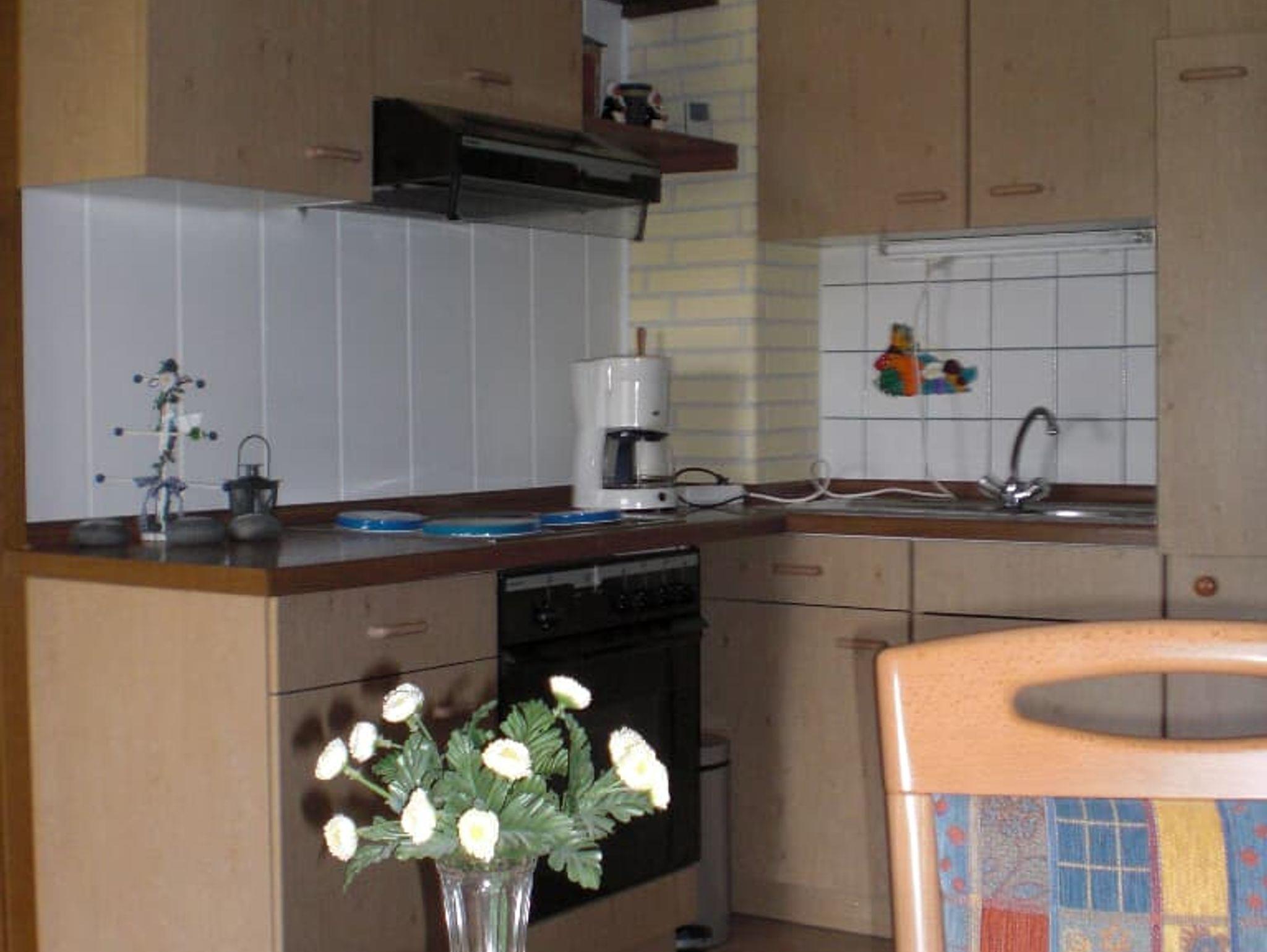 Die Ferienwohnung Gänseblümchen ist sehr gut ausgestattet mit allem nötigen Geschirr, Kaffeemaschine, Toaster, Eierkocher, Brotschneidemaschine, Quirl, Wasserkocher.