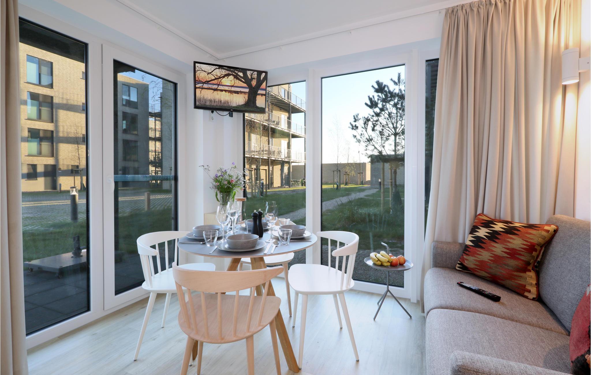 Willkommen in Ihrem Erdgeschoss-Apartment, das Ihnen für bis zu 2 Erwachsenen und 2 Kindern ein gemütliches, wohnliches Ambiente mit Einrichtung im skandinavischen Design bietet. Sie finden eine bestens ausgestattete Küchenzeile und ein Badezimmer vor, die keine Wünsche offenlassen. Ein kleines Kinderschlafzimmer mit Stockbett ermöglicht den Besuch als kleine Familie. Ob im Wohnzimmer oder auf der Terrasse, hier können Sie in aller Ruhe beisammensitzen, Spieleabende starten oder Ihre Abendessen genießen.