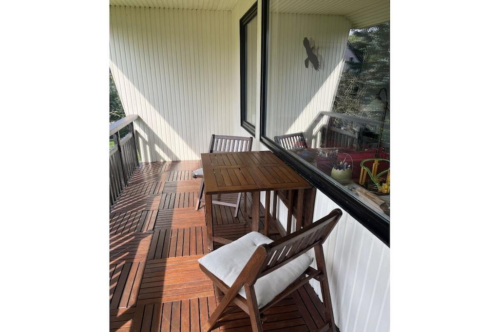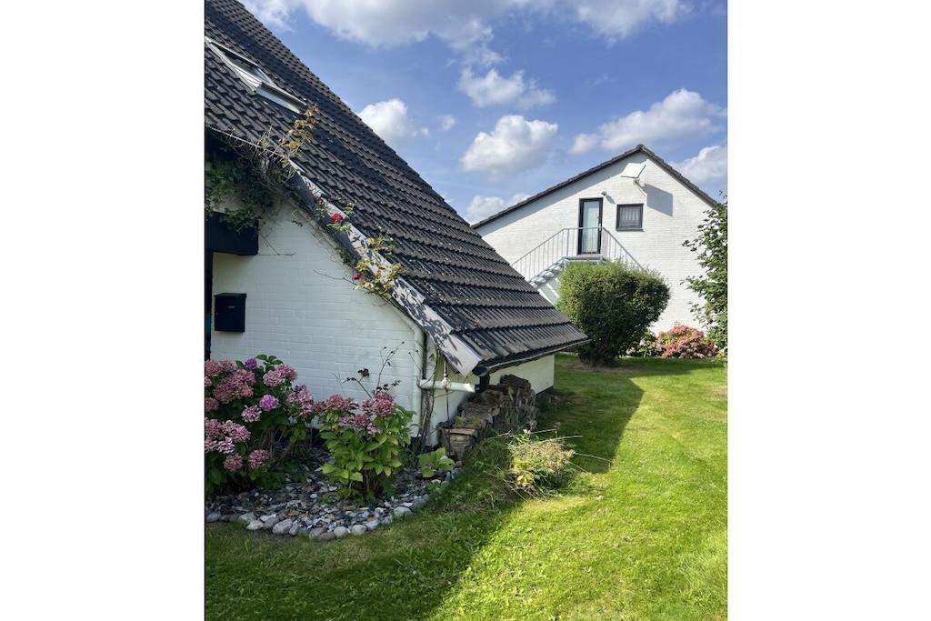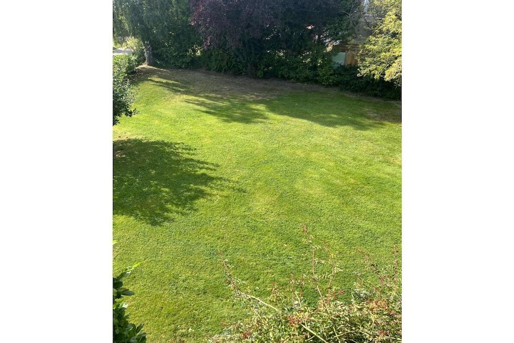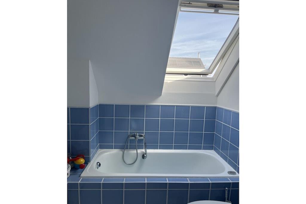 The light-filled living area boasts a large window front that not only lets in plenty of natural light but also offers a wonderful view of the expansive garden. The garden is ideal for relaxing hours outdoors – whether sunbathing, playing, or enjoying a barbecue with friends. Here you have ample space to enjoy nature and leave the everyday world behind. The fully equipped, inviting kitchen offers everything you need for cooking together in the evenings or a leisurely breakfast in the morning. Right next door, the spacious living area with its large window front invites you to cozy evenings. The bathroom features a bathtub that provides soothing relaxation after a long day. Enjoy a relaxing bath or start your day refreshed.