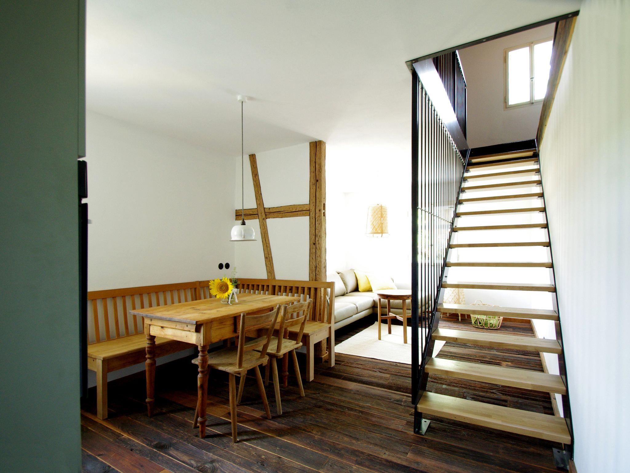 Der Ochsenhof in Wüstenbuchau im Herzen Oberfrankens wurde von uns mit viel Liebe und Idealismus in den vergangenen Jahren komplett denkmalgerecht saniert. Verwendet wurden hauptsächlich traditionelle Baustoffe wie Holz, Sandstein, Backstein, Lehm oder Hanf. Die lehmverputzten Wände mit integrierter Heizung und der Altholzdielenboden sorgen für ein außergewöhnliches Wohlfühlklima.