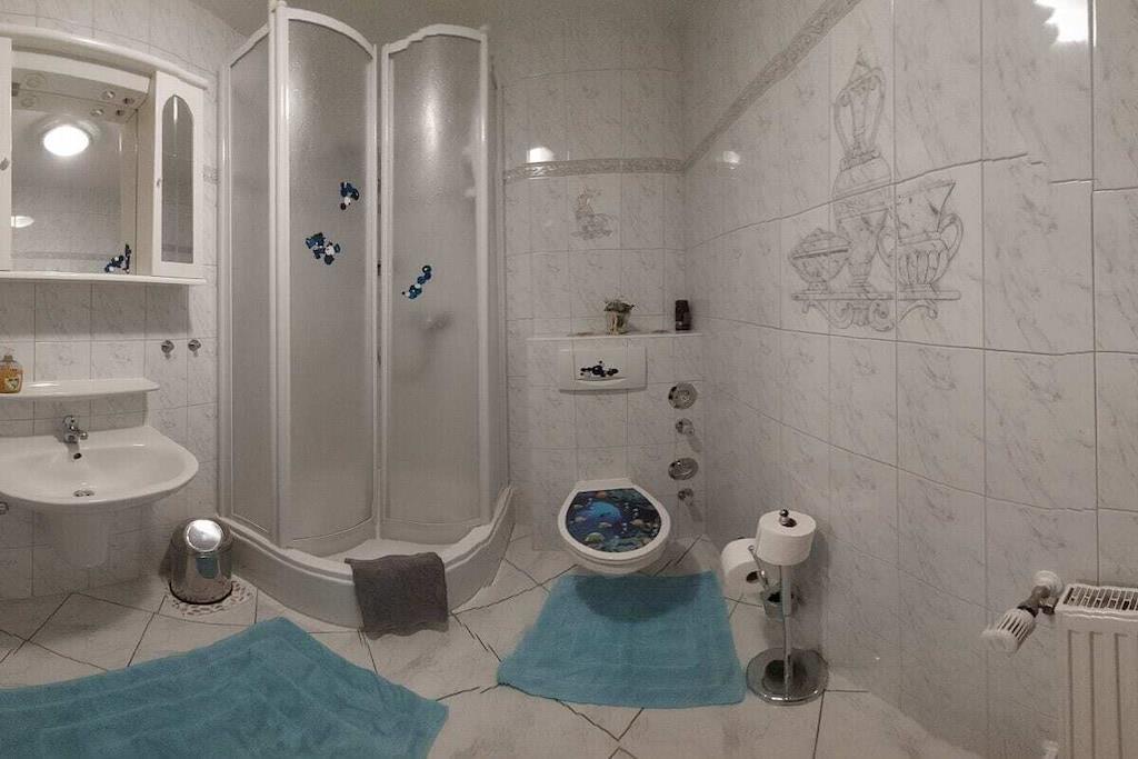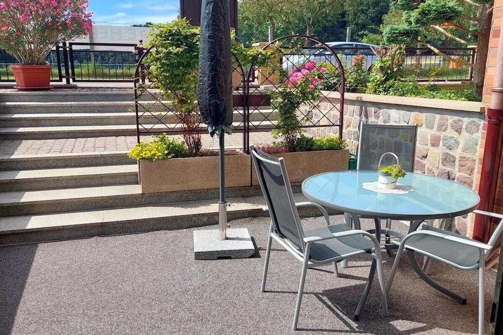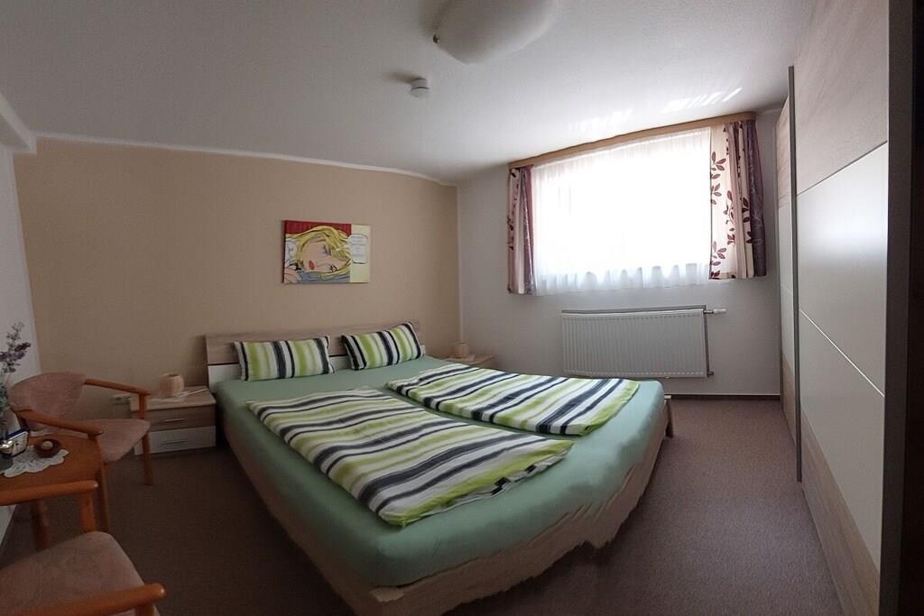 The comfortable and high-quality furnished holiday apartment is very spacious and, with its 75 square meters, offers the best holiday pleasure for both larger families and 2 couples. The sleeping area consists of a large 3-bed room and a 2-bed room and offers upscale furnishings with generous storage space and sleeping comfort. The beds are already made upon arrival. The spacious living and kitchen area has a separate dining area. The kitchen equipment leaves nothing to be desired (electric stove with oven and extractor hood, fridge and freezer, dishwasher, coffee machine, water and egg cooker, dishwashing and cleaning products, tea towels and much more). The bathroom is high-quality, tiled floor to ceiling and has a shower, toilet, washbasin, electric towel dryer and much more. The last renovation took place in 2022. We look forward to your visit to Malchow!