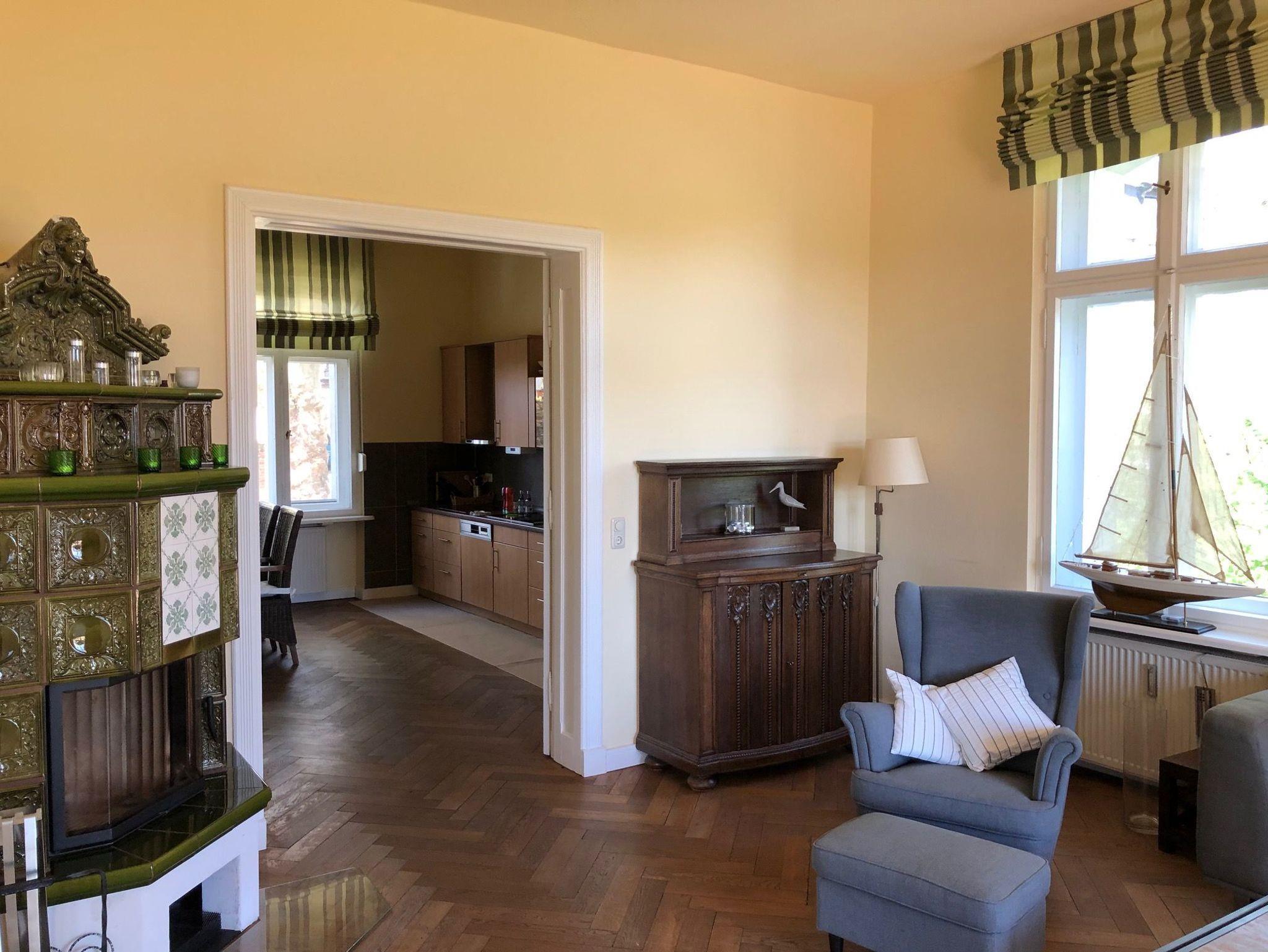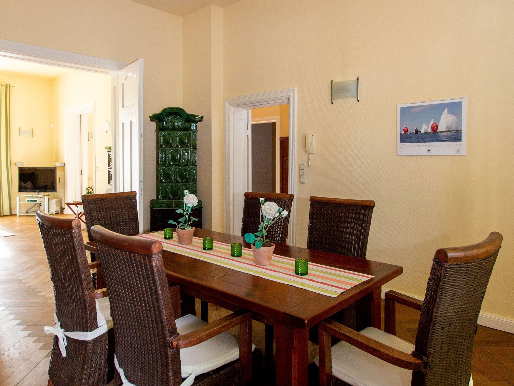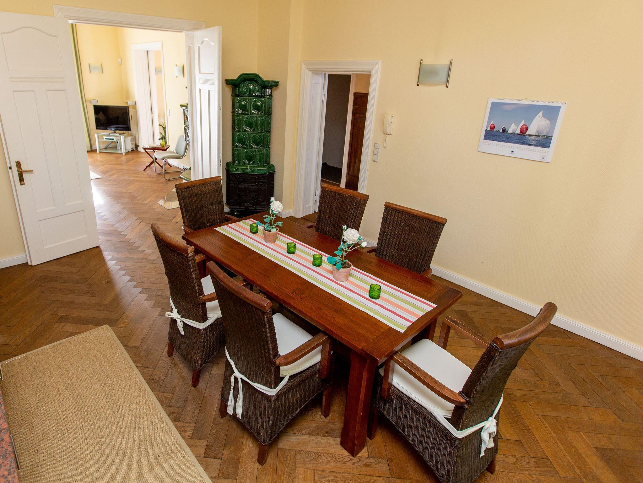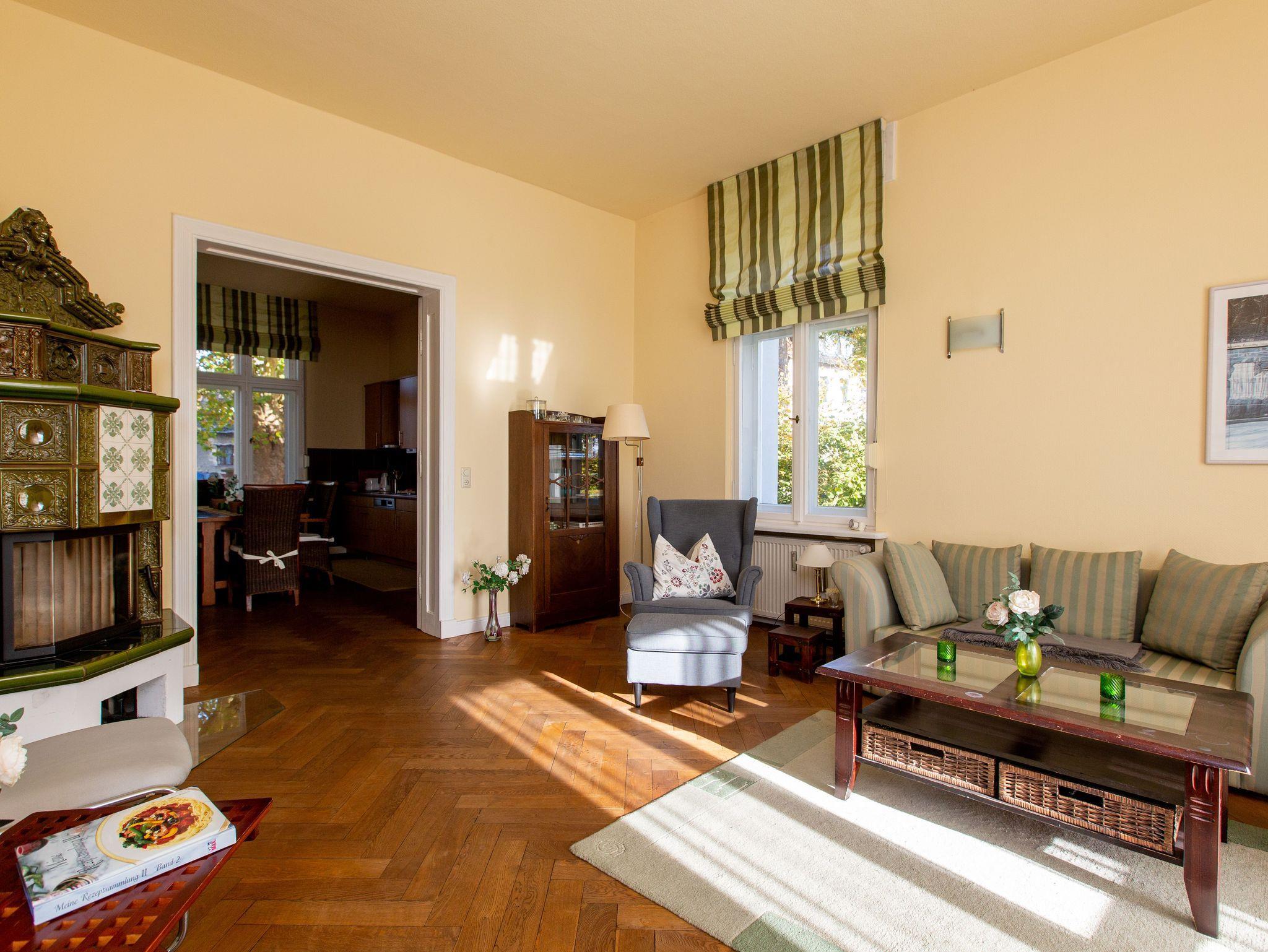 In der eleganten Wohnung mit 128 m² können sie Urlaub mit bis zu 4 Personen auf höchstem Niveau genießen. Eichen-Parkett, Wandvertäfelungen, Deckenstuck und Türen sind im Originalzustand von 1928 aufwändig aufgearbeitet.