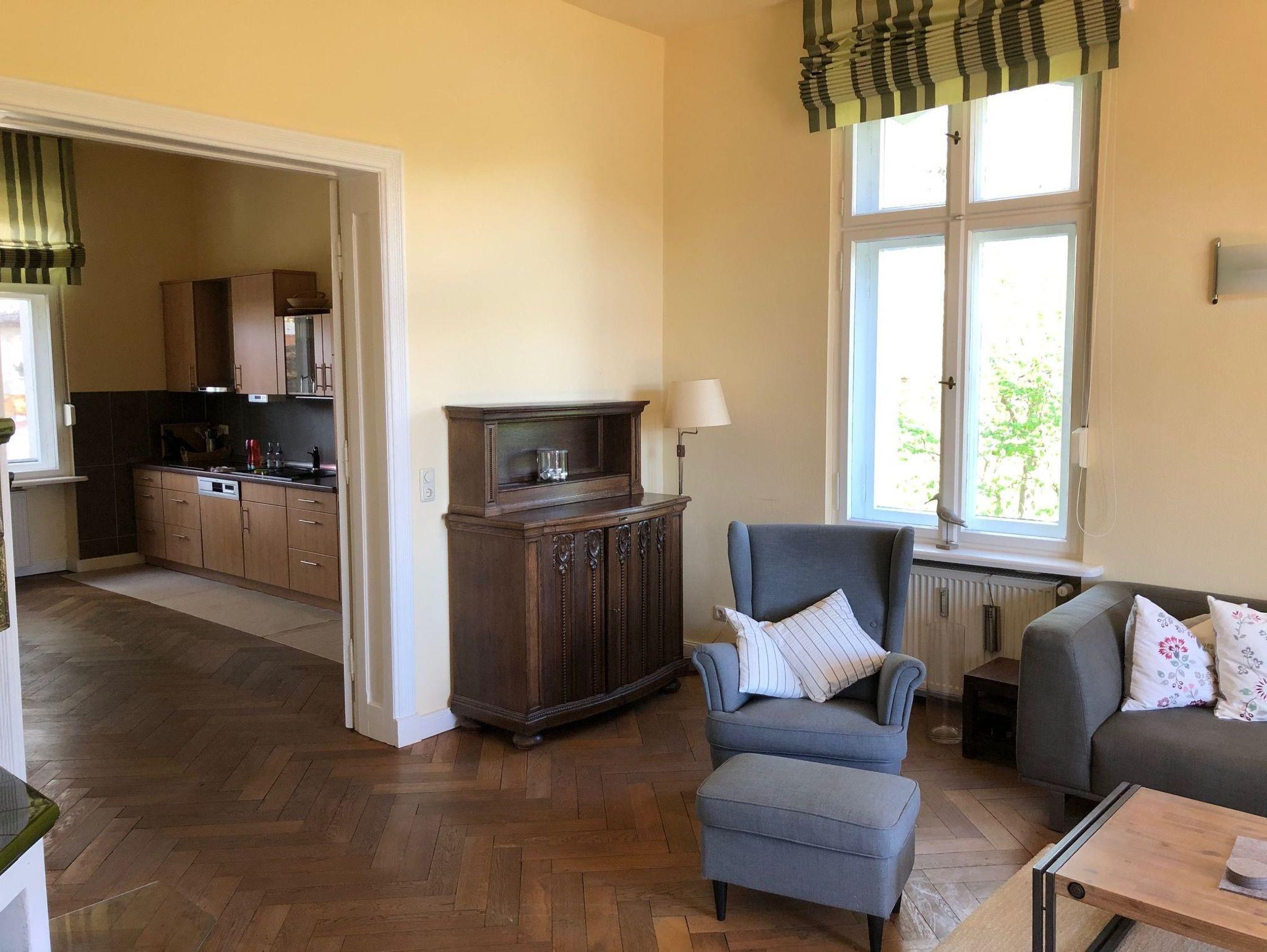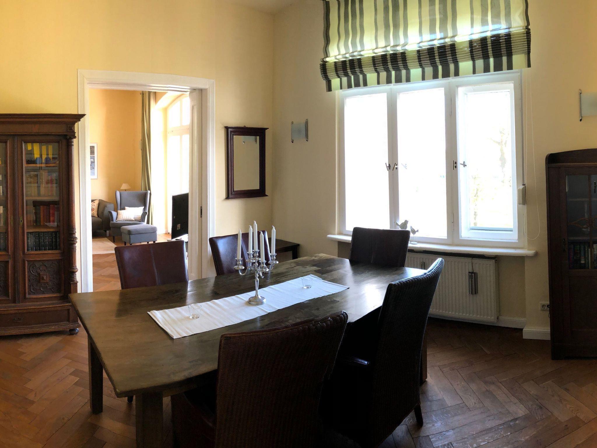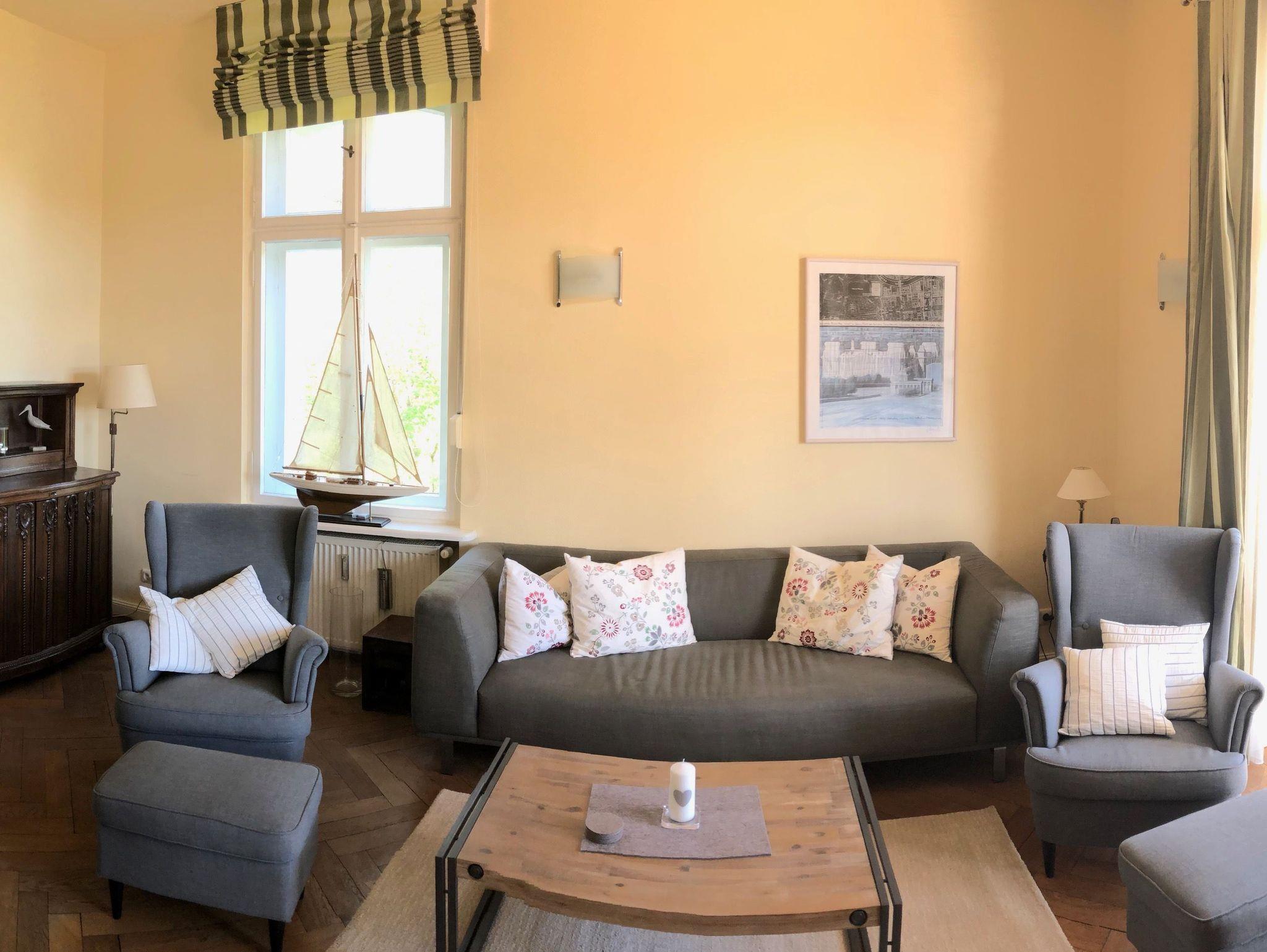 In der eleganten Wohnung mit 128 m² können sie Urlaub mit bis zu 4 Personen auf höchstem Niveau genießen. Eichen-Parkett, Wandvertäfelungen, Deckenstuck und Türen sind im Originalzustand von 1928 aufwändig aufgearbeitet.