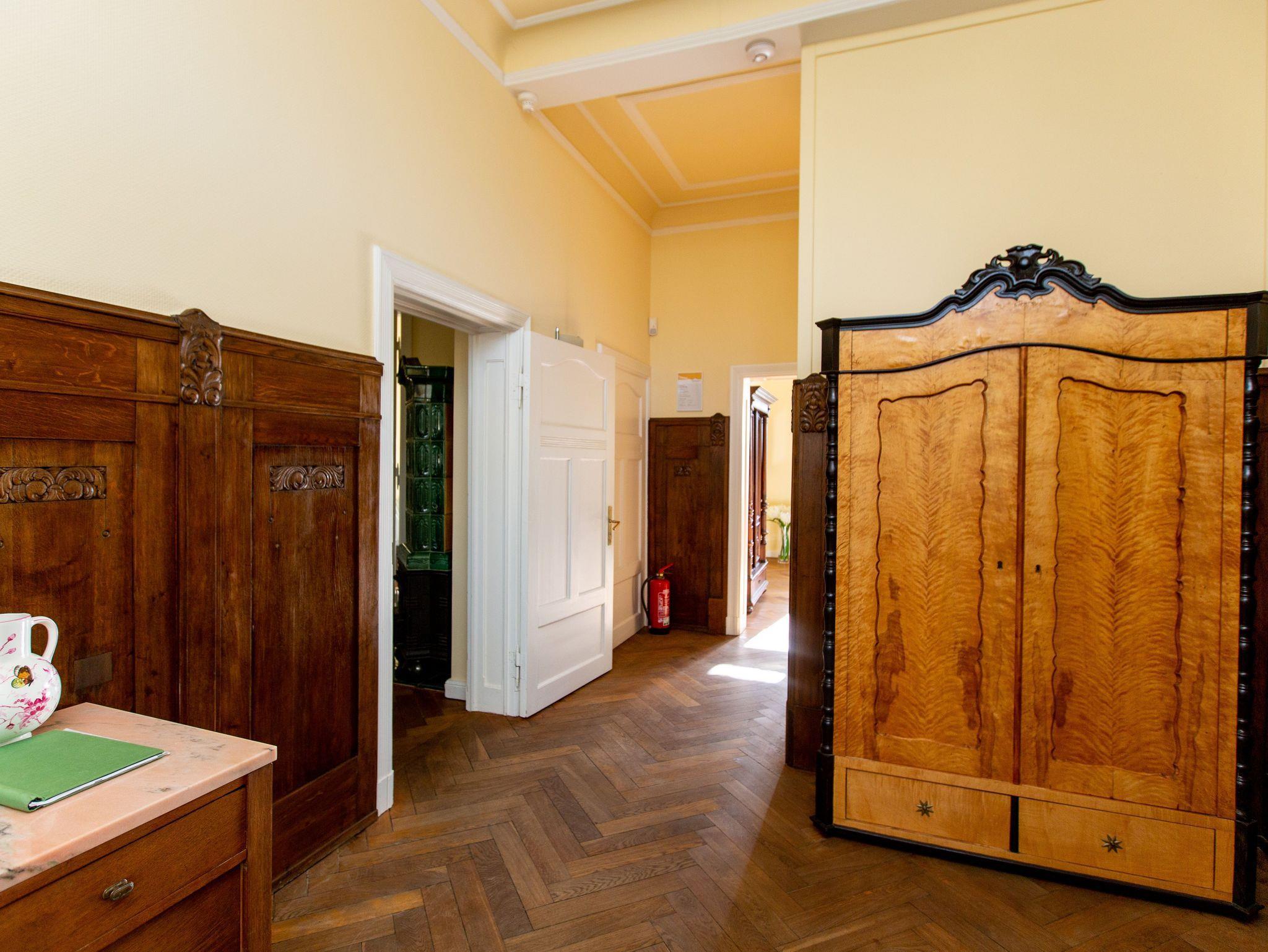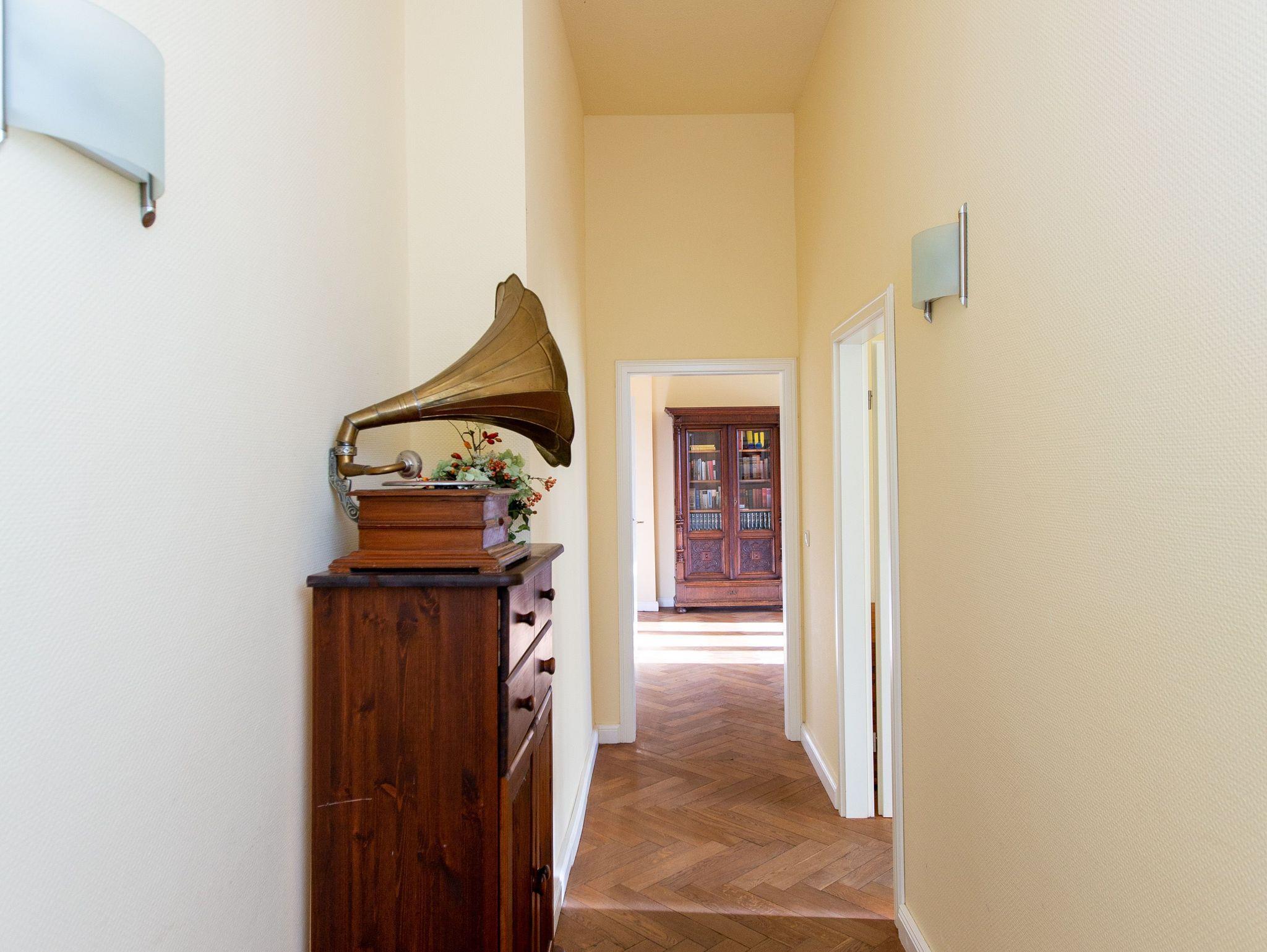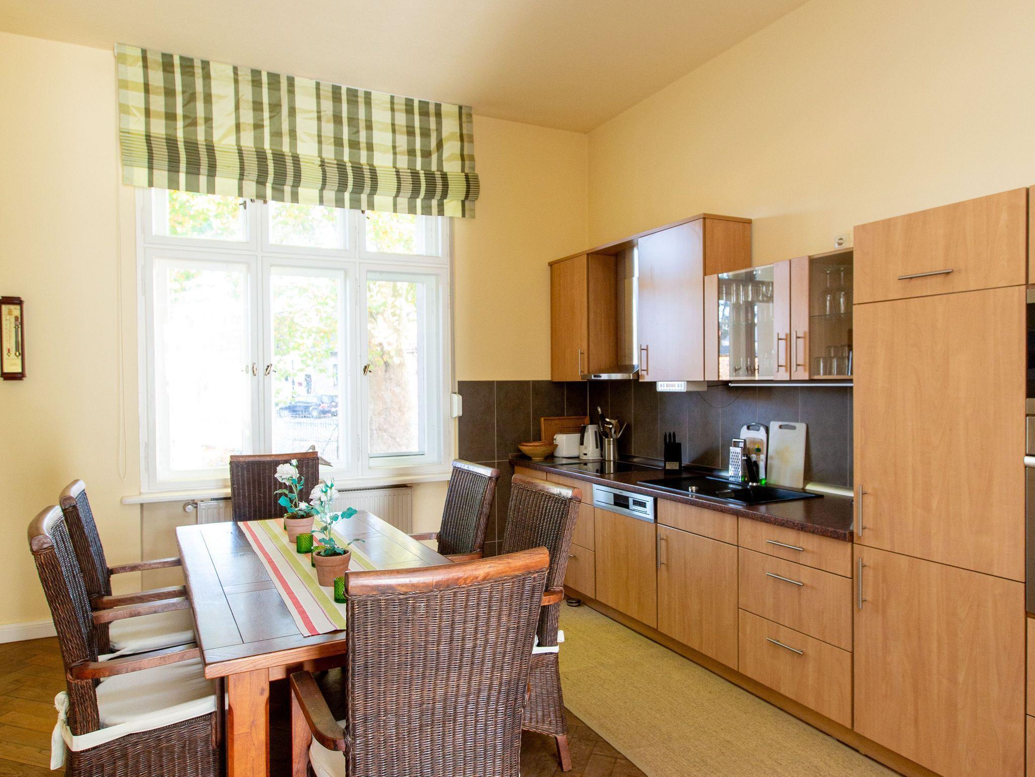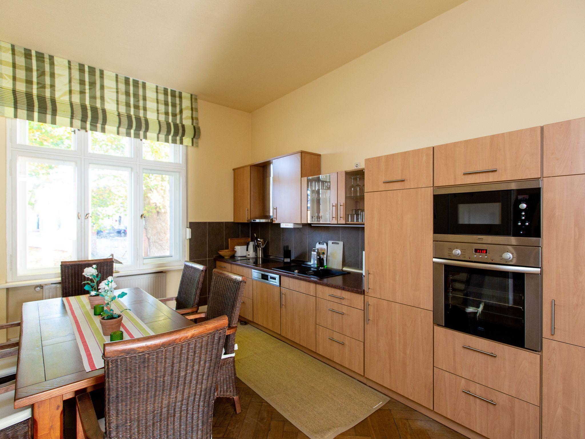 In der eleganten Wohnung mit 128 m² können sie Urlaub mit bis zu 4 Personen auf höchstem Niveau genießen. Eichen-Parkett, Wandvertäfelungen, Deckenstuck und Türen sind im Originalzustand von 1928 aufwändig aufgearbeitet.