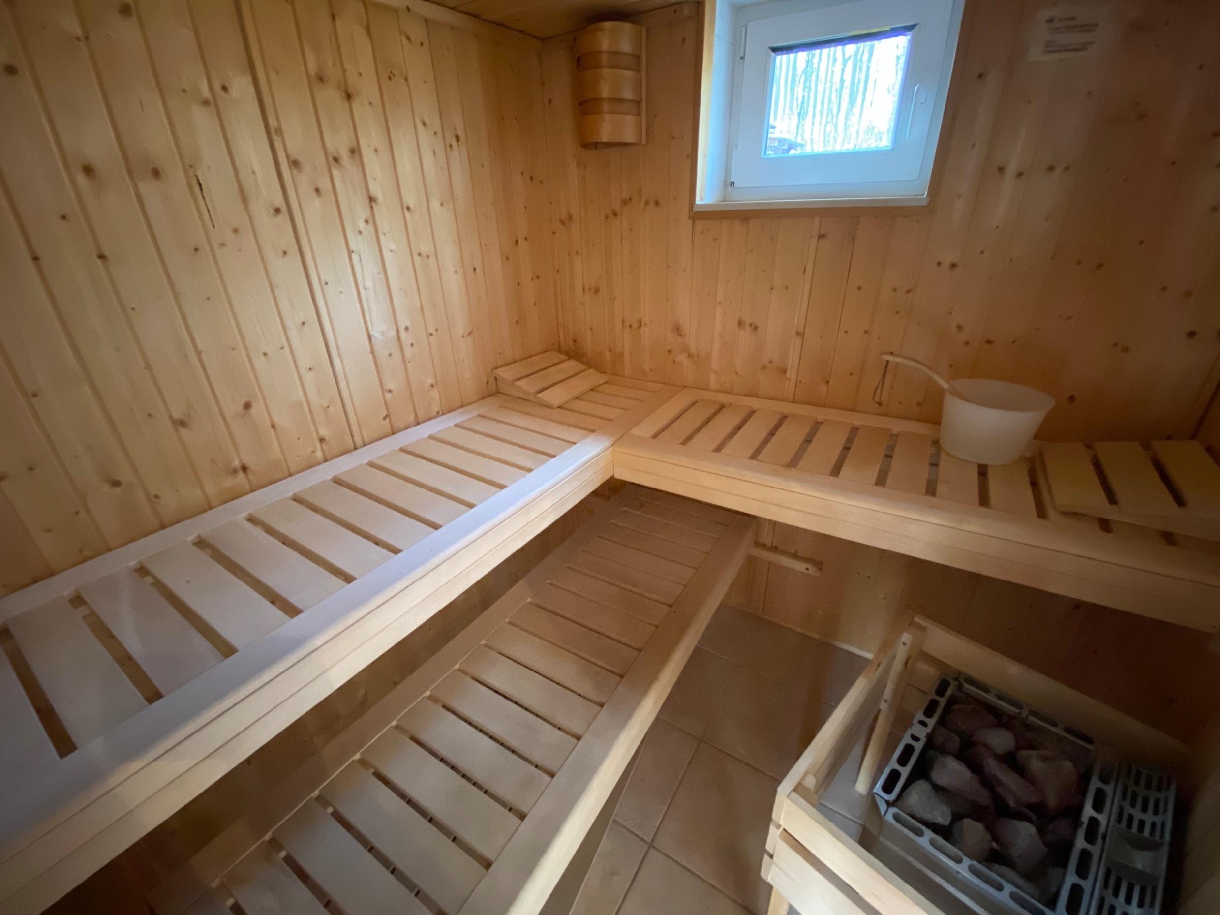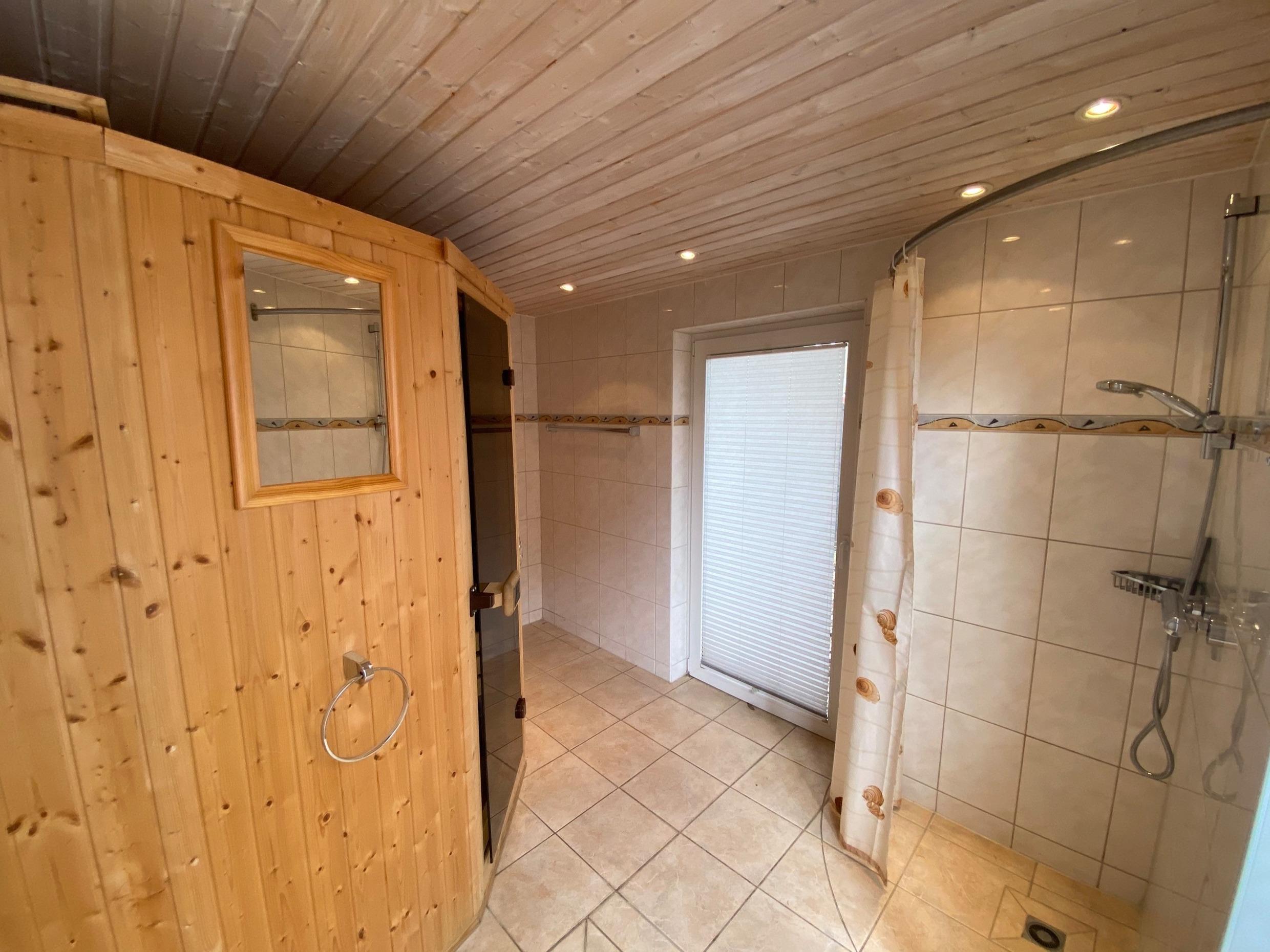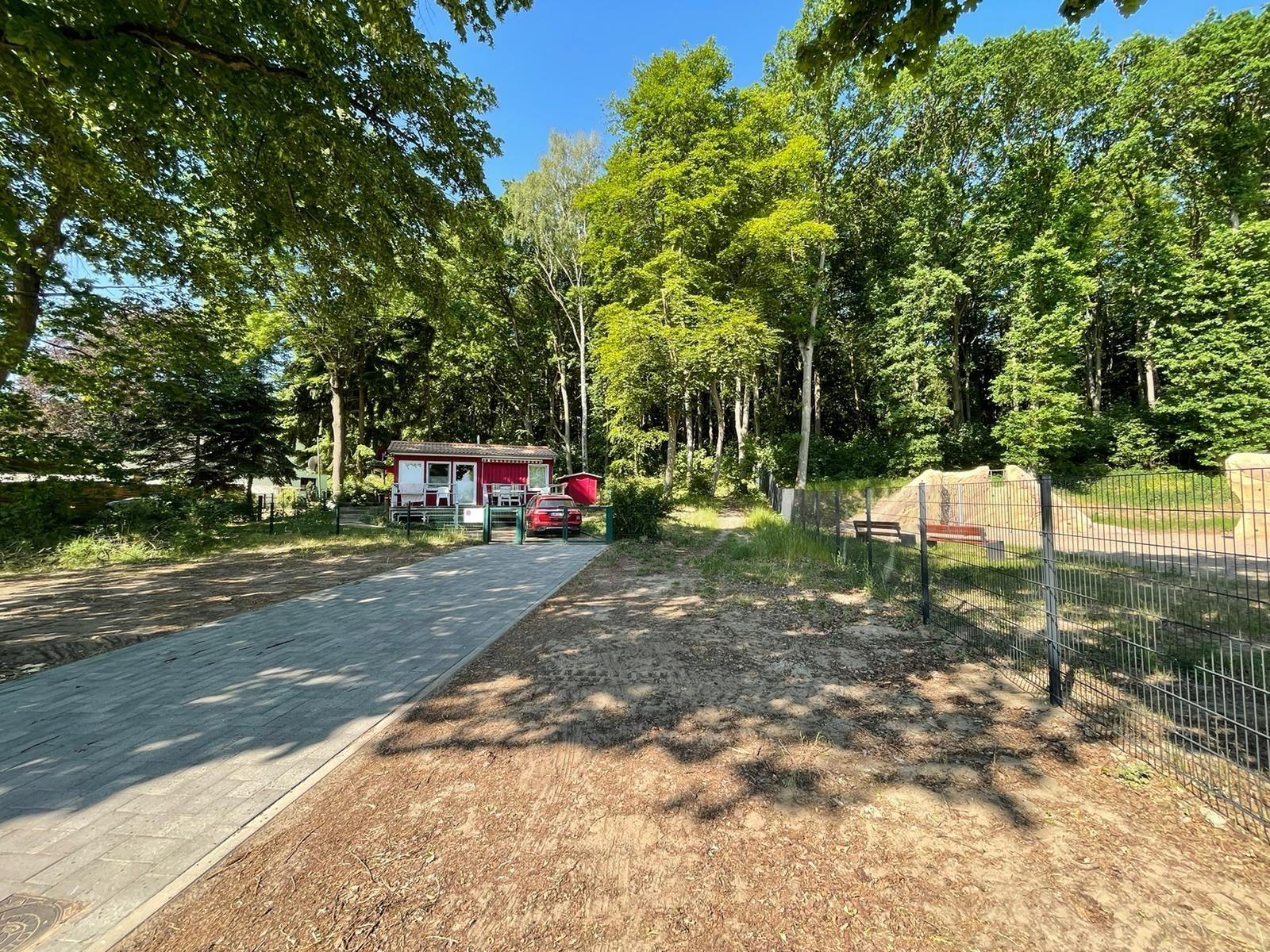 Auf dem eingezäunten Grundstück befindet sich eine Sauna mit Dusche, ein abschließbarer Schuppen und ein PKW-Stellplatz.