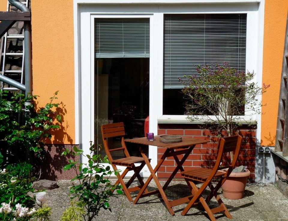 Vom Wohnzimmer aus gelangen Sie auf die kleine Terrasse mit Gartenmöbeln und Grill. Es gibt noch eine große Terrasse mit großem Esstisch und Feuerstelle.