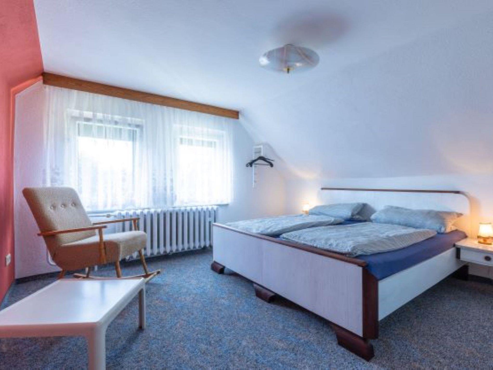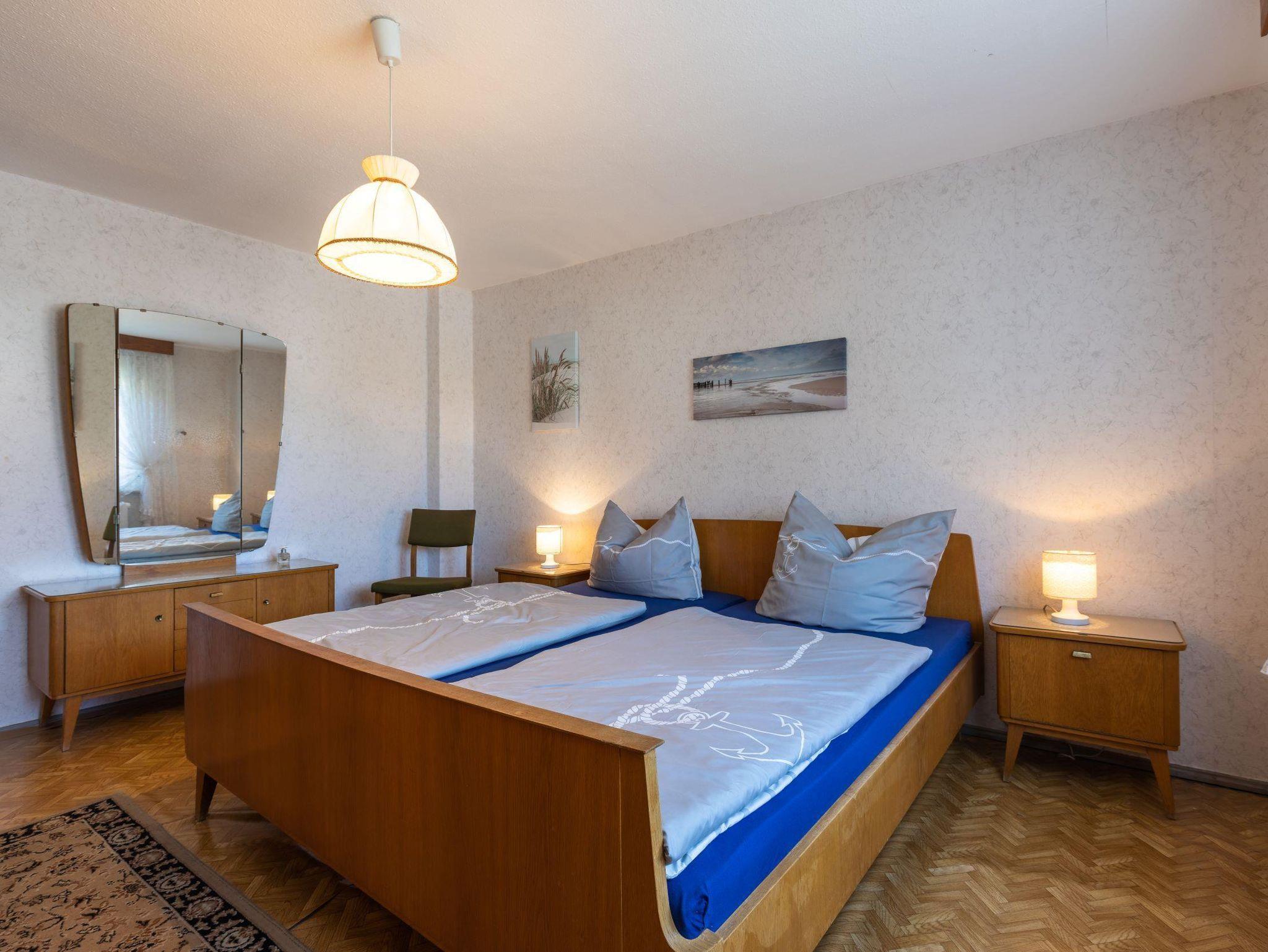Für weitere 4 Personen befinden sich in der 1. Etage 2 Schlafzimmer (2 x 2 Doppelbetten) sowie ein Sanitärbereich mit Dusche/WC.