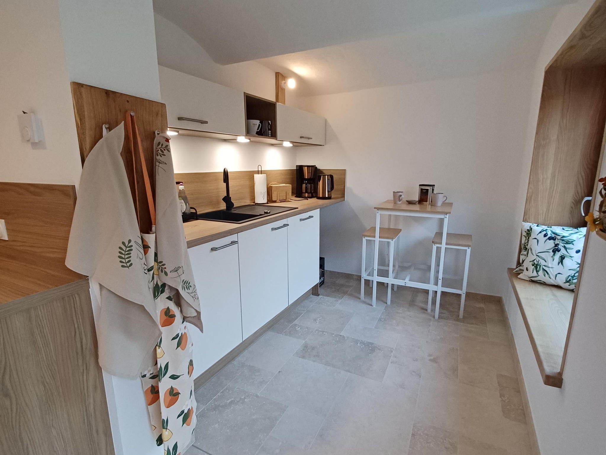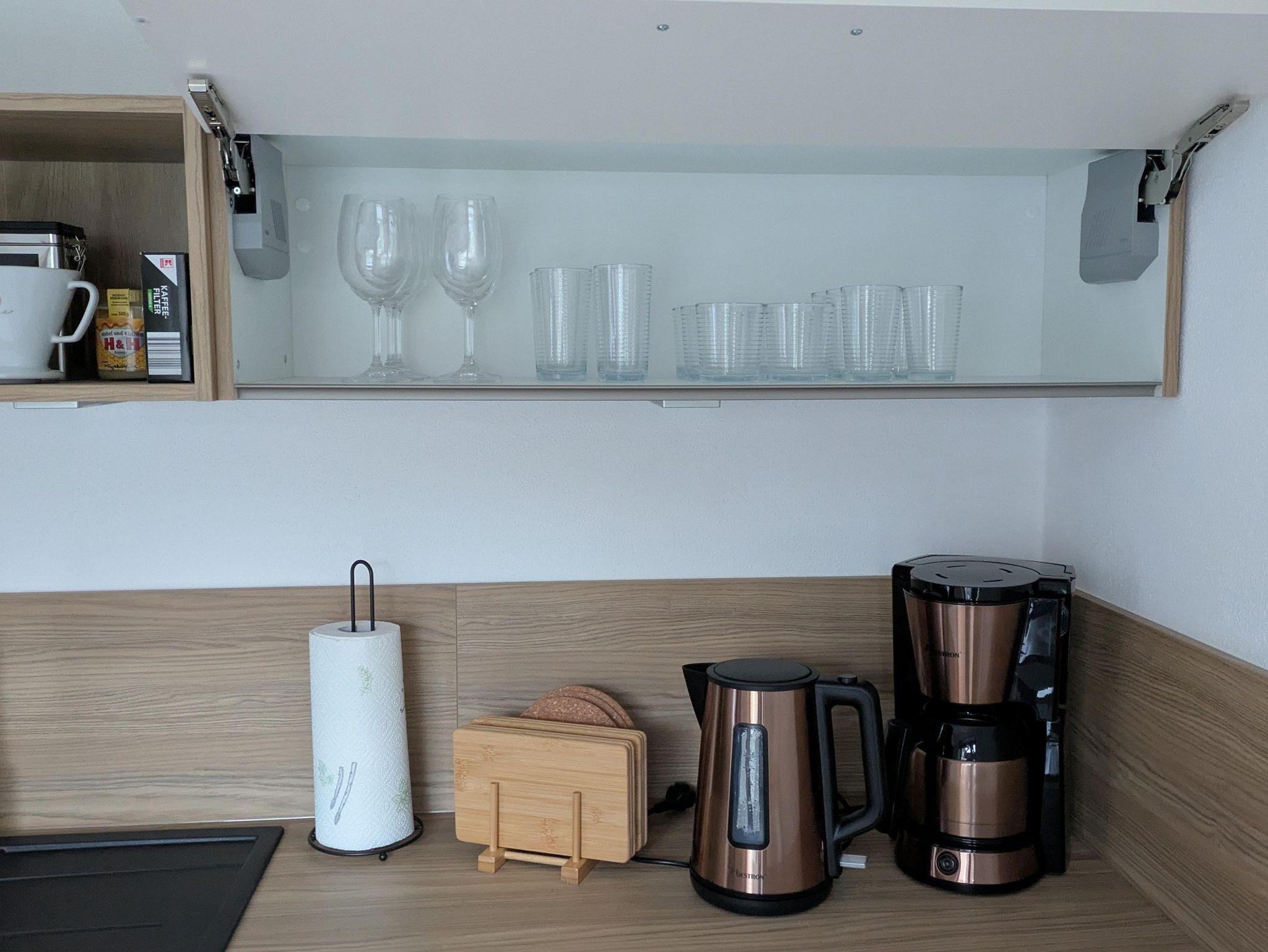 Im gemütlichen Wohnzimmer können Sie entspannen und den Tag in angenehmer Atmosphäre ausklingen lassen. Die voll ausgestattete Küche lässt keine Wünsche offen: Neben einem Geschirrspüler, Kühlschrank mit Gefrierfach, Herd und Backofen stehen Ihnen auch Wasserkocher, Toaster und eine Filterkaffeemaschine zur Verfügung.