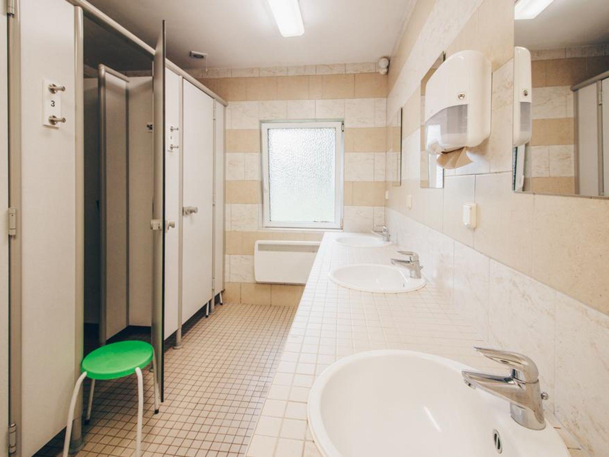 Der Bungalow ist mit einem Bad mit WC ausgestattet. Eine Dusche verfügt der Bungalow nicht. Daher wird dieser preisgünstiger angeboten. Zum Duschen können die Gemeinschaftsanlagen des Campingplatzes genutzt werden.