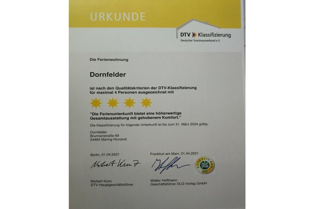 Schöne Ferien und gute Erholung zwischen Wiesen, Bäumen und Wein, in schönen Ferienwohnungen mit allem Komfort. Die ruhige Lage am Ende der Straße ohne Durchgangsverkehr garantiert Ihnen erholsamen Schlaf. Die exklusive Bauweise unseres Hauses lässt in allen Räumen die Sonne scheinen. Allergiker gerechte Wohnräume, komplett ausgestattete Blockküche, großzügiges Esszimmer, bequeme Couchgarnitur, Balkon oder Terrasse lassen den Urlaub bereits beim betreten der Wohnung beginnen. Genießen Sie bereits beim Frühstück auf der Terrasse die ersten Sonnenstrahlen, beobachten Sie Ihre Kinder wenn diese das letzte Brötchen an die Rehe am angrenzenden Damwildgehege verfüttern. Ihre Kinder erreichen Spielplatz, Spielwiese und Wildgehege direkt vom Ferienhaus. Unser Service für Sie:: Am Morgen bringen wir Ihnen frische Brötchen an die Wohnungstür. Weine, Sekt, Traubensaft, Liköre, Weintraubengelee, Balsamessig, Honig , alles halten wir im benachbarten, familieneigenen Weingut für Sie bereit.