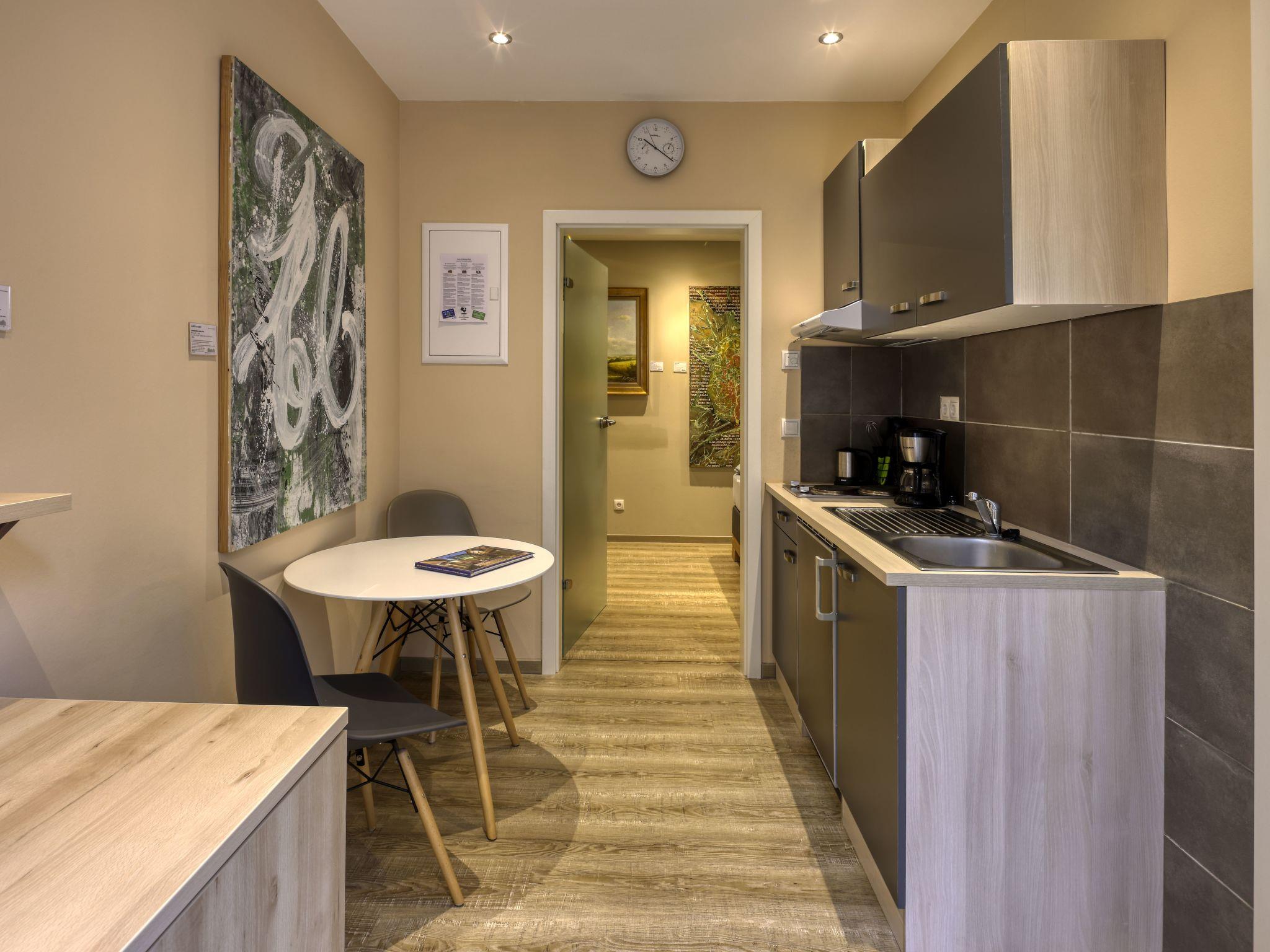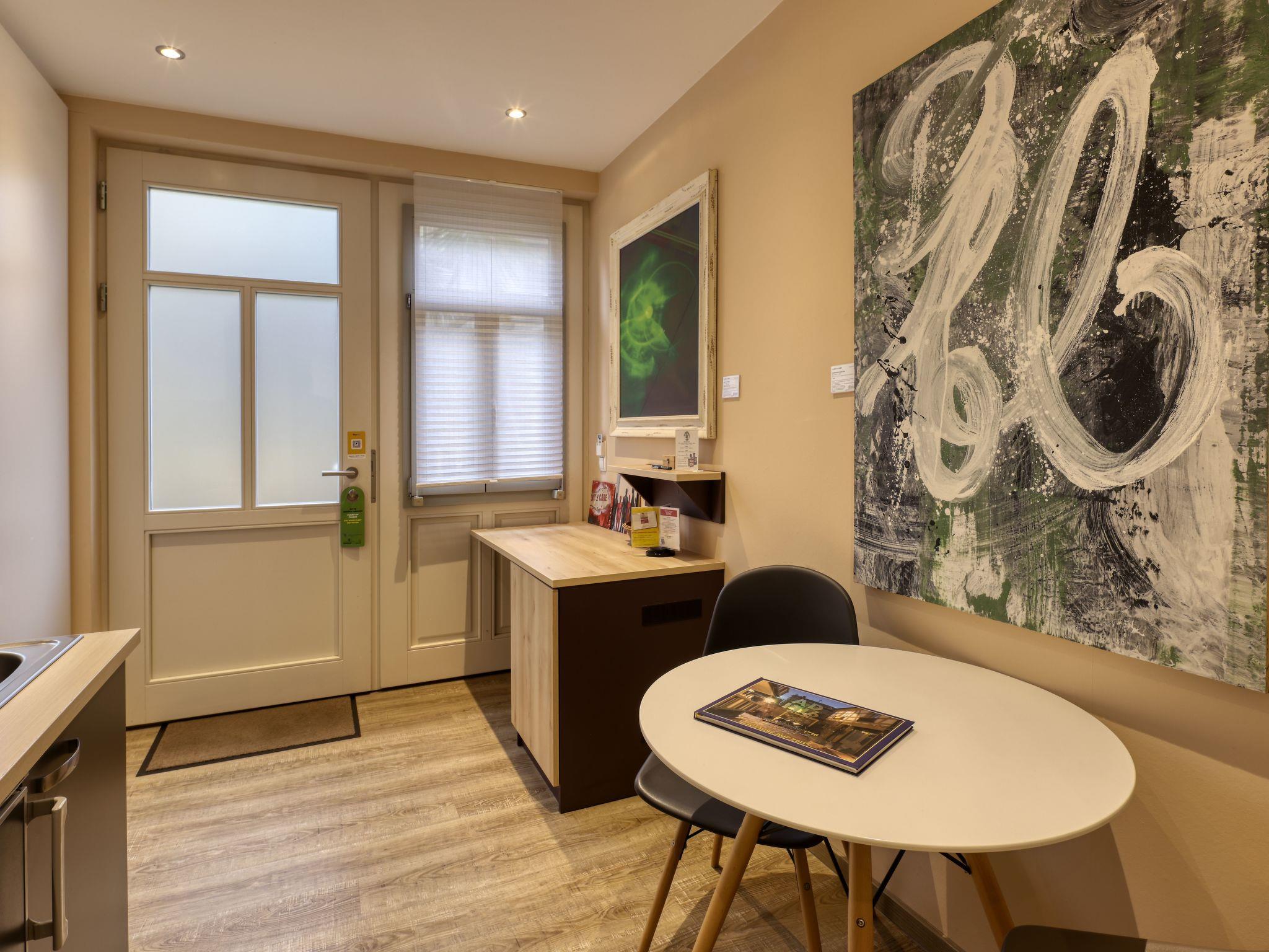 Quiet, cosily furnished superior studio with double bed on the ground floor of the Hofstallung with a total of 6 flats. In the cosy bedroom, you can lie comfortably on a solid box-spring double bed under cosy down duvets; in the evening, you can enjoy the heavenly peace and quiet in the idyllic inner courtyard. As in the entire house, underfloor heating is also installed here, which emits heat evenly and pleasantly. The windows and door to the inner courtyard are stylishly screened by sun-yellow roller blinds, while the parquet flooring makes the rooms pleasant to walk on and easy to clean, as does the bright and friendly wet area and the spacious wardrobe room with desk and seating area.The Mainkai promenade for strolling and sunbathing is right next to the apartment complex; there is also a well-run international restaurant with sun terraces, lounge and vaulted cellar. Just 80 metres above, on the market square, there are several restaurants ranging from Chinese and Greek to one of the best Franconian brewery pubs, the Bräustüble. You will also find bakers, butchers and all other shops for your daily needs within walking distance around the market square.Brief descriptionOther : Non-smoking houseShort description 1Number of kitchens : 1Kitchen 1Other kitchen facilities : Kitchen-cum-living room with an additional desk/workstationSurroundingsLeisure facilities : Car hire, bicycle hireSports facilities in the surrounding area : Fishing, basketball, football pitch, golf course, hunting, canoeing, mountain biking, cycling, horse riding, rowing, sailing, sports centre, tennis, water skiingGarden and outdoor facilitiesGarden equipment : Garden furniture available, barbecue, gazeboServicesServices (may apply) chargeable) : Cleaning service during your stay, Maid service