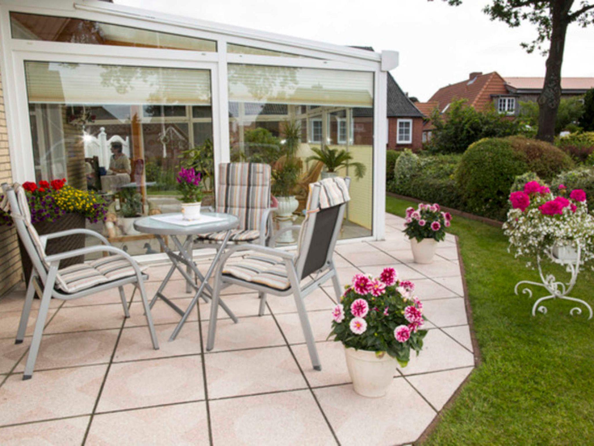 Der Wintergarten ist Frühstücks-und Aufenthalsraum für Sie. Dort können Sie die Morgensonne genießen entweder drinnen oder auf der Terrasse frühstücken. Auch der Fernseher oder eine Hifi-Minianlage fehlt nicht.