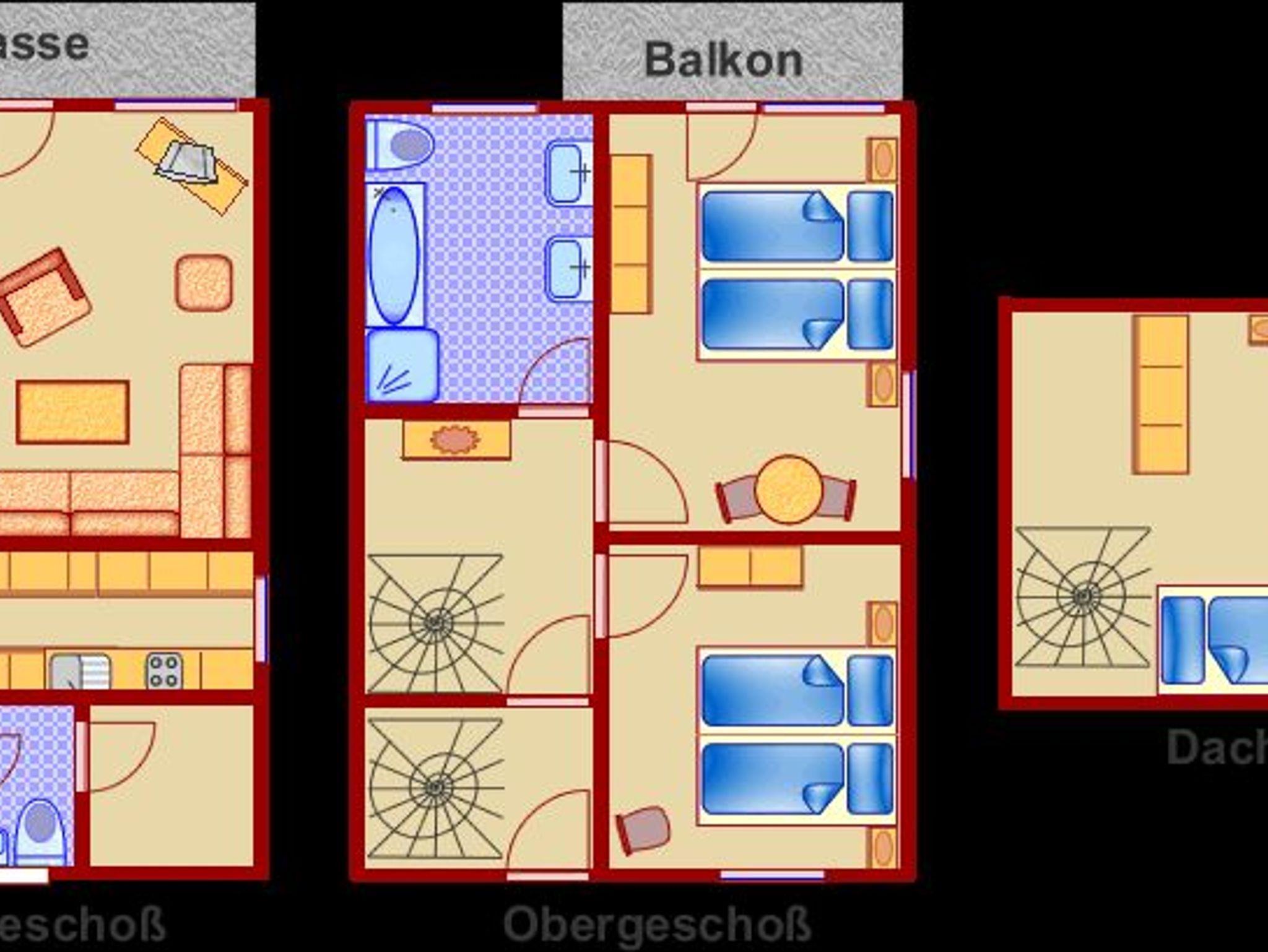 • zwei Schlafräume mit Doppelbetten im OG