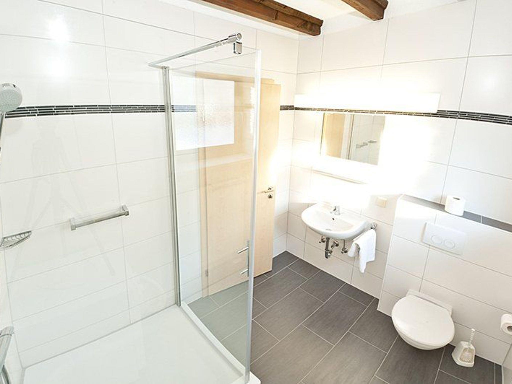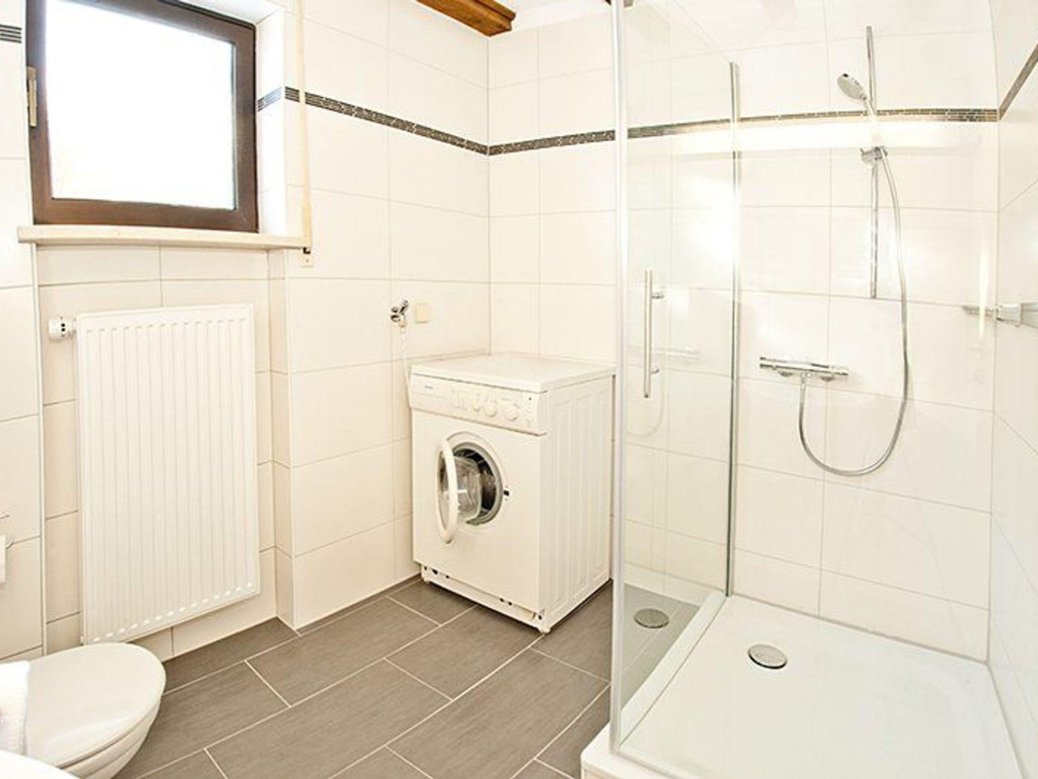 • Bäder: Im Untergeschoss gibt es ein Badezimmer mit Badewanne und WC, im Erdgeschoss zwei moderne Duschbäder mit WC (renoviert 2017). Das Elternbadezimmer verfügt über eine Waschmaschine.