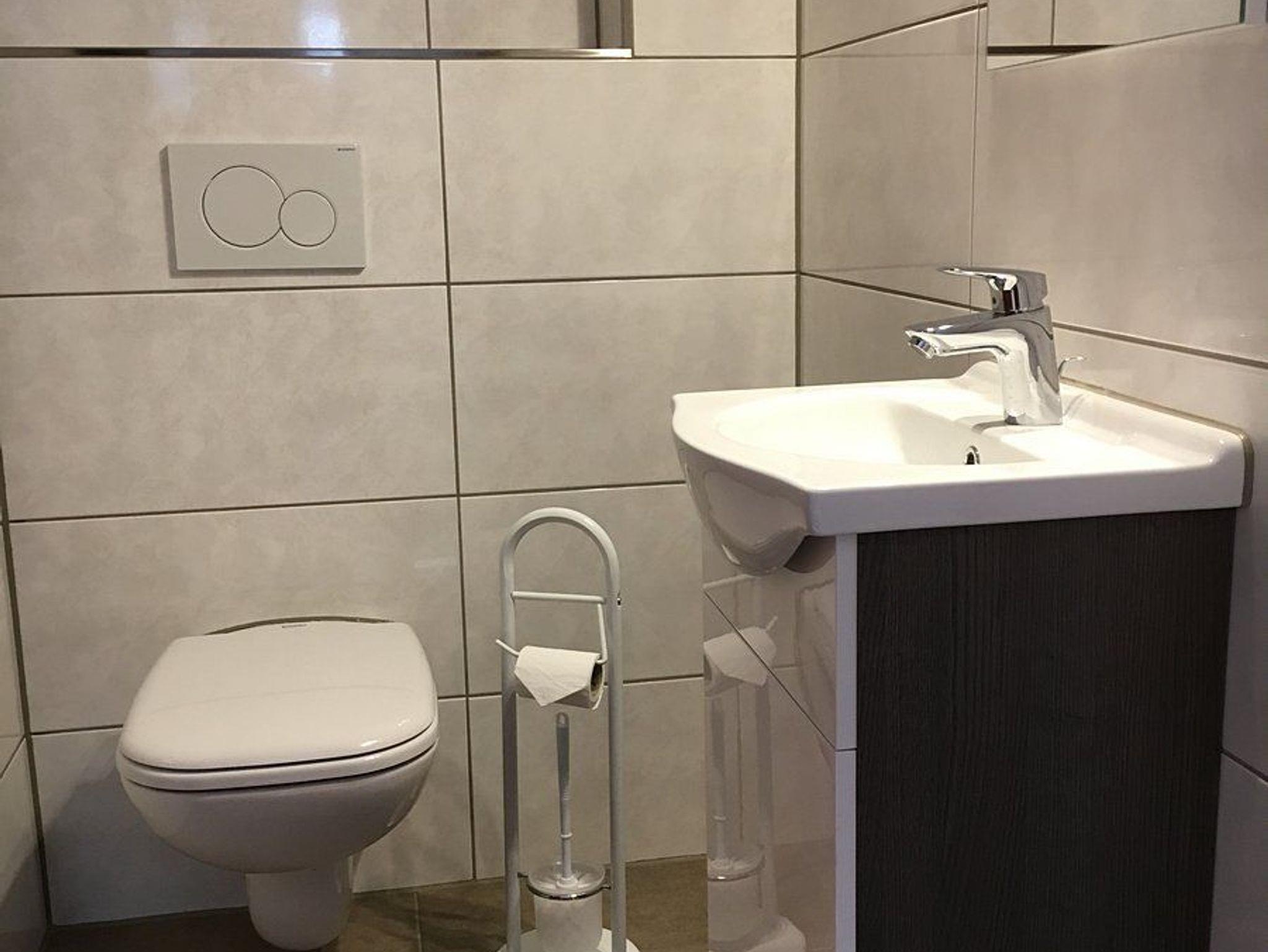 Es gibt auch noch zusätzlich ein Gäste-WC mit einem Waschbecken.