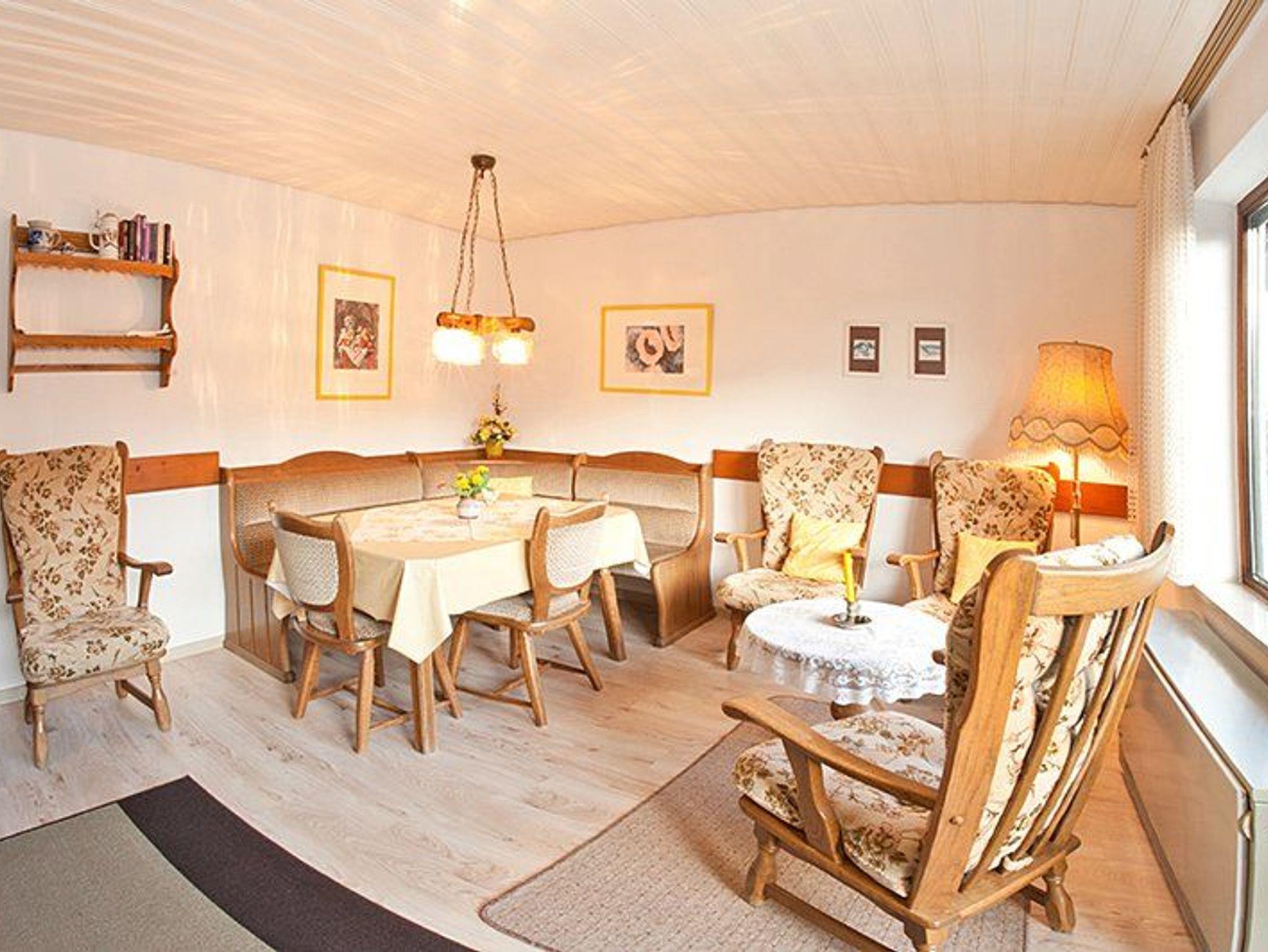 Das Wohnzimmer hat eine Essecke für 6 Personen, eine gemütliche Sesselgruppe (4Sessel+1Tisch), eine Stehlampe, Kabel-TV, eine Stereoanlage und Internet.