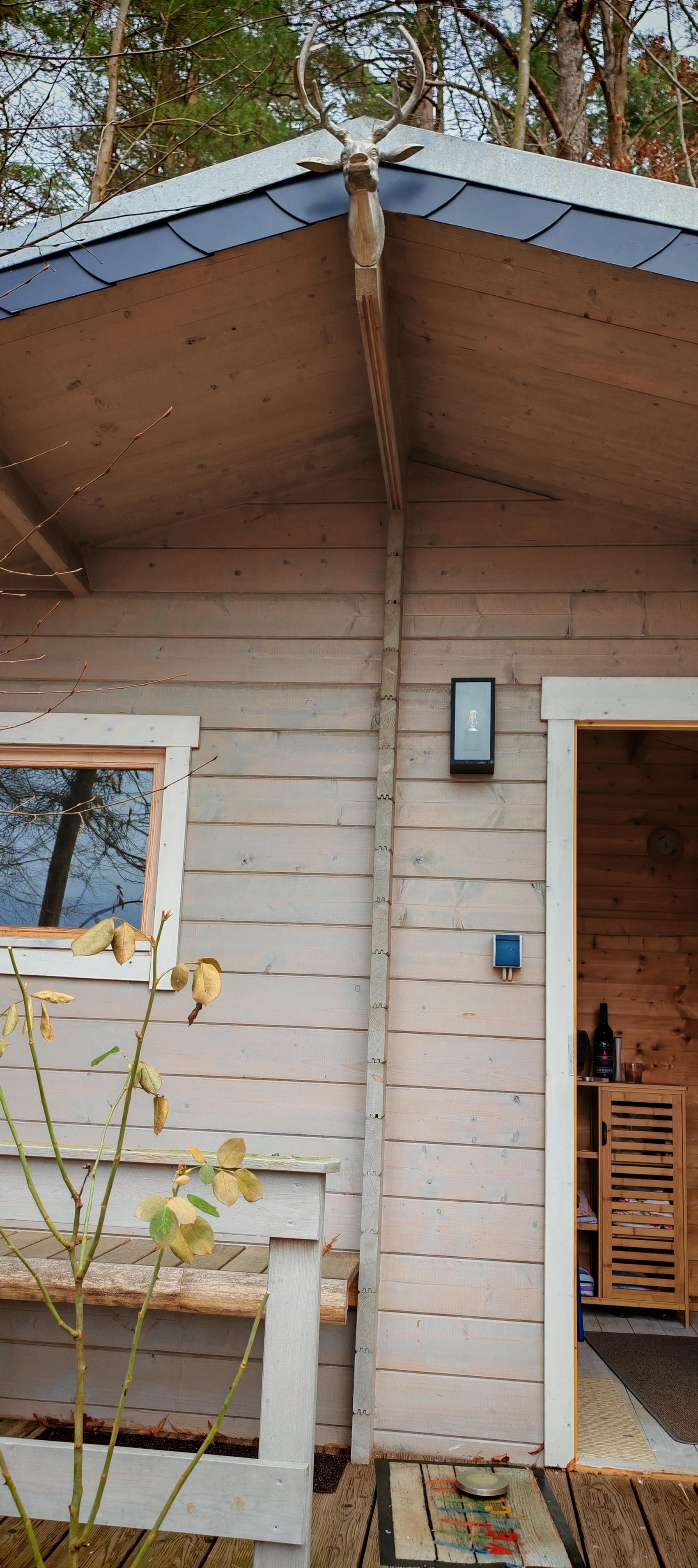 Der Bungalow liegt an einem Hang und ist über ca. 15 Stufen erreichbar .