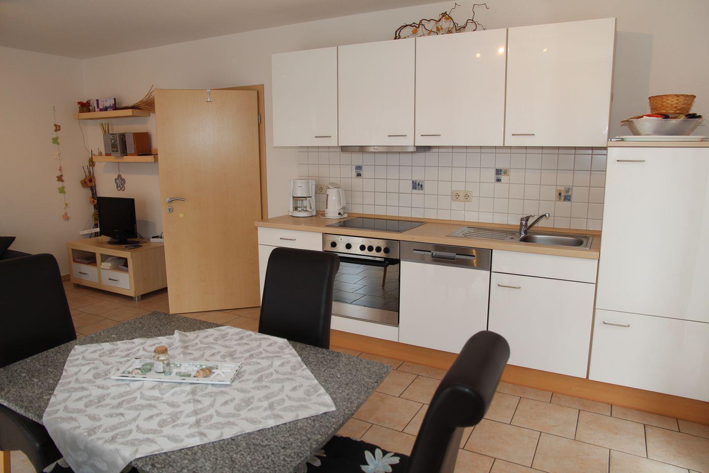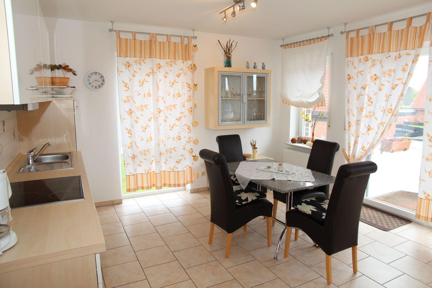 In Norddeich nur ca. 300 m bis zur Nordsee - liegt die wunderschöne Obergeschosswohnung mit Außenjalousien, für bis zu 4 Personen. Die Ferienwohnung ist geschmackvoll und komfortabel ausgestattet. Der Fußboden ist im Wohn- Essbereich gefliest. Großer Wohn- Essbereich mit voll ausgestatteter Küche z. B. Ceran-Kochfeld, Geschirrspüler, Gefrierfach, Wasserkocher, Kaffeemaschine etc., Musik-Anlage.