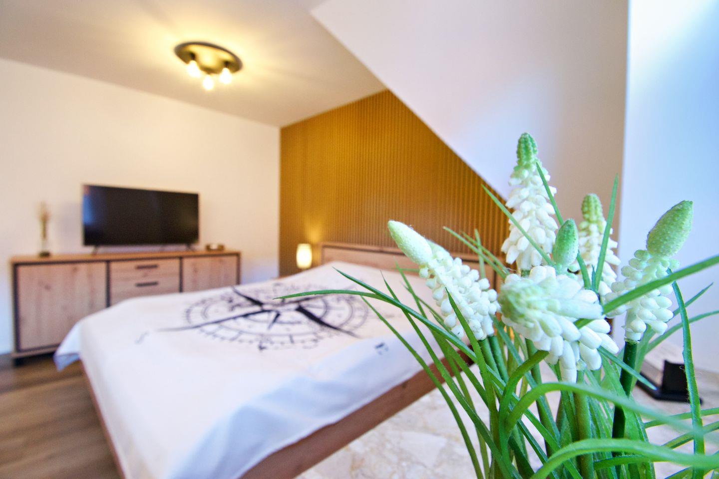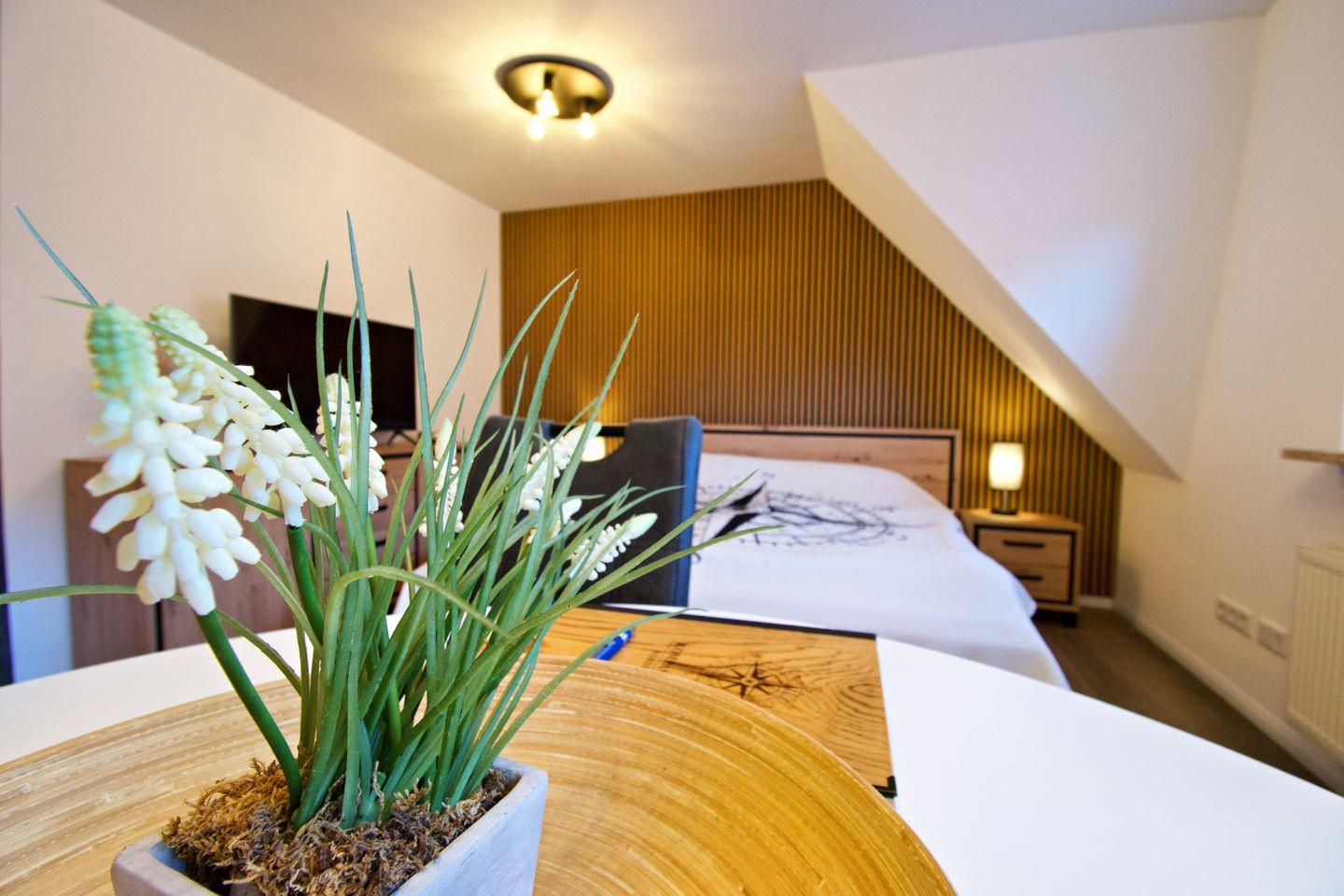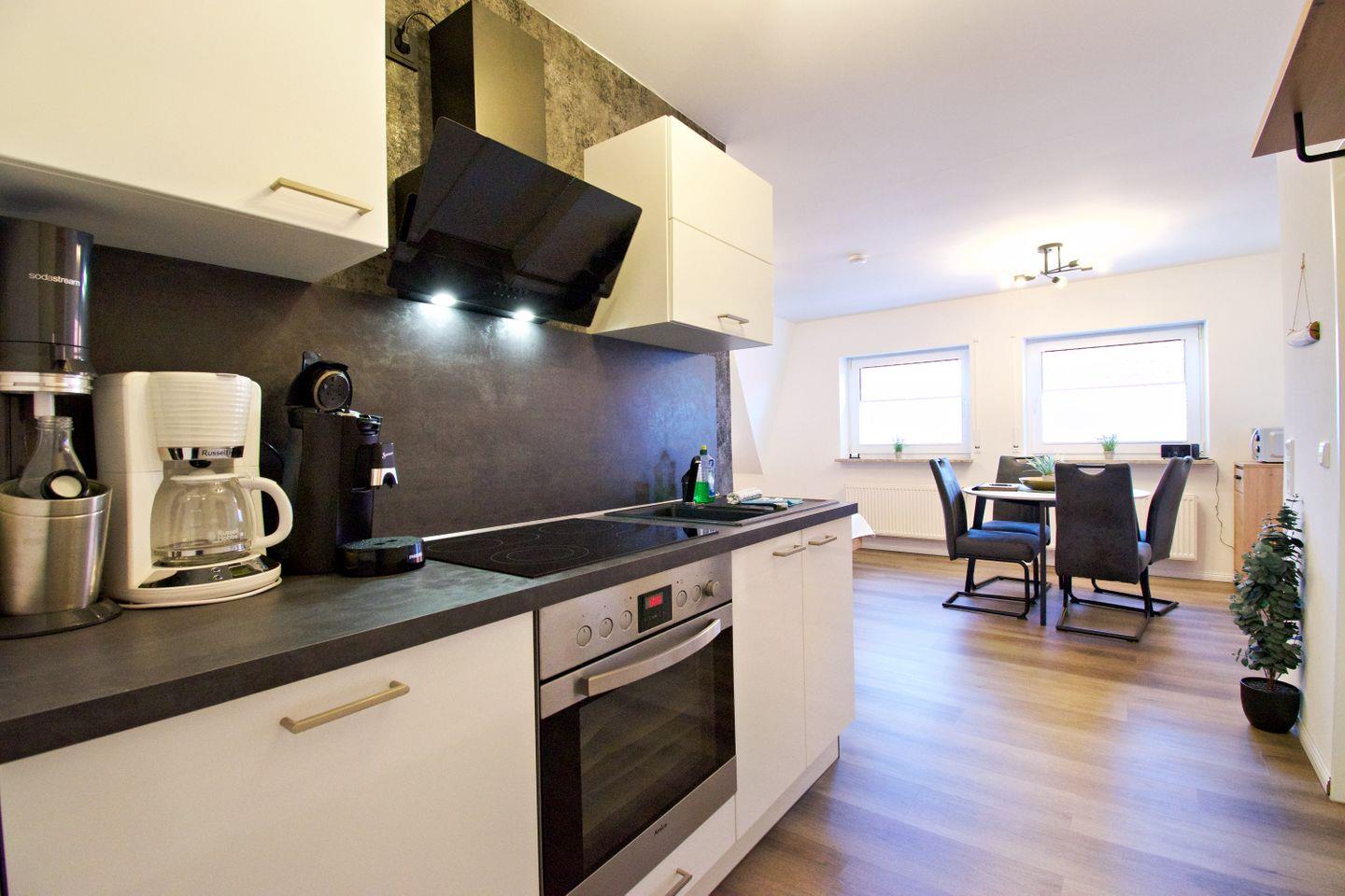 Die hochwertige Ausstattung mit WLAN, Internetradio, voll ausgestatteter Küche und einem eigenen PKW-Stellplatz direkt am Haus lässt keine Wünsche offen.