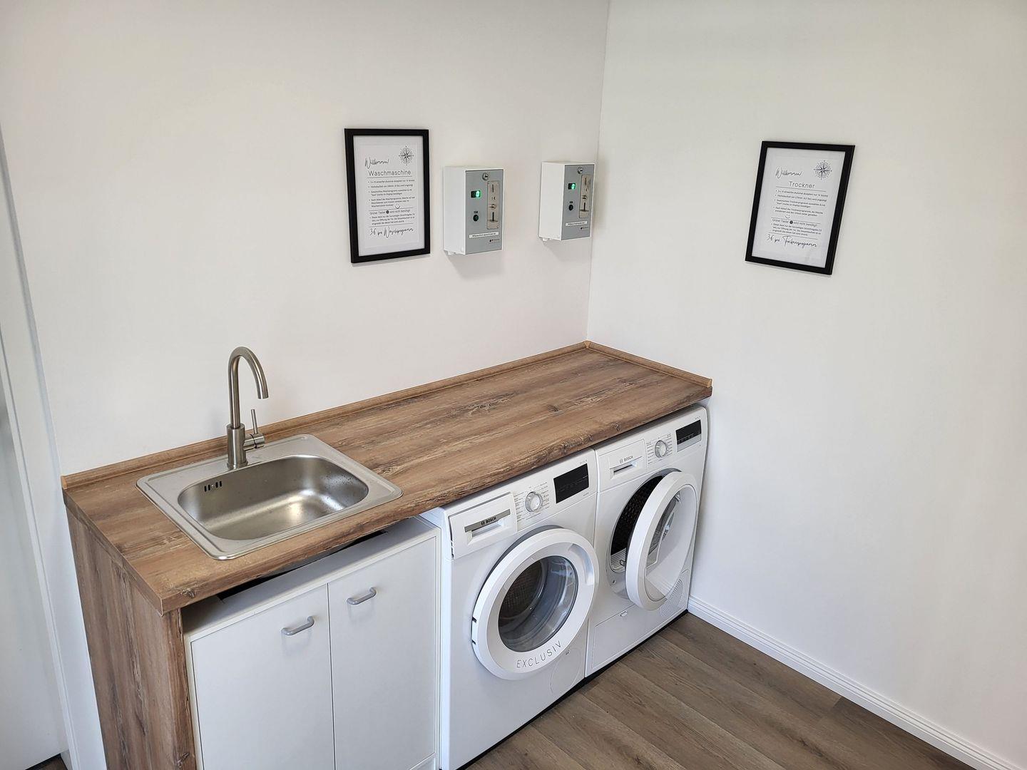 In der gemeinschaftlichen Garage stehen Ihnen Bollerwagen, Grill, Sonnenschirm, Auflagen und Gartenmöbel zur Verfügung. Fahrräder können dort sicher abgestellt werden. Im Waschraum finden Sie Waschmaschine & Trockner und ausreichend Möglichkeiten zum Aufhängen Ihrer Wäsche.