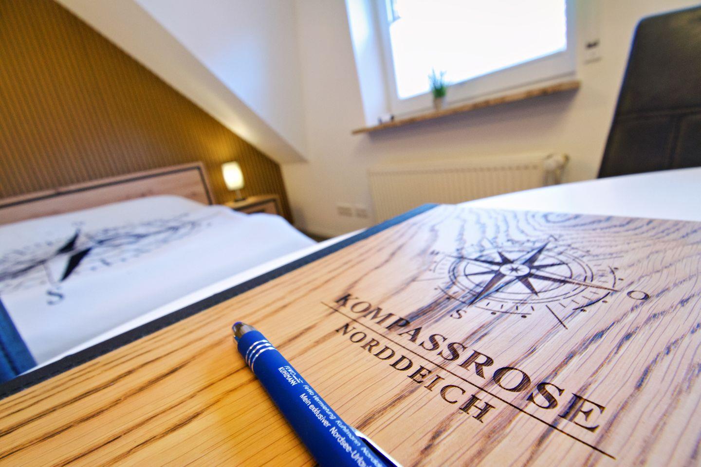Kompassrose KOMPASSROSE - Ankerplatz ist eine allergikergeeignete Nichtraucher-Ferienwohnung im 1. Stock in Norden-Norddeich, nur einen kurzen Weg vom Meer entfernt. Auf 45 m² erwarten Sie 2 Zimmer für 2 Personen mit Sofa, TV, WLAN sowie Bügeleisen/-brett, Waschmaschine und Trockner. Offene Küche mit Ceranfeld, Spülmaschine und Senseo. Privatparkplatz, Garten mit Möbeln, Liegewiese und Kohlegrill.