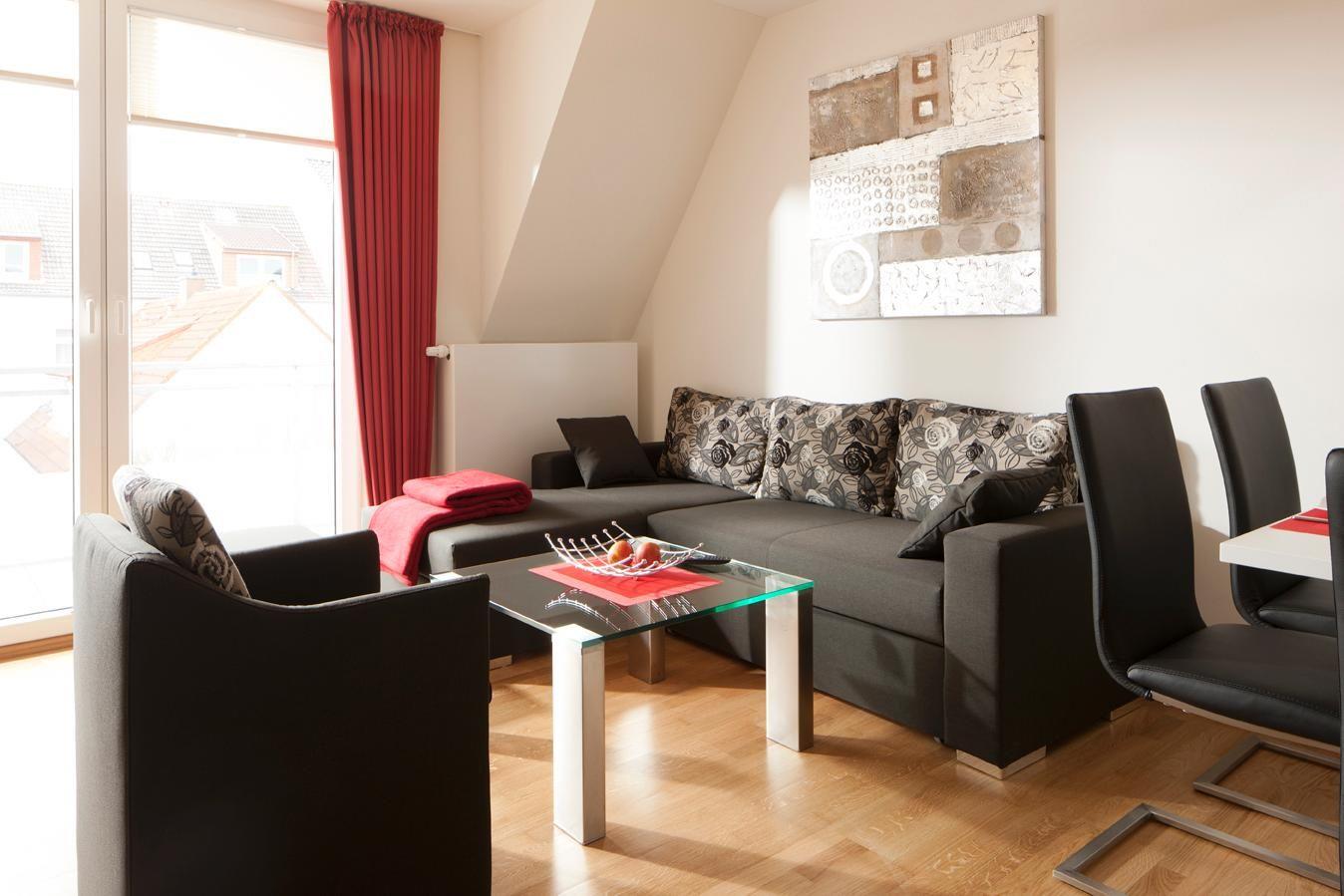 Zusätzlich zu den Schlafzimmern verfügt die Wohnung über zwei Bäder. Der Wohnbereich bietet zur Sitzecke und neben einer offenen Küche auch einen Essbereich. Ein besonderes Highlight der Wohnung sind die beiden Balkone. Hunde sind in dieser Ferienwohnung nicht erlaubt.