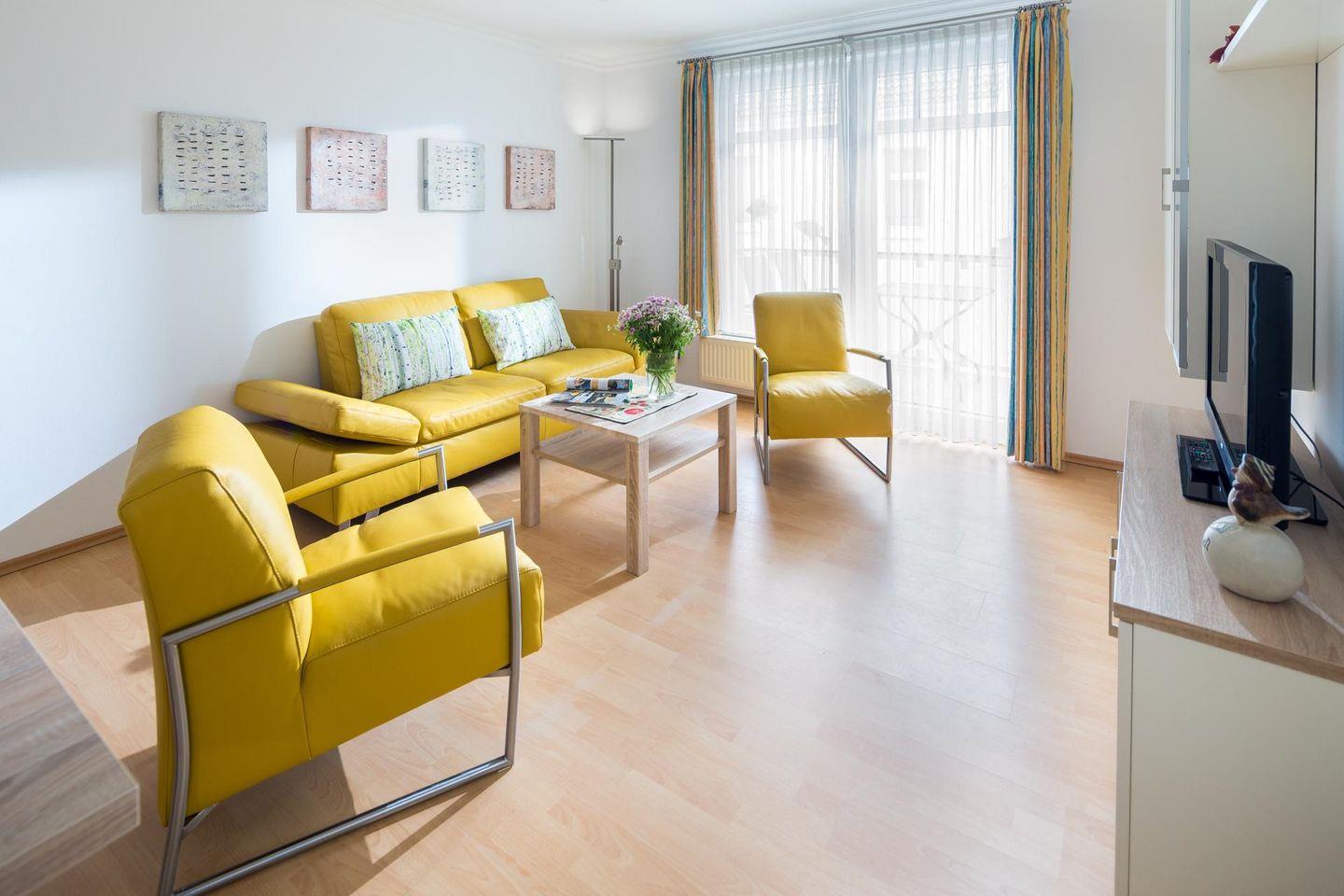 Die Wohnung verfügt über ein Schlafzimmer mit einem Doppelbett und ein weiteres Schlafzimmer mit zwei Einzelbetten - ideal für Familien mit Kindern. Die Küche ist voll ausgestattet und verfügt neben einer Filterkaffeemaschine auch über eine Pad-Kaffeemaschine. Das Badezimmer ist mit einer Dusche ausgestattet. Zudem verfügt die Wohnung über einen Balkon. Dieser liegt in Richtung Süd-West. Hunde sind in dieser Unterkunft nicht erlaubt.