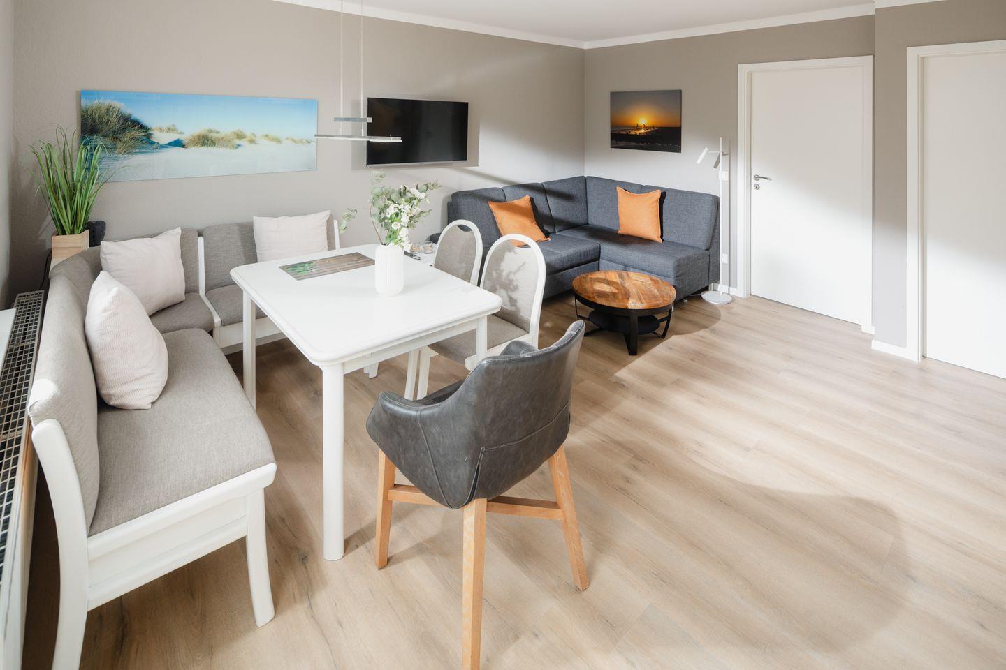 Die Ferienwohnung "Goode Wind" befindet sich im Haus "Frisia 23". Das Haus liegt in der Frisiastraße, eine der alten Inselstraßen. Die Lage ist äußerst günstig, da sie kurze Wege sowohl zum Strand "Am Januskopf" als auch zur Innenstadt ermöglicht. Die Ferienwohnung "Goode Wind" ist eine der beiden Ferienwohnungen in diesem Haus. Sie befindet sich im 1. Obergeschoss, während die andere Wohnung namens "Seute Deern" im Erdgeschoss liegt. Die Wohnung "Goode Wind" ist für bis zu 4 Personen konzipiert.