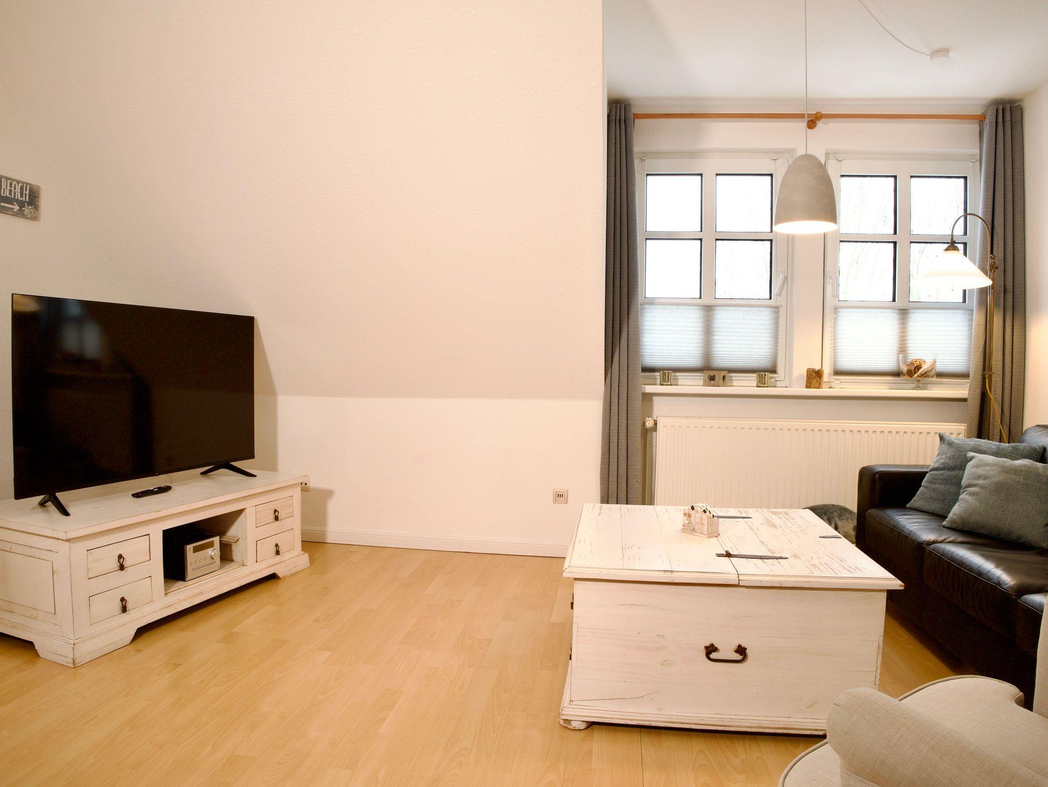 Zur Wohnung gehören eine eigene Sonnenterrasse, sowie ein kleiner, eingezäunter Garten, die beide zum Verweilen mit Familie und den liebsten Vierbeinern im Freien einladen. Ein Strandkorb steht bereit und unterstreicht den maritimen Charakter des Außenbereichs. Zwei PKW-Stellplätze sowie Glasfaser-WLAN runden das Angebot ab.