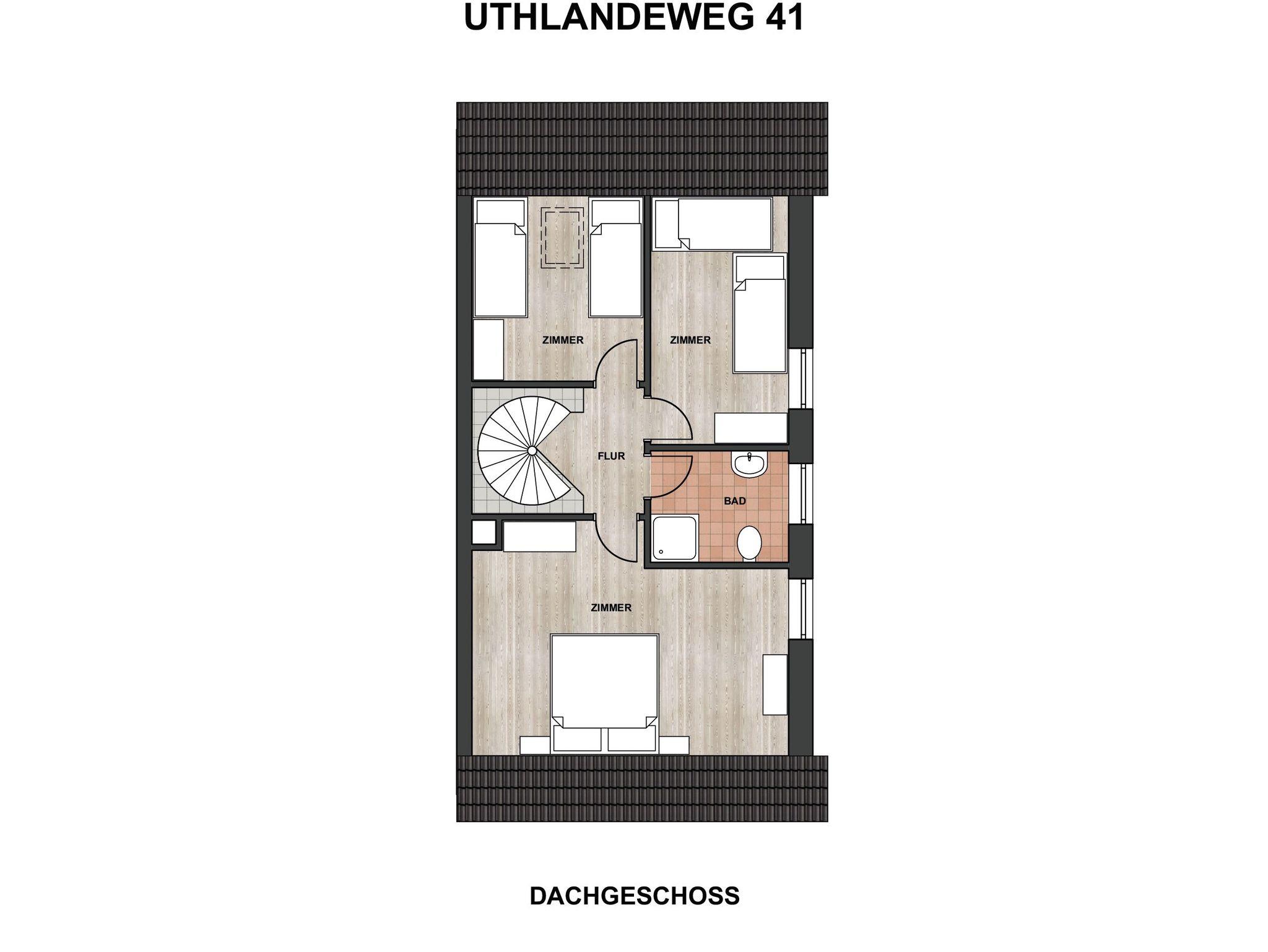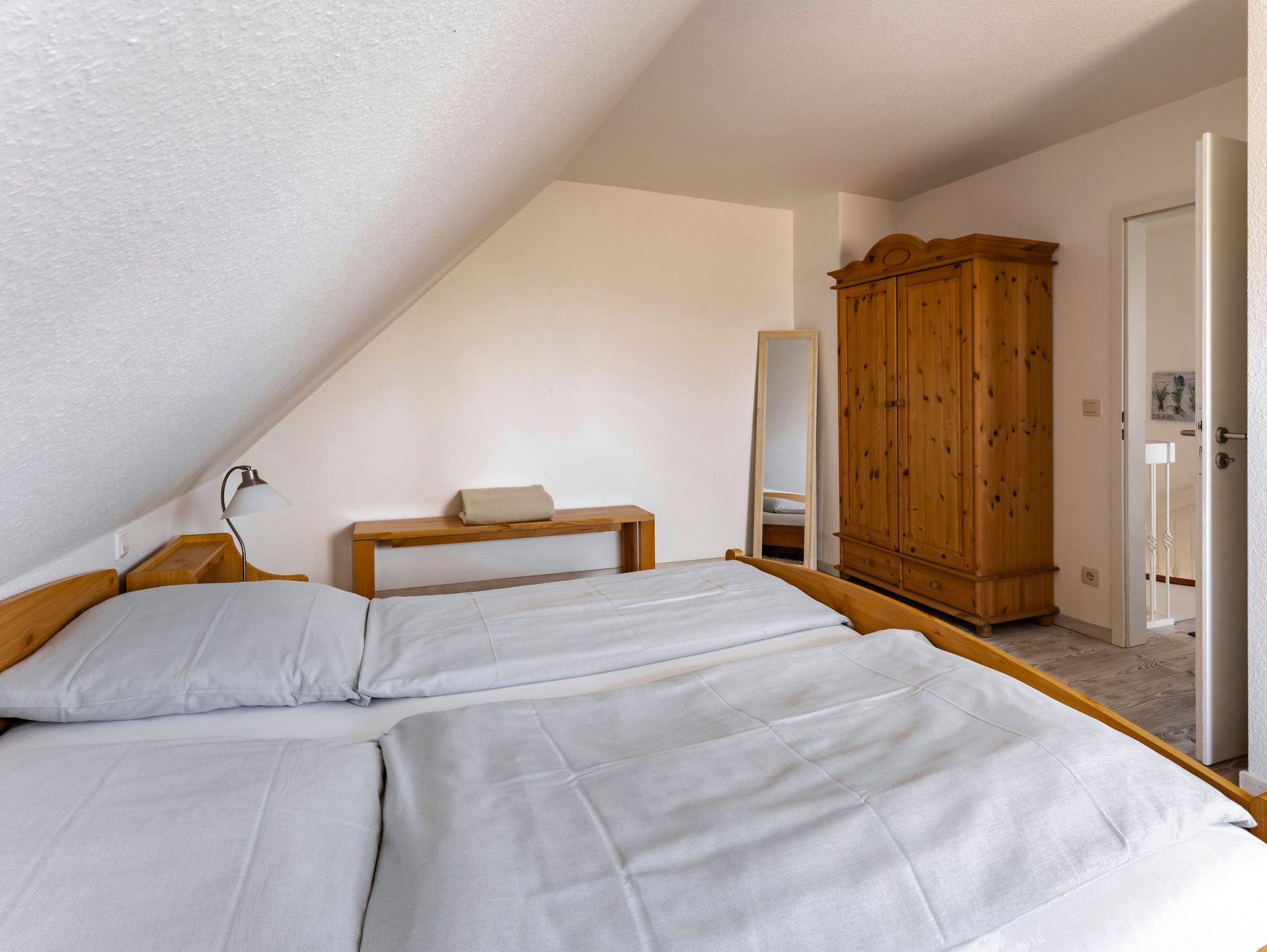 Im Obergeschoss befinden sich drei komfortable Schlafzimmer: Ein Zimmer mit einem Doppelbett sowie zwei weitere Zimmer mit jeweils zwei Einzelbetten. Zudem steht Ihnen auf dieser Etage ein zweites Badezimmer zur Verfügung.