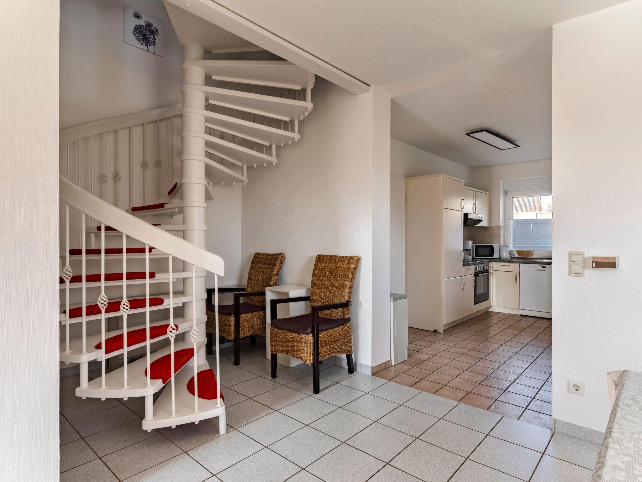 Im Erdgeschoss erwartet Sie ein großzügiges Wohnzimmer mit einem gemütlichen Wohn- und Essbereich. Die angrenzende Küche ist komplett ausgestattet ? inklusive Geschirrspülmaschine, Mikrowelle und weiteren Annehmlichkeiten. Vom Flur aus gelangen Sie zu einem zusätzlichen Bad mit Dusche und WC. Ein weiterer Pluspunkt ist die möblierte Außenterrasse inkl. Strandkorb, die direkt vom Wohnzimmer aus zugänglich ist. Im Abstellraum ist die Waschmaschine zu finden.