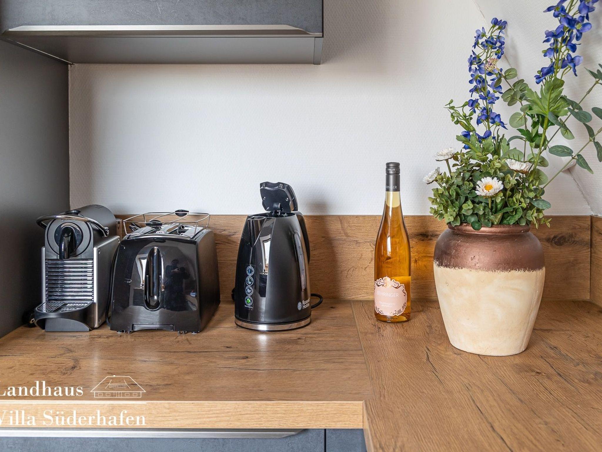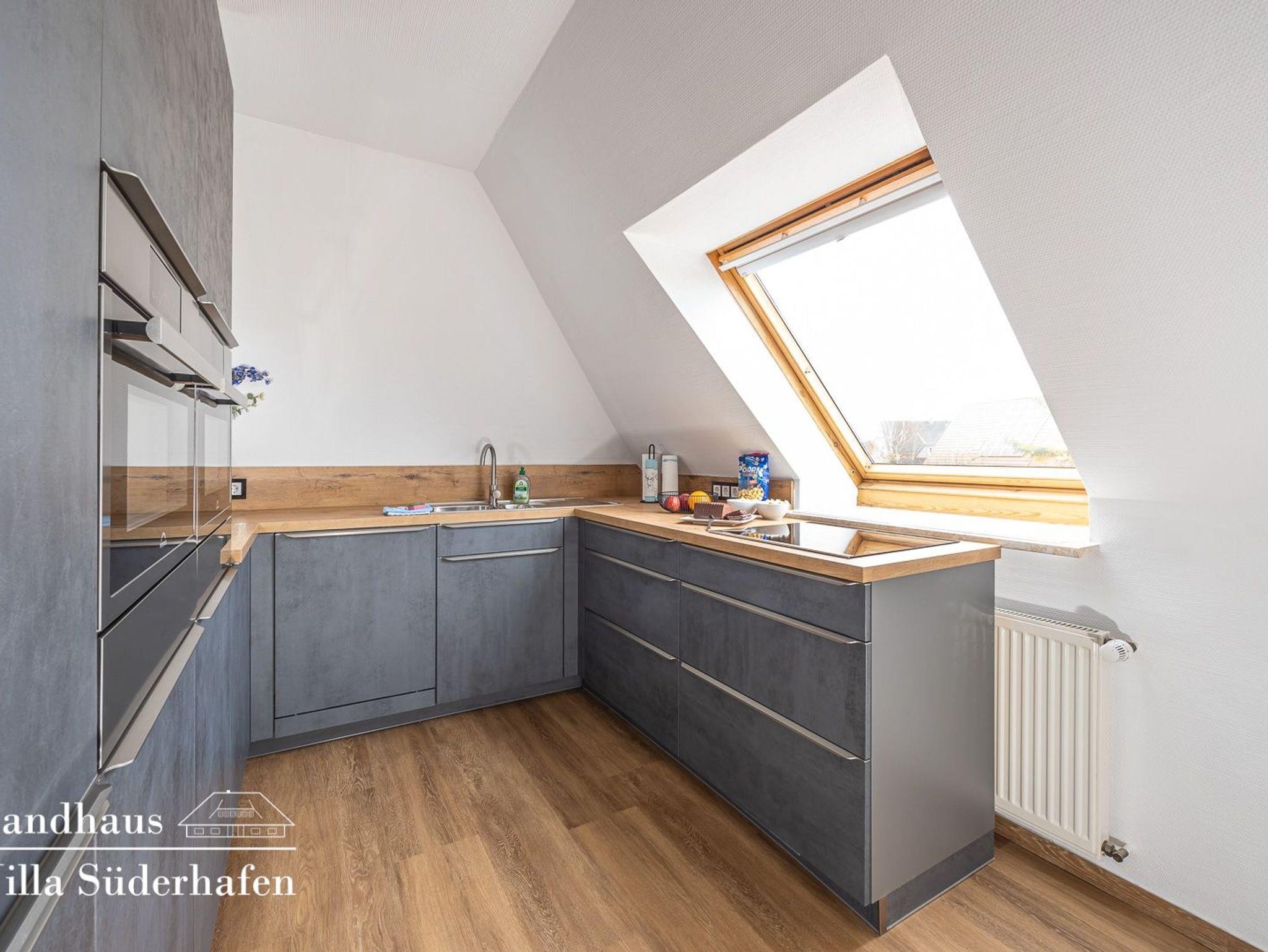 Die moderne Einbauküche ist vollständig ausgestattet und bietet mit Kaffeemaschine, Gefriermöglichkeit, Geschirrspüler alles was das Herz begehrt, um gemeinsame Mahlzeiten mit Familie und Freunden genießen zu können.