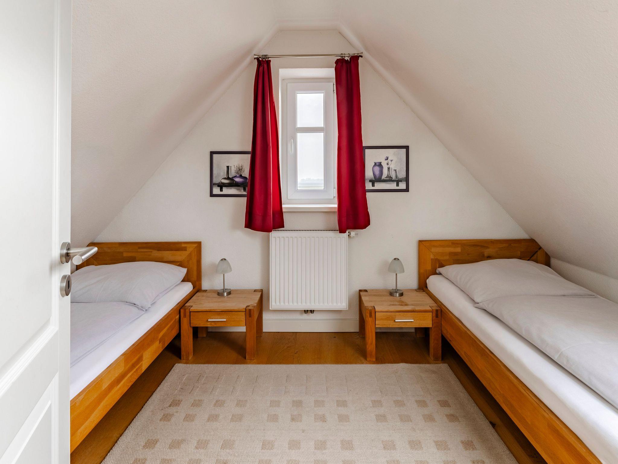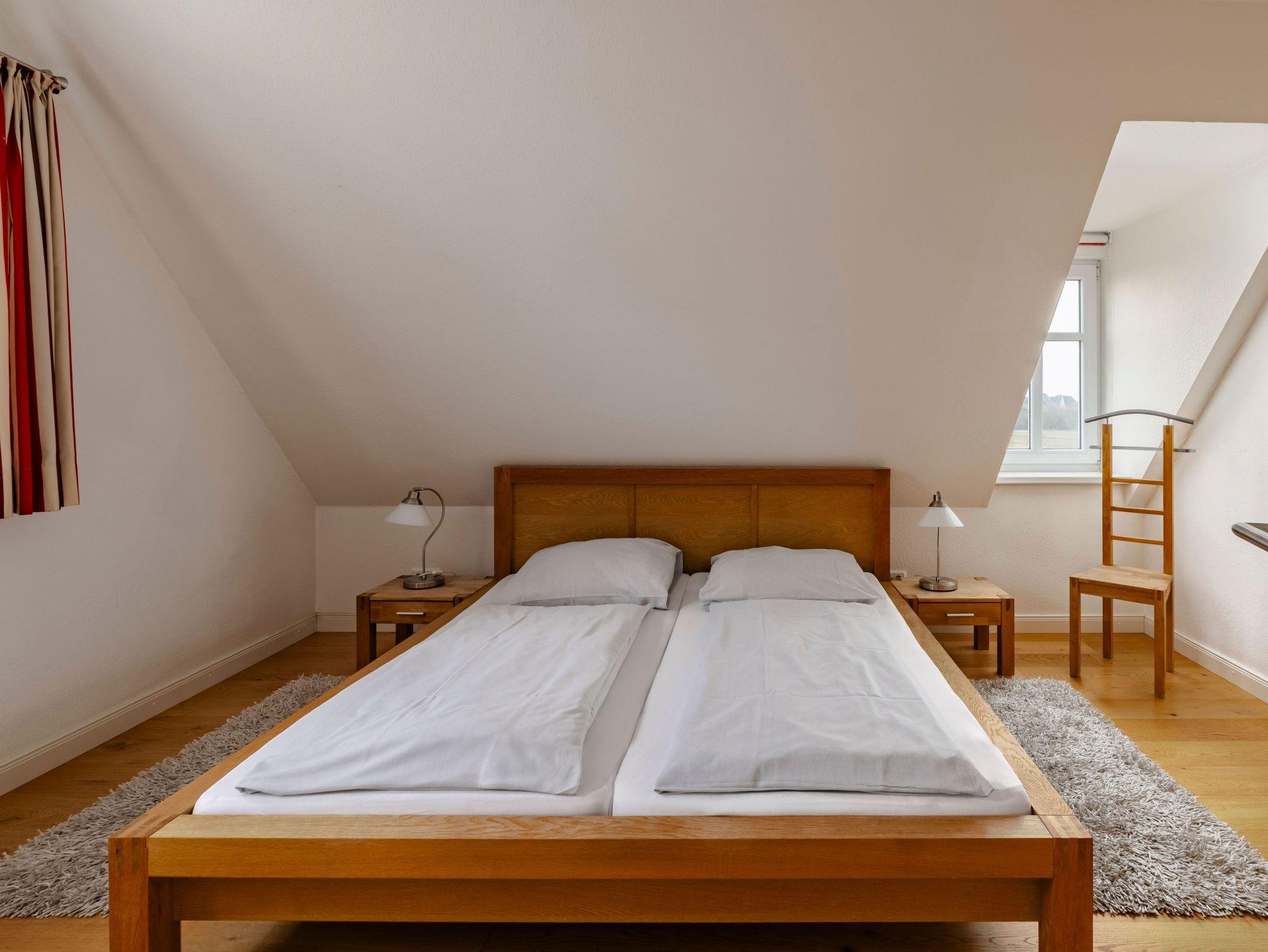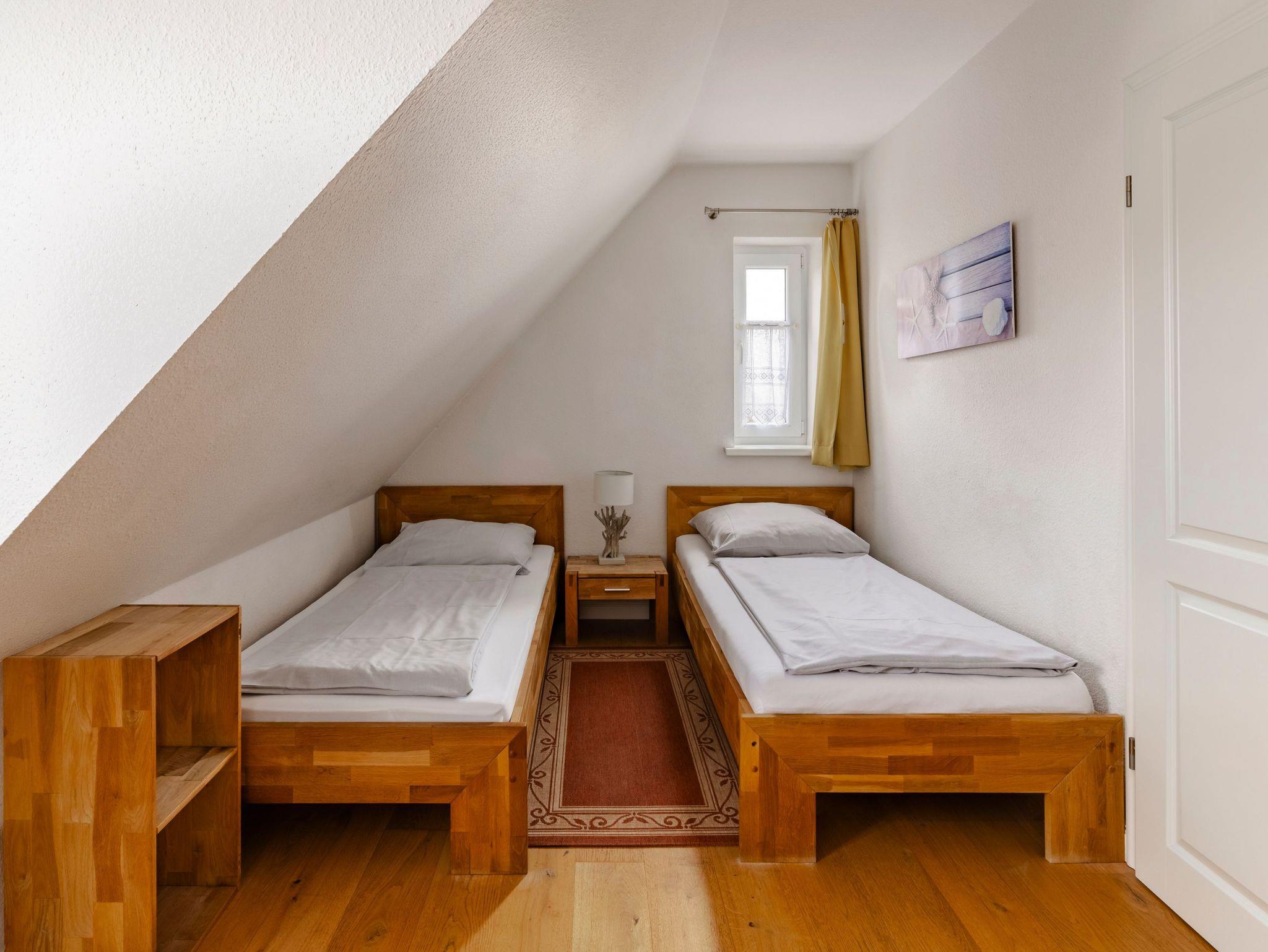 Im 1. Obergeschoss befinden sich zwei Schlafzimmer ? eines mit Doppelbett und eines mit zwei Einzelbetten ? sowie ein Badezimmer mit Dusche und WC. Ein weiteres Schlafzimmer mit zwei Einzelbetten liegt im ausgebauten Giebelzimmer im Dachgeschoss.