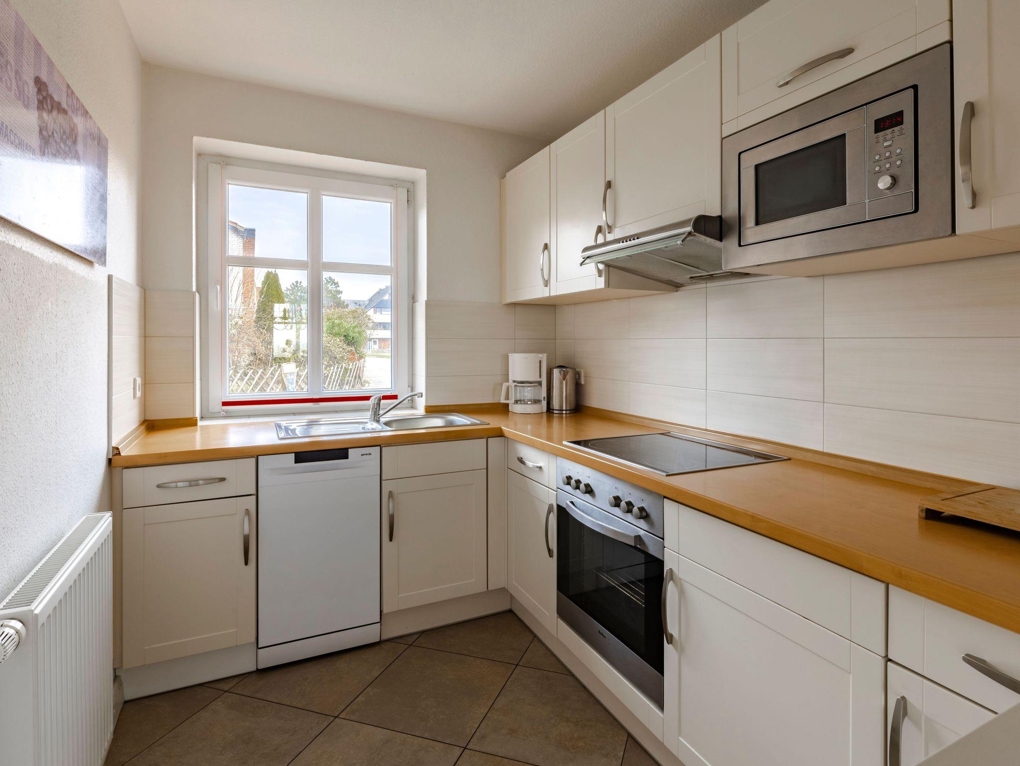 Im Erdgeschoss erwartet Sie ein großzügiges Wohnzimmer mit separatem Wohn- und Essbereich. Die moderne Küche verfügt über eine vollständig ausgestattete Einbauküche mit Geschirrspülmaschine, Mikrowelle und weiteren Annehmlichkeiten. Zusätzlich befindet sich im Erdgeschoss ein Gäste-WC mit Dusche als zweites Badezimmer. Vom Wohnzimmer aus gelangen Sie direkt auf die möblierte Terrasse mit Strandkorb ? perfekt, um die frische Nordseeluft zu genießen.