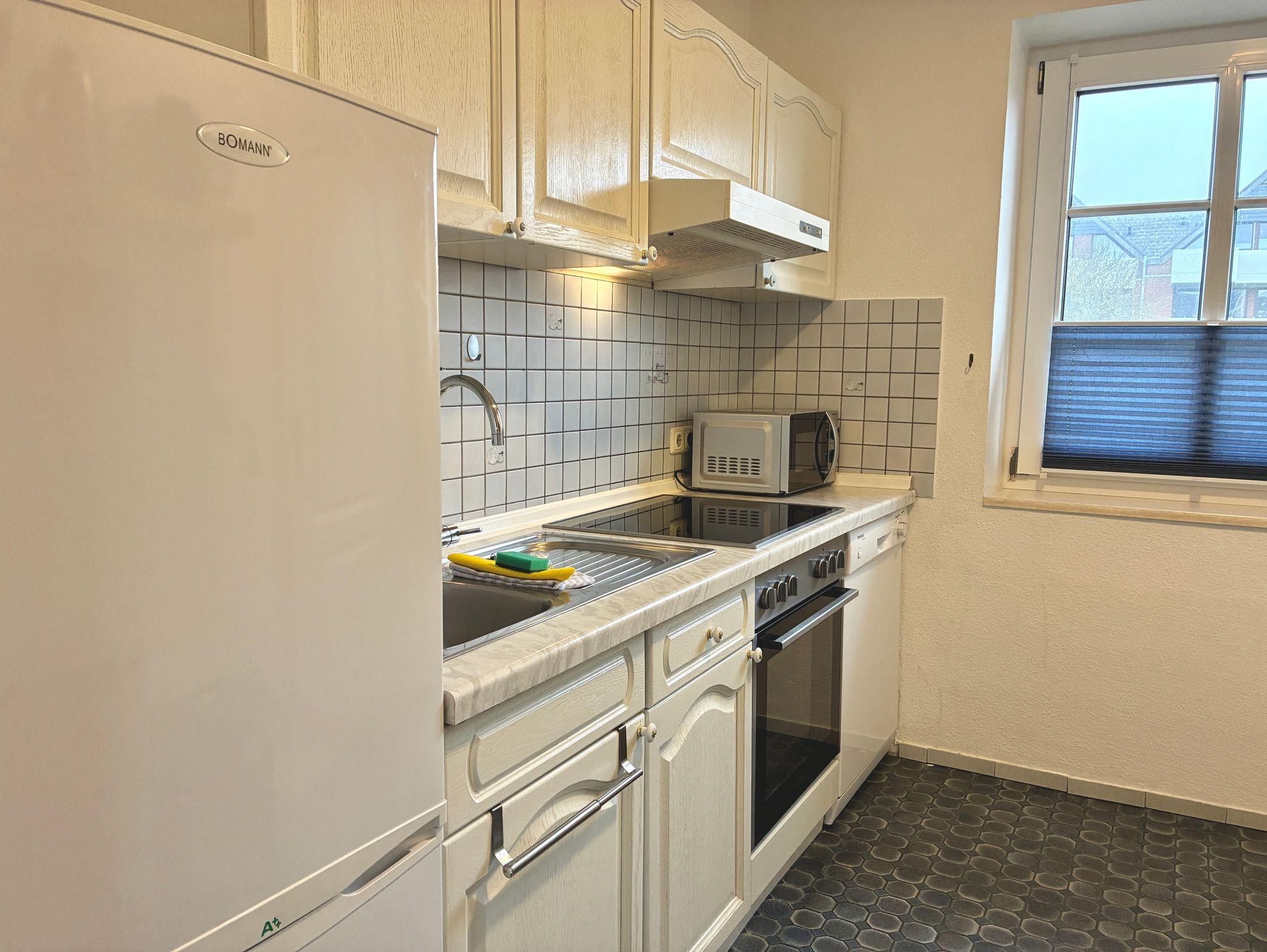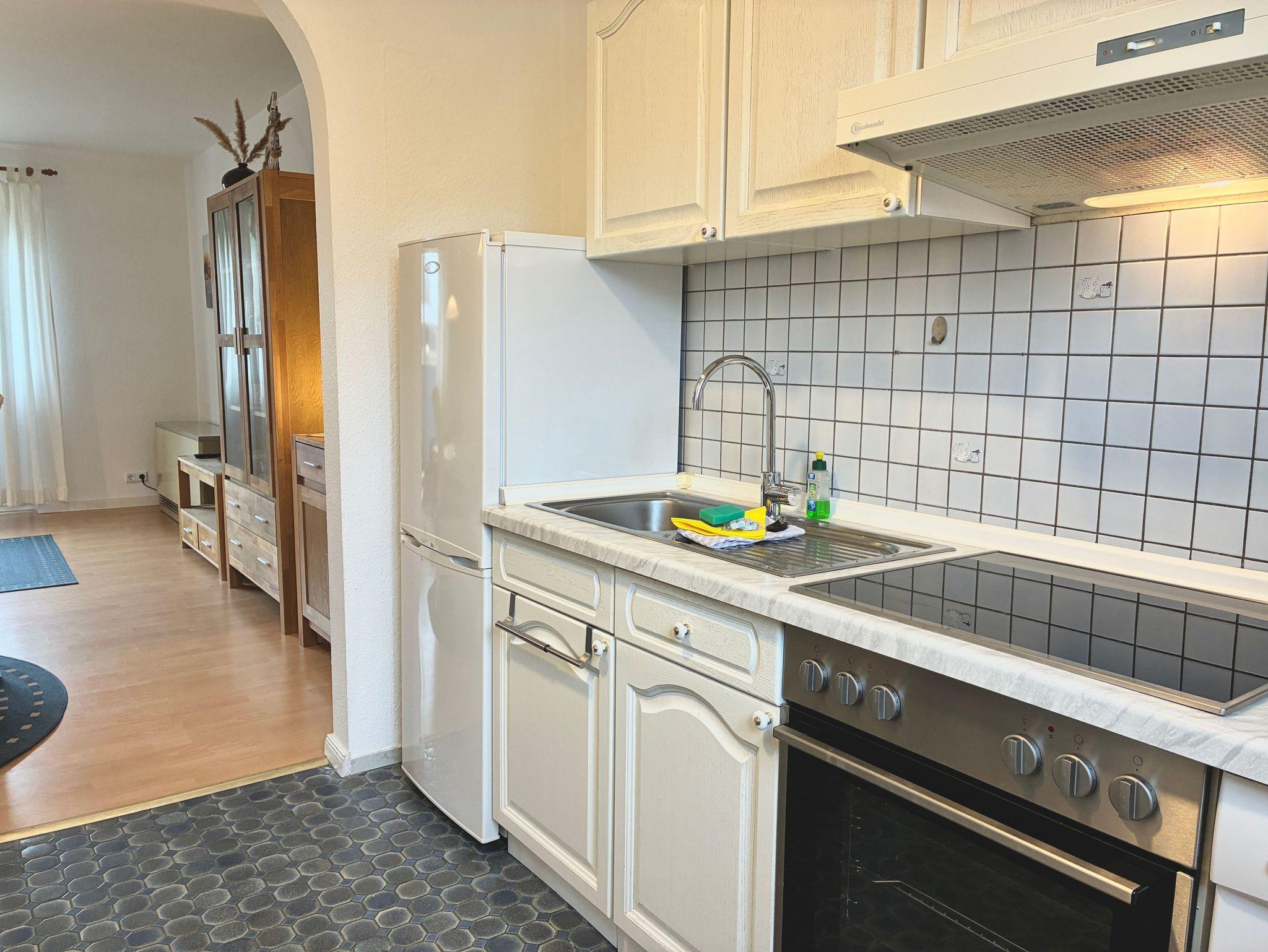 Die Küche ist freundlich und übersichtlich gestaltet und bietet alles, was es für den täglichen Komfort benötigt. Eine Spülmaschine, eine Gefriermöglichkeit sowie eine Waschmaschine stehen zur Verfügung und erleichtern auch längere Aufenthalte. Zusätzlich befindet sich im Erdgeschoss ein separates Gäste-WC.