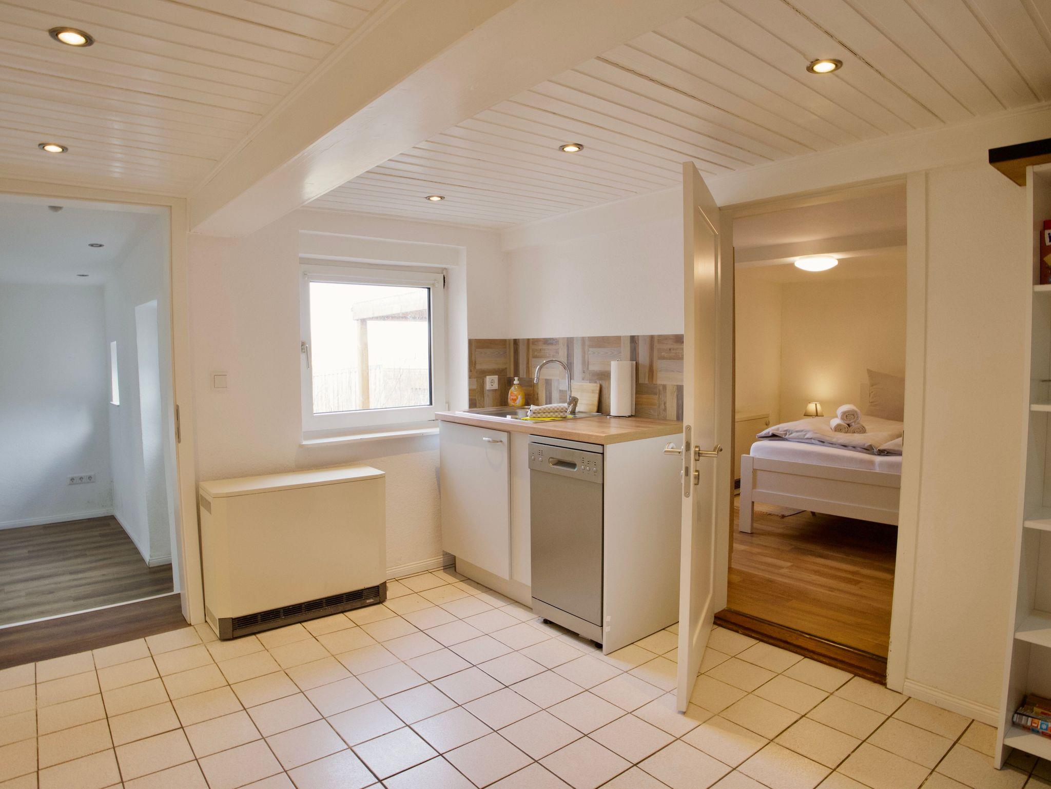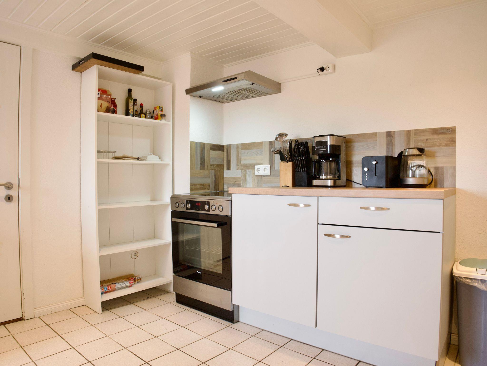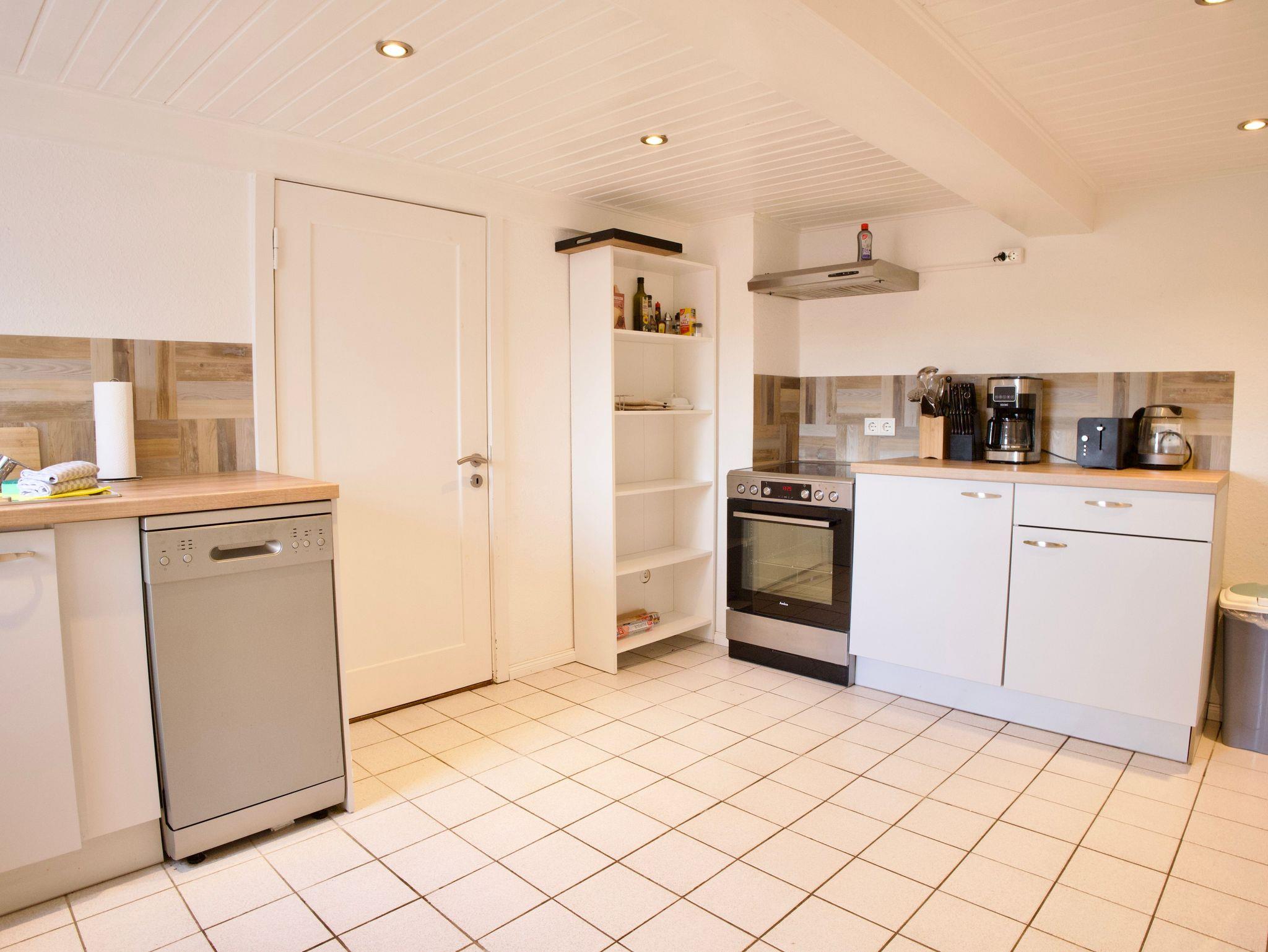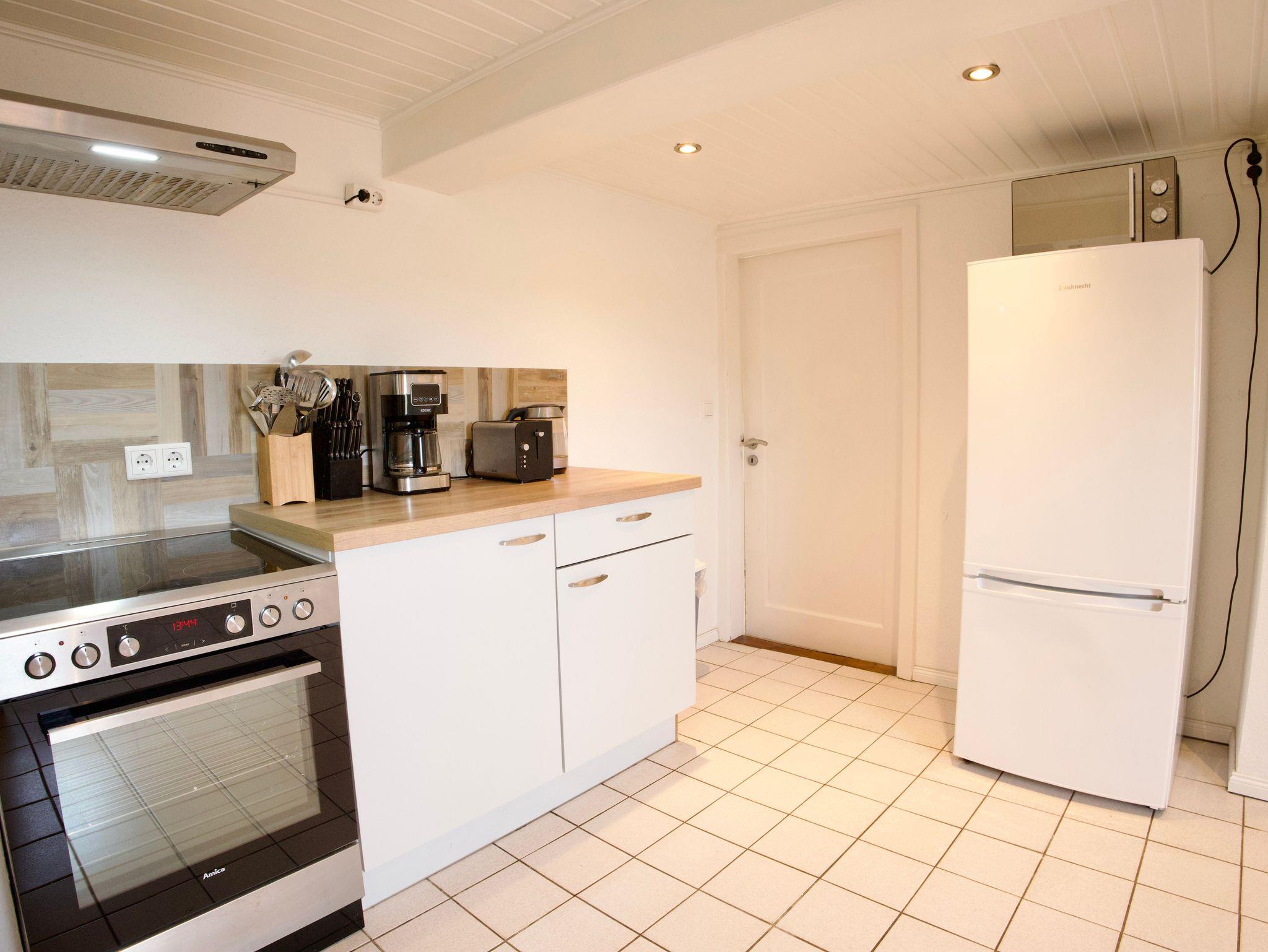 Die Küche schließt direkt an den Wohnbereich an und ist funktional ausgestattet. Eine Spülmaschine, eine Gefriermöglichkeit sowie eine Kaffeemaschine stehen zur Verfügung und machen auch längere Aufenthalte angenehm.