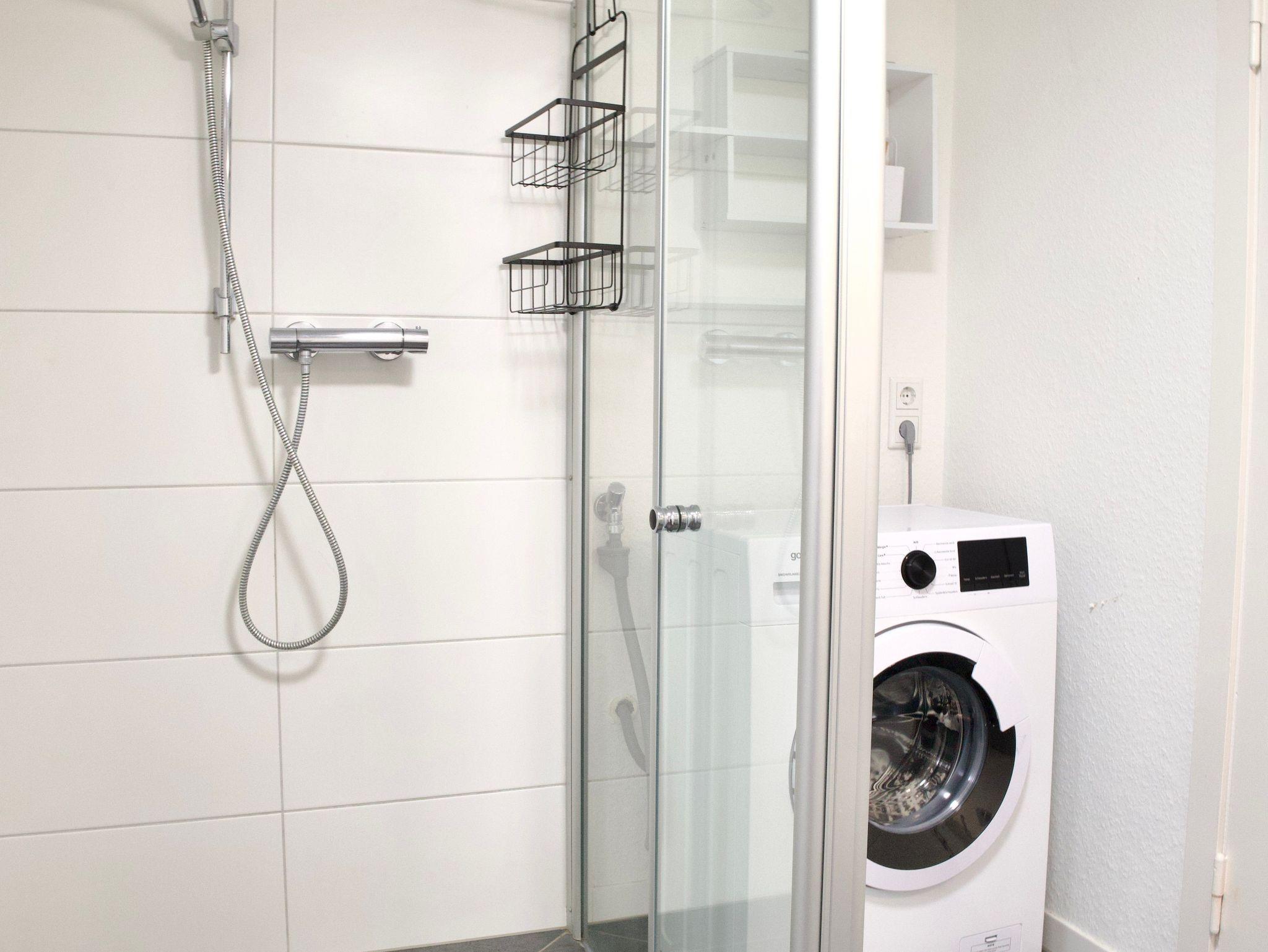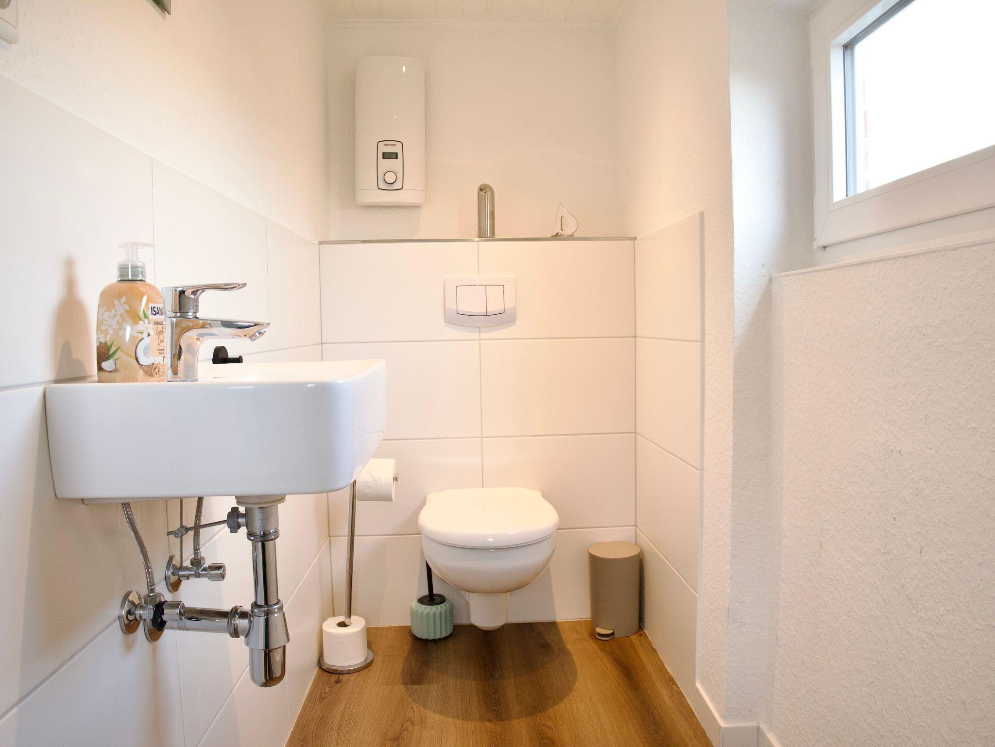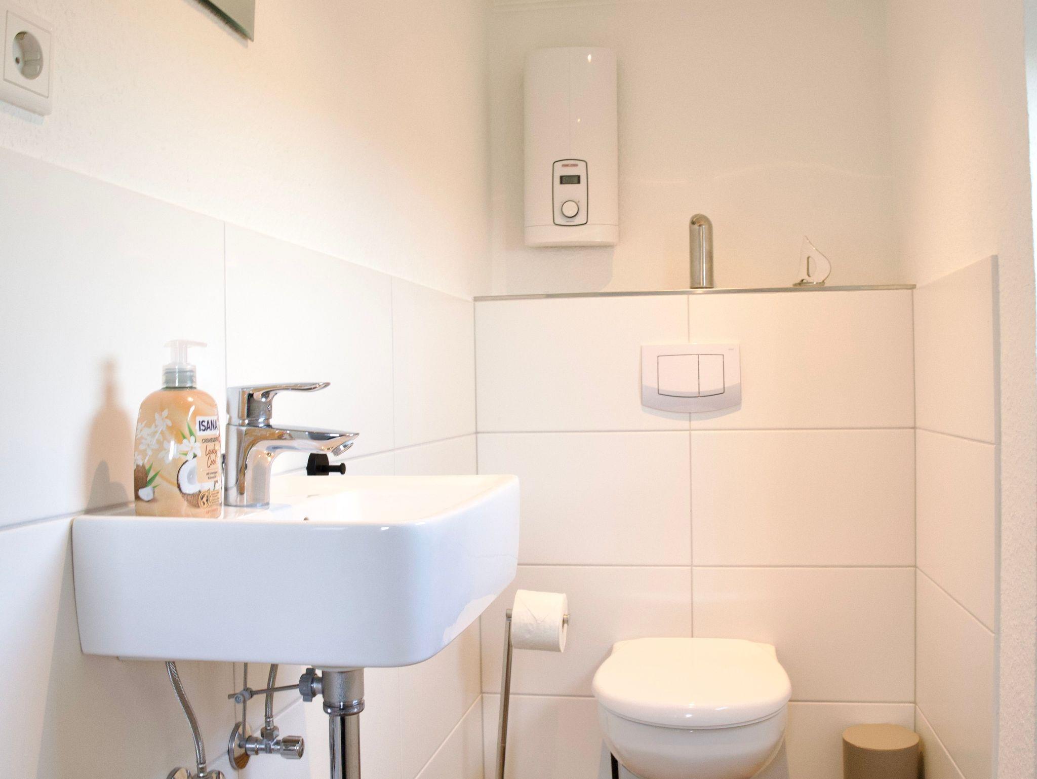 Ebenfalls im Erdgeschoss befinden sich ein Duschbad mit Waschmaschine sowie ein separates Gäste-WC.