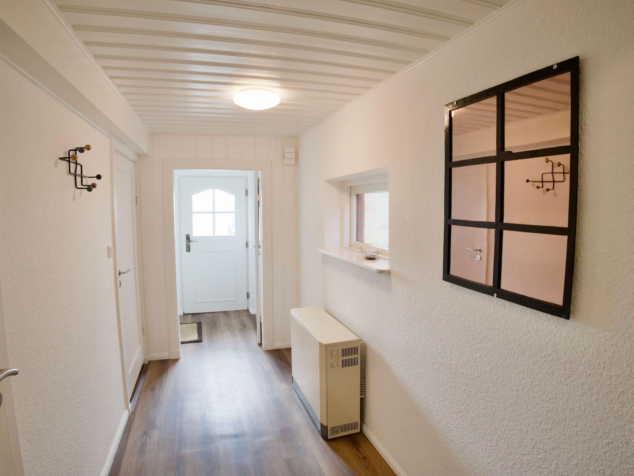 Vom Flur aus erreichen Sie die große, überdachte und vollständig möblierte Terrasse sowie den eingezäunten, hundefreundlichen Garten. Ein Gartenhäuschen bietet Platz zur sicheren Unterbringung von Fahrrädern und E-Bikes, die dort auch geladen werden können.