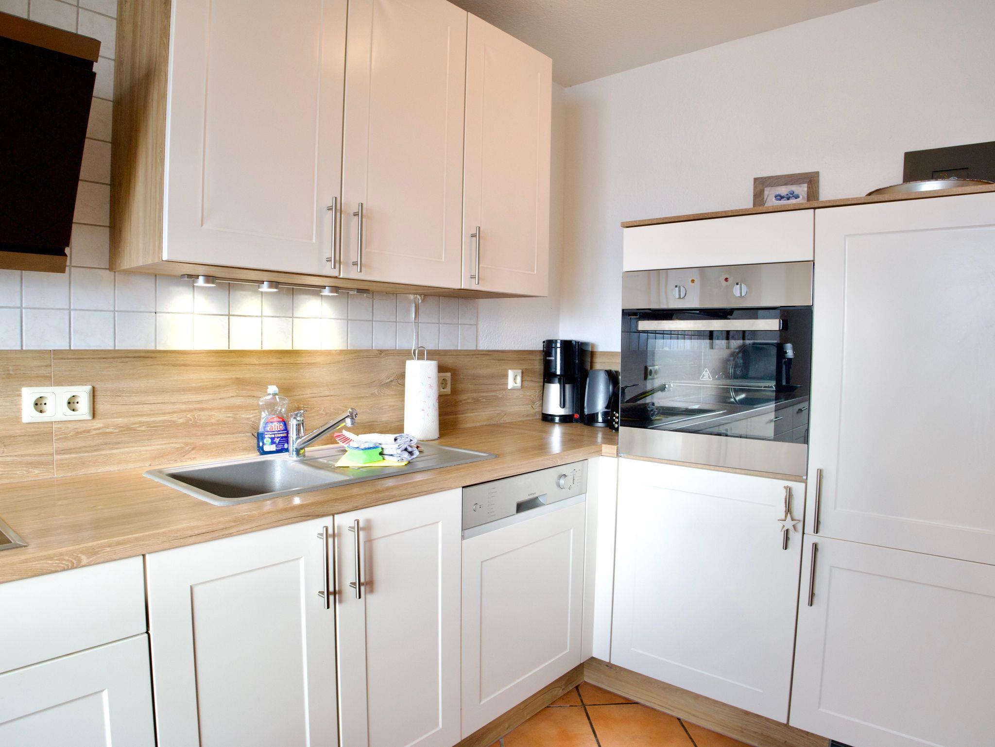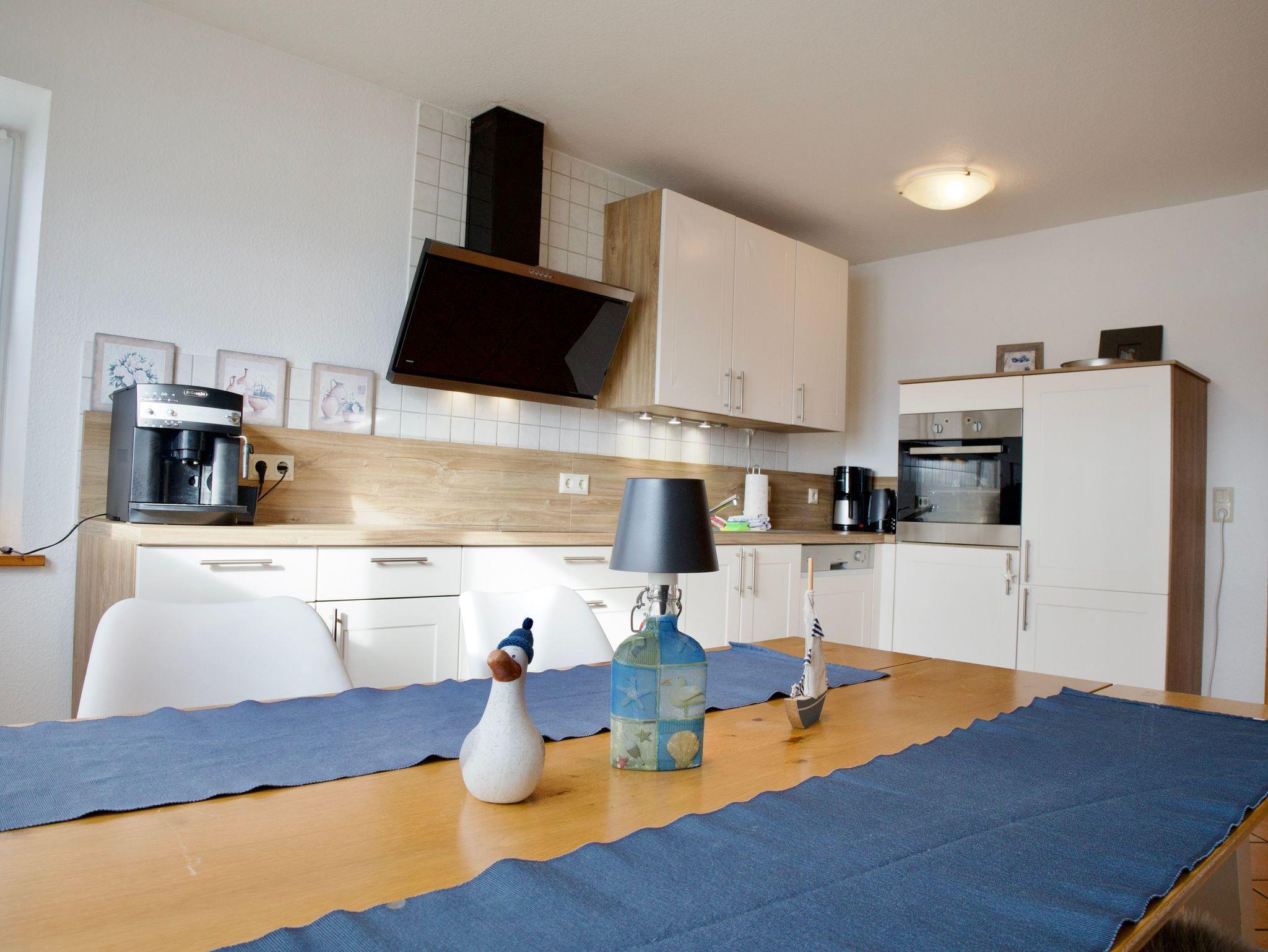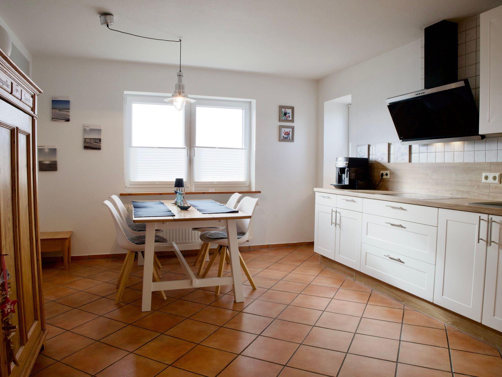 Im Zentrum des Hauses liegt die großzügige Küche, die als Treffpunkt für gemeinsames Kochen, Essen und lange Spieleabende dient. Sie ist modern und funktional ausgestattet und verfügt über eine Spülmaschine, eine Gefriermöglichkeit sowie eine Kaffeemaschine. Warme Holzakzente, viel Tageslicht und der freie Blick in die Landschaft verleihen diesem Raum eine besonders angenehme Atmosphäre.