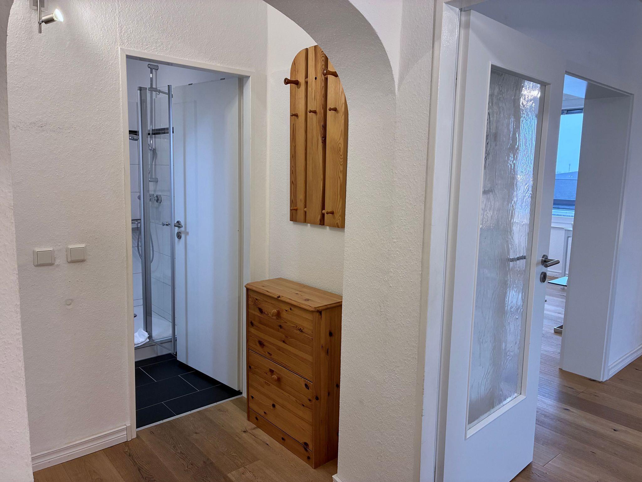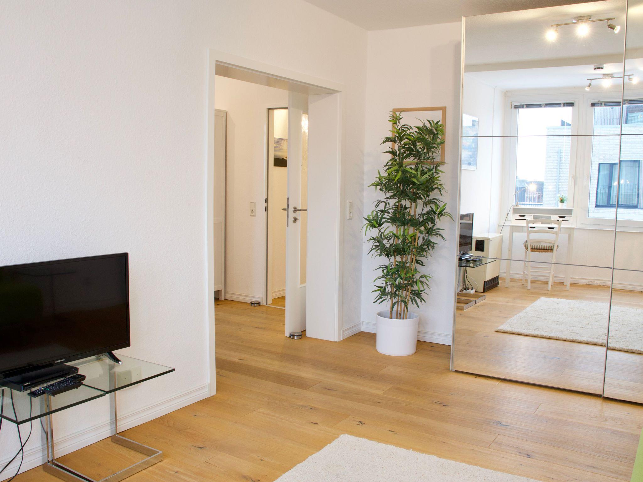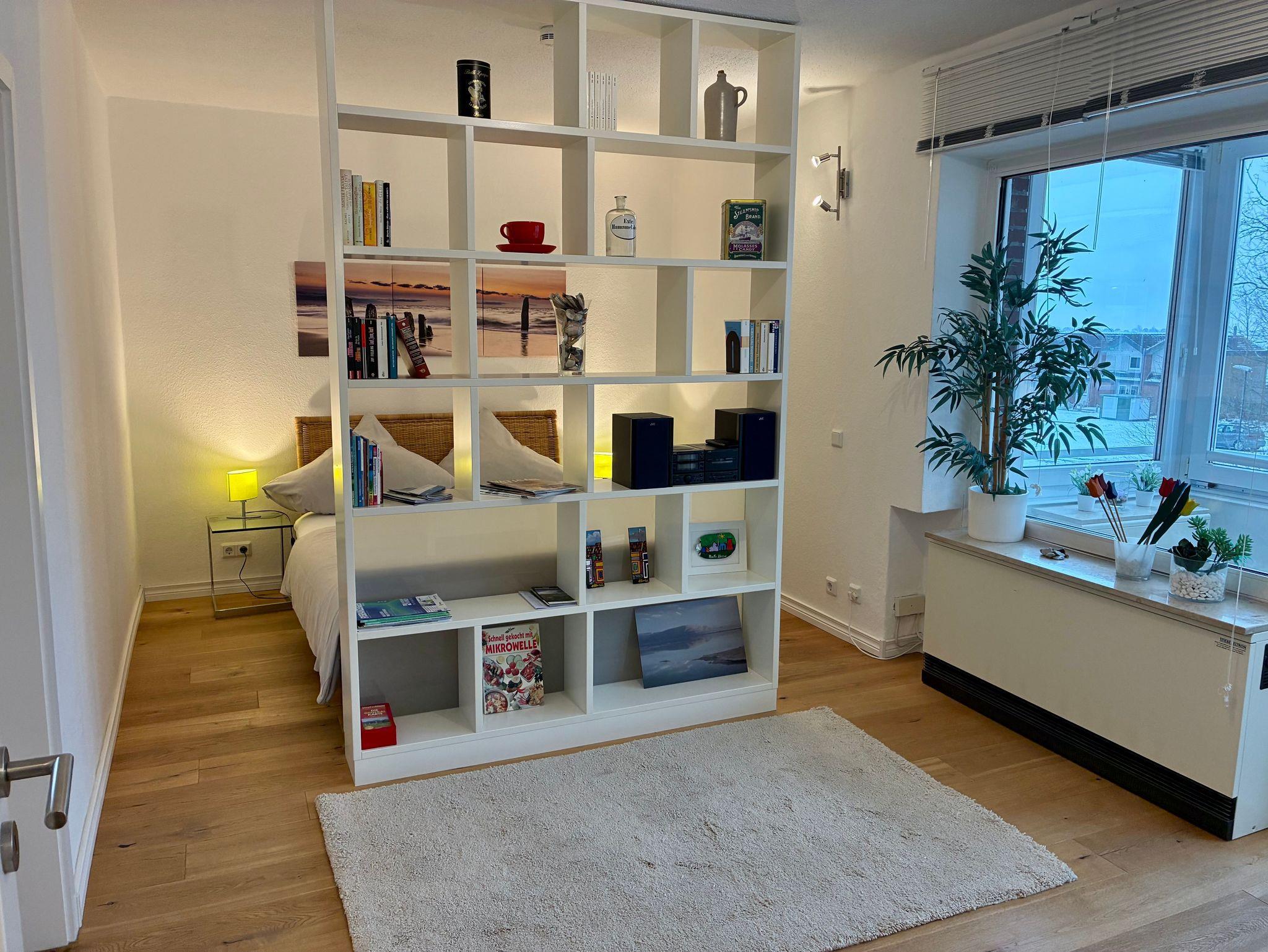 Das Studio 21 bietet einen hellen, klar gestalteten Rückzugsort für zwei Personen. Die Wohnung wirkt offen und ruhig, große Fenster lassen viel Tageslicht herein und schaffen eine freundliche, entspannte Atmosphäre.