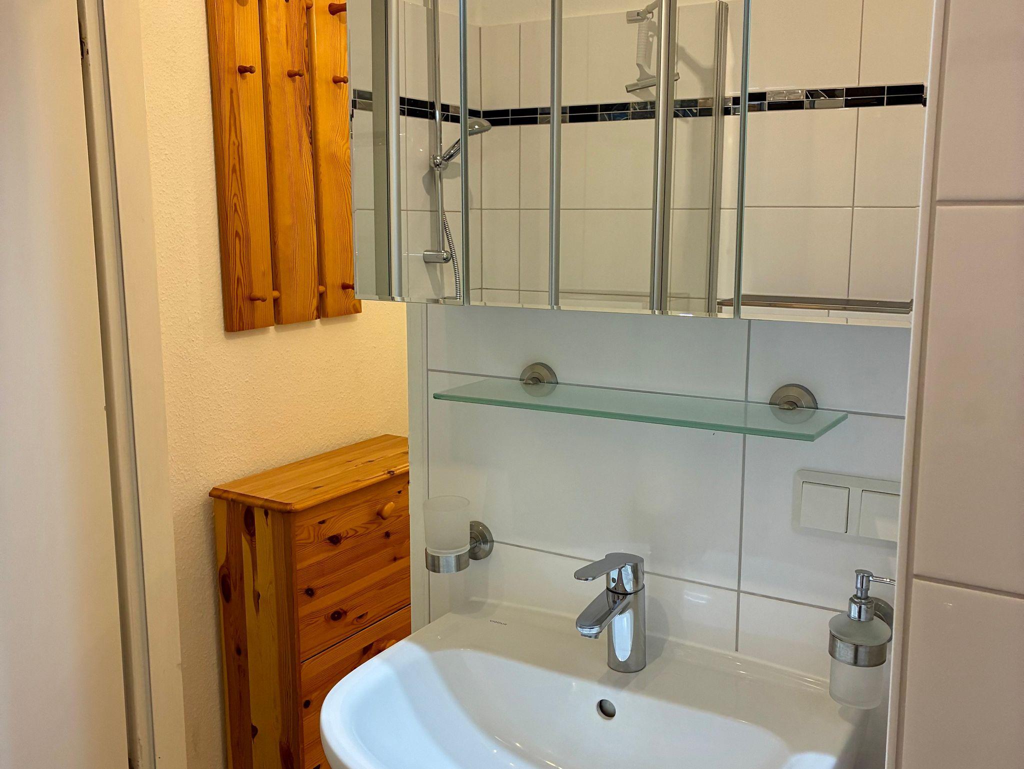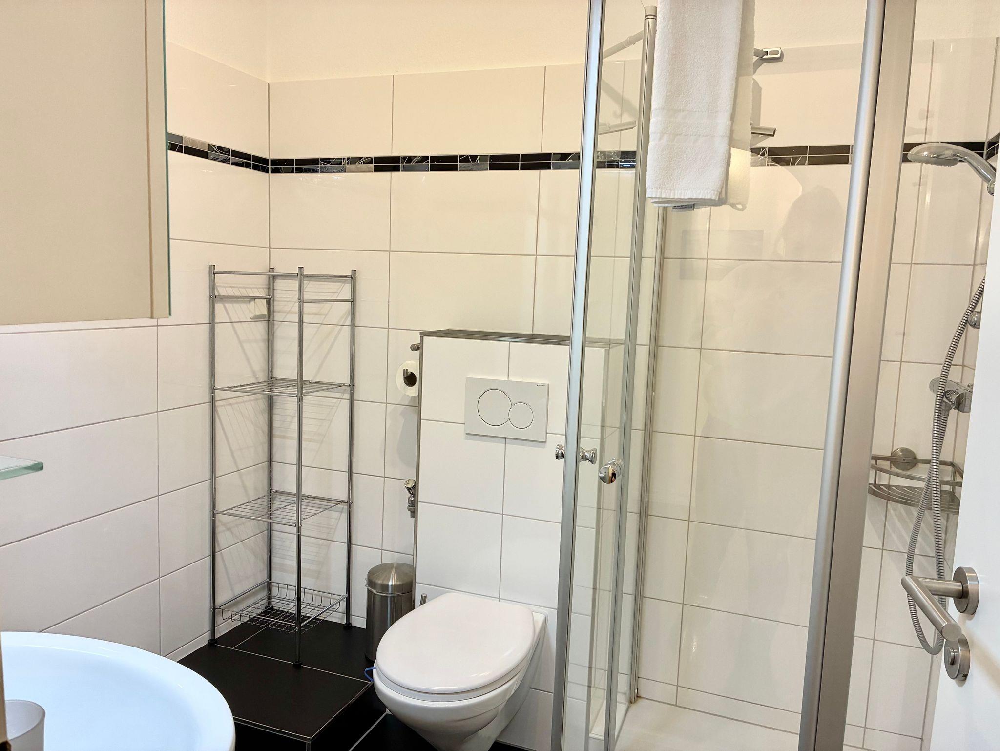 Das geschmackvoll gestaltete Duschbad fügt sich stimmig in das Gesamtbild der Wohnung ein.