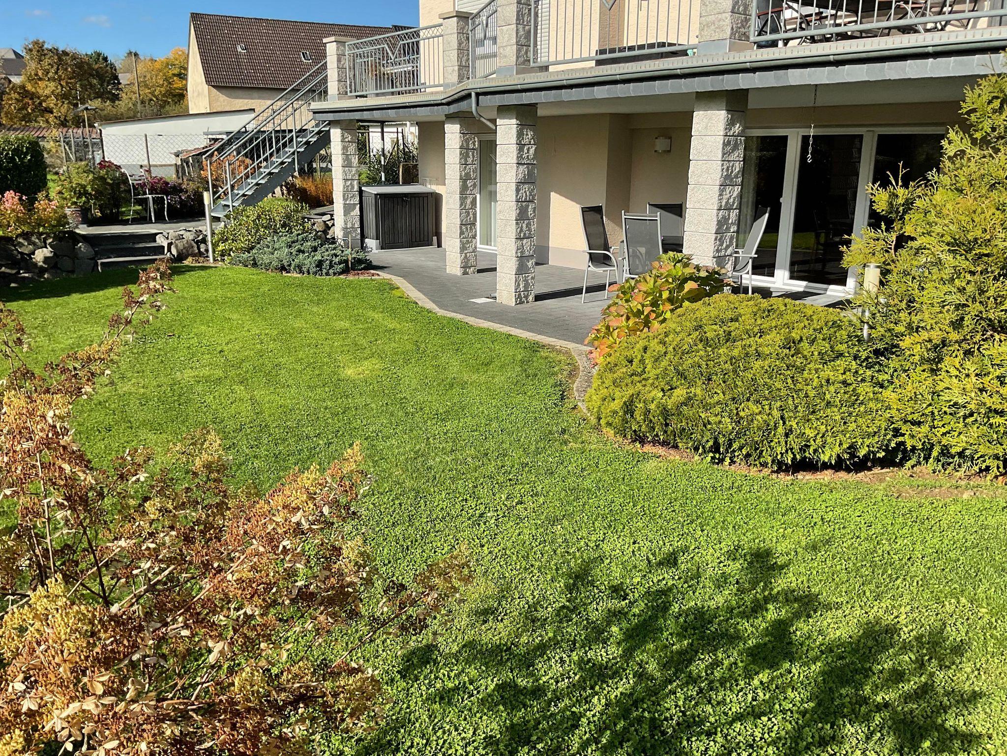 Ein herzliches Willkommen in unserer Fewo Kleines Kylltal! Genießen Sie auf unserer großen Terrasse den traumhaften Blick ins kleine Kylltal und die Natur. Direkt am Kosmosradweg, Maare-Mosel-Radweg und in der Nähe des Eifelsteigs und Lieserpfads. Gemütliche Wohnung mit Küche und Wohnbereich, Flachbild-TV, Bad mit ebenerdiger Dusche. Separates Schlafzimmer mit Doppelbett. Zugang zur Terrasse über Wohn- und Schlafzimmer. PKW-Stellplatz vor der Wohnung. Einkaufsmöglichkeit mit Bäckerei in 3 km Entfernung. Abschließbare Abstellmöglichkeit für Fahrräder. Besuchen Sie die Dauner Maare, das Vulkanmuseum, den Hirsch- und Saupark, die Kasselburg und vieles mehr in der Umgebung.