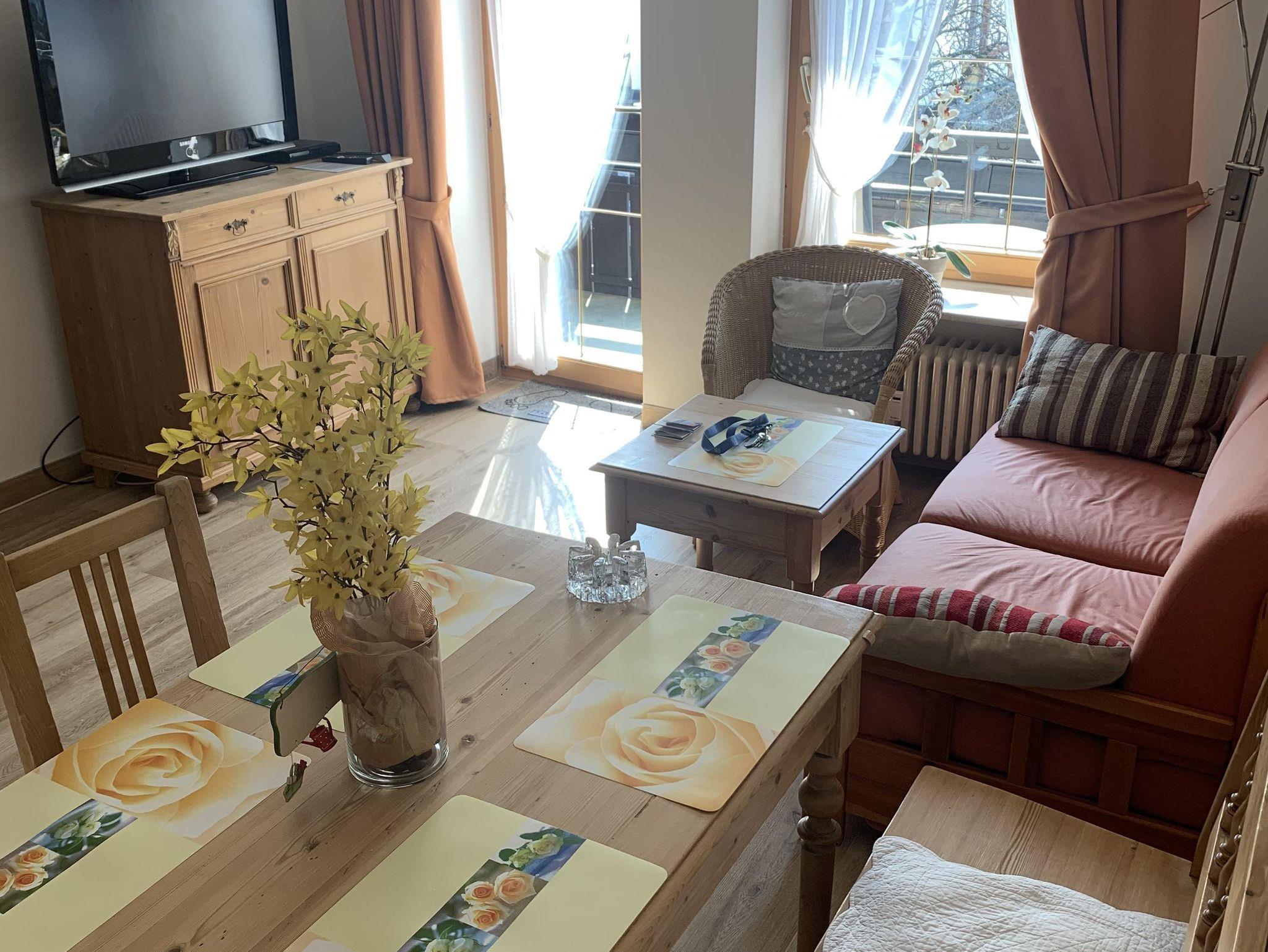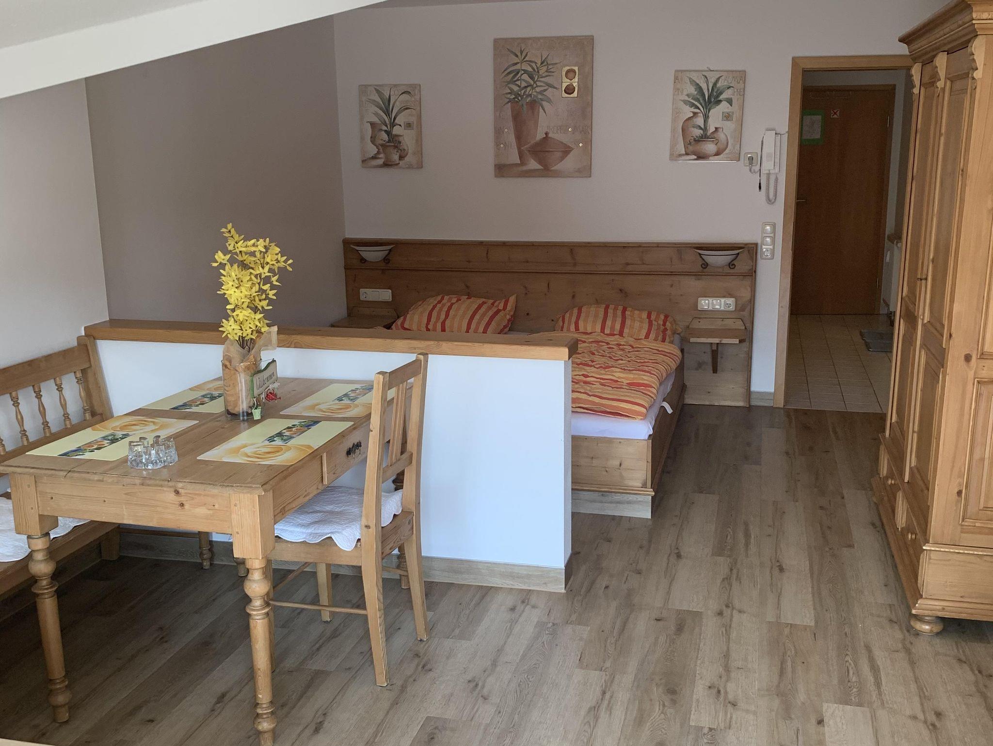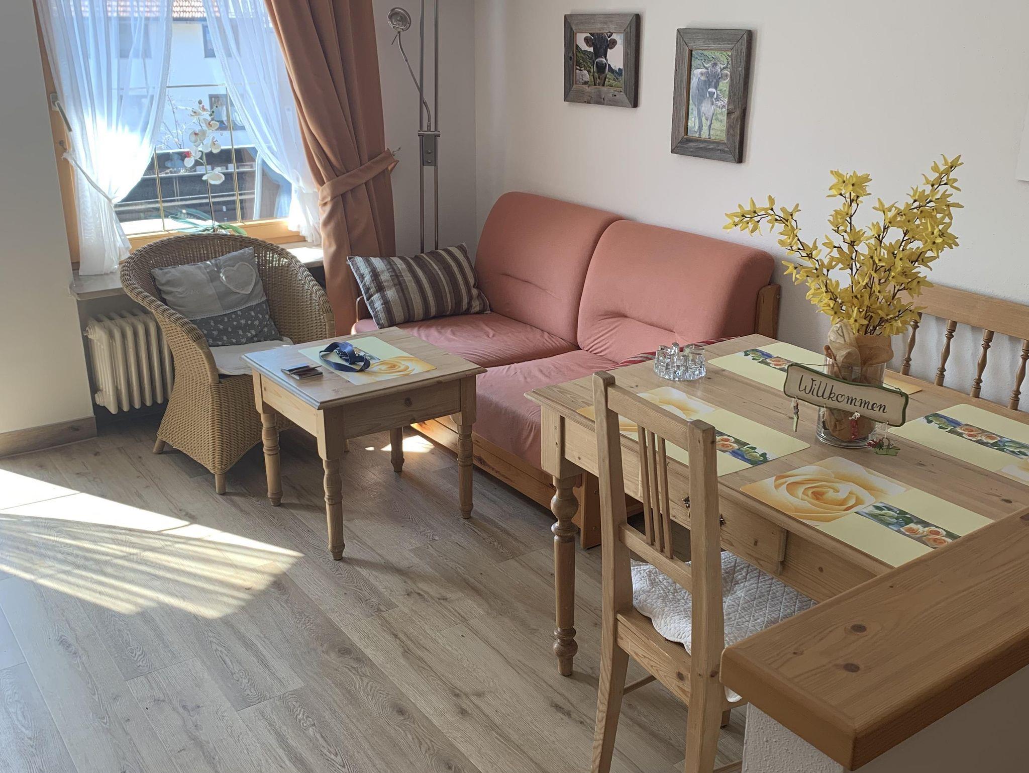 Gemütliche und großzügige Ein-Zimmerferienwohnung für bis zu vier Personen im Allgäuer Landhausstil, zentral in Steibis gelegen. Schöner Südwest-Balkon mit herrlichem Blick.
